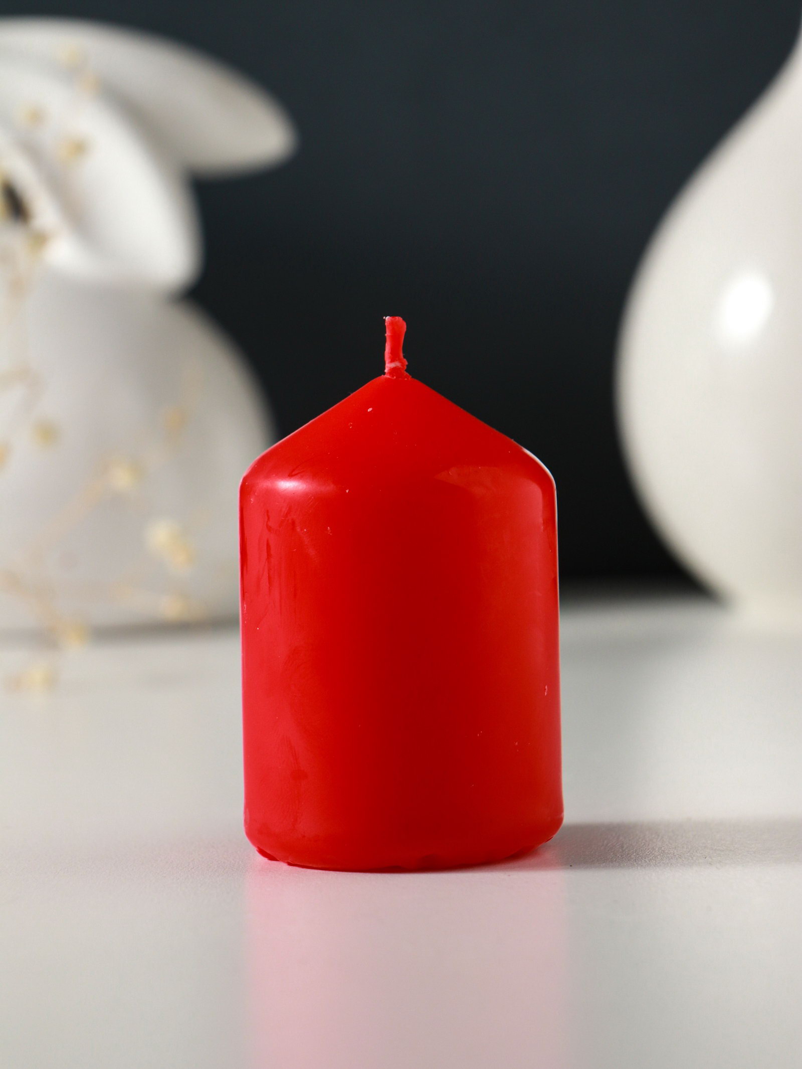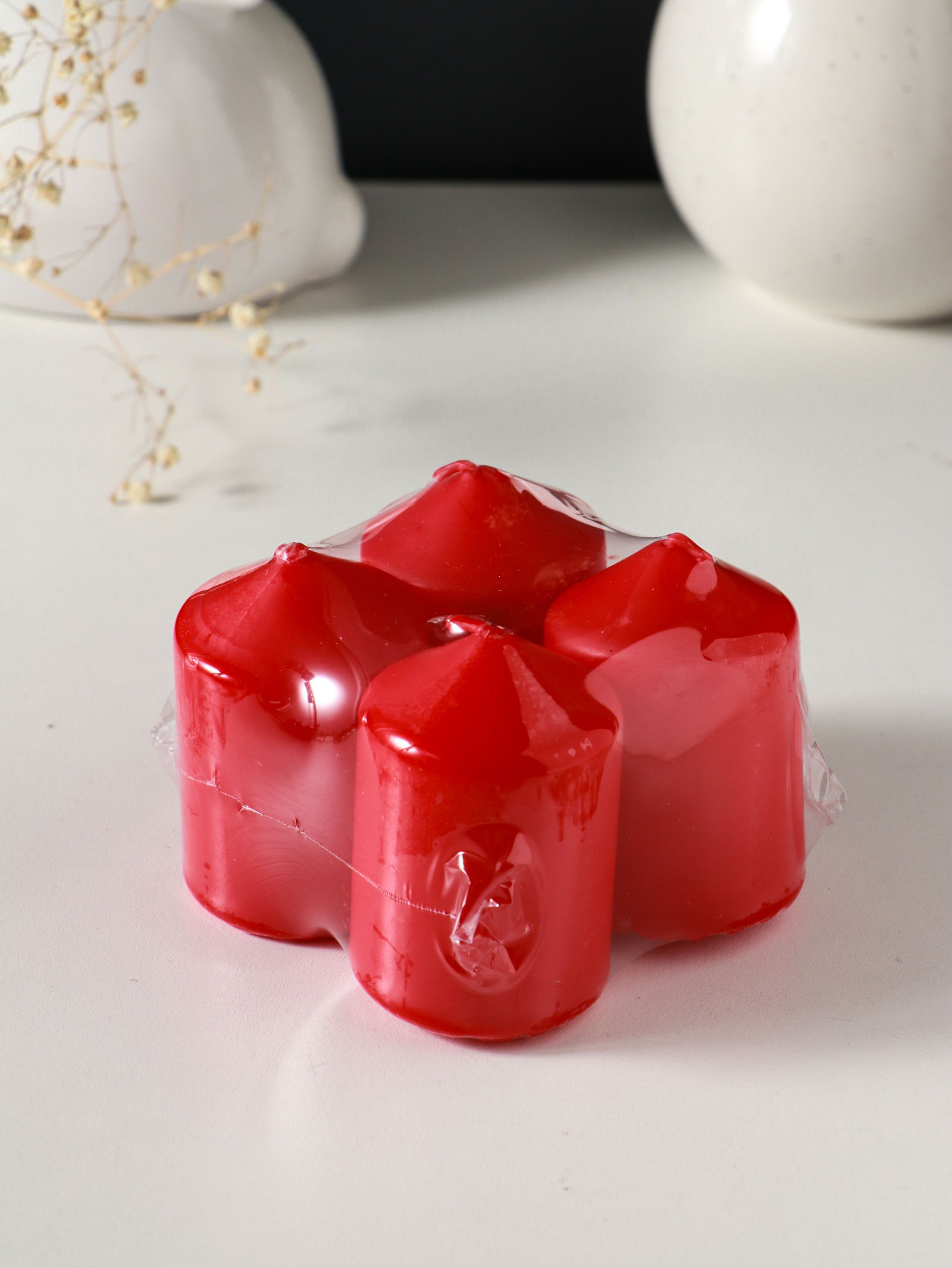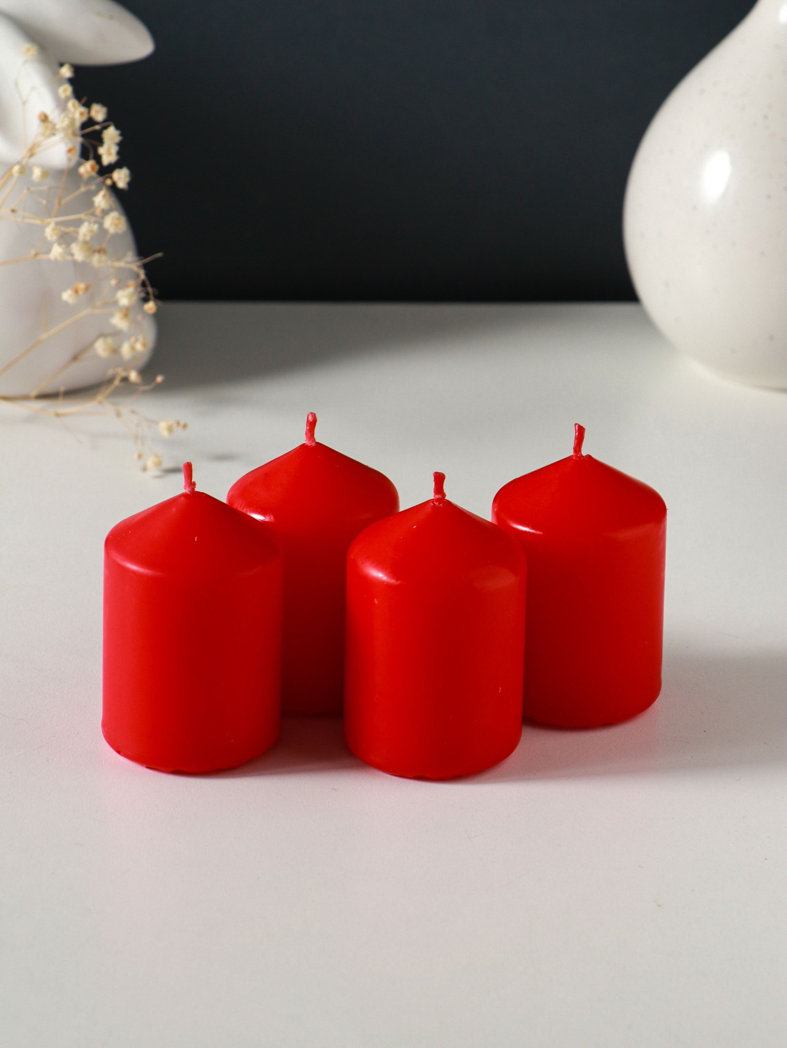 Набор: свеча-цилиндр 4x6 см, 70 г, 4 шт., красный, Дарим Красиво, Россия
