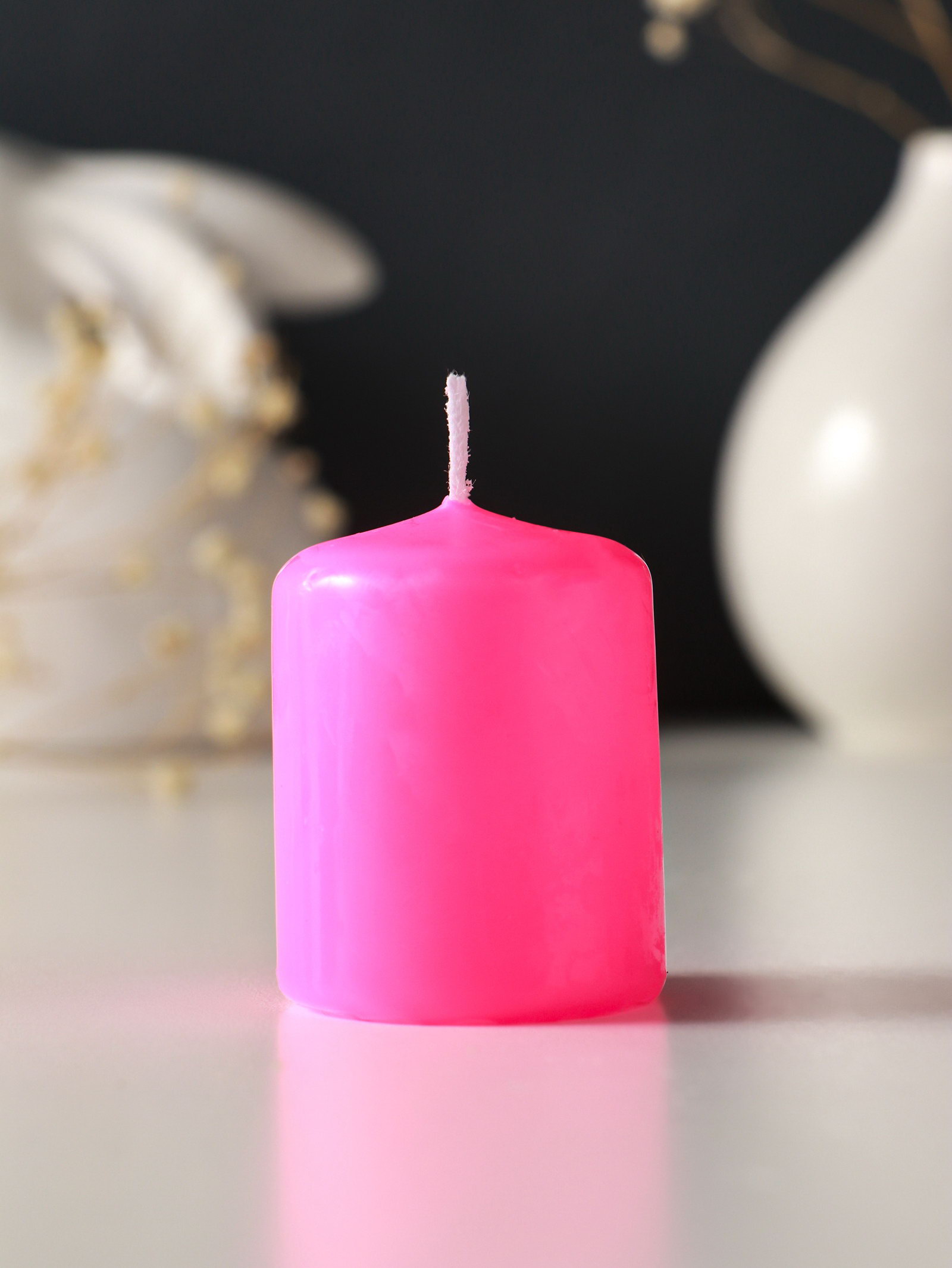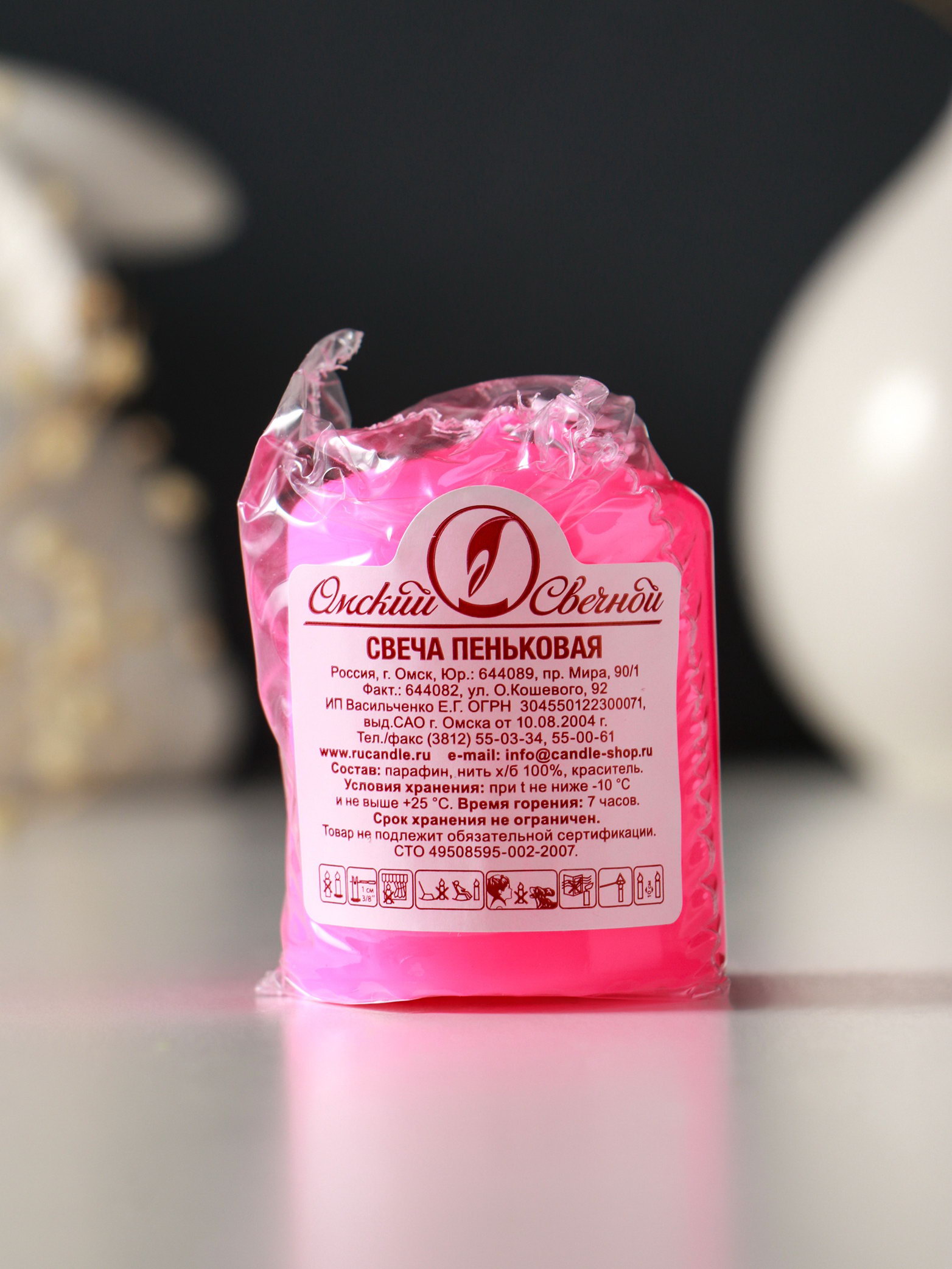 Свеча пеньковая 4x5 см, 7 ч, 47 г, розовый, Омский свечной завод, Россия
