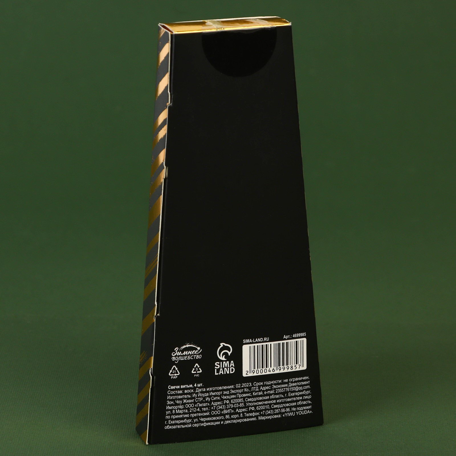 Набор свечей витых "С Новым годом", 4 шт., золотые, 14.5x1.5 см, 1.5х1.5х14.5 см., Сима-ленд, Китай