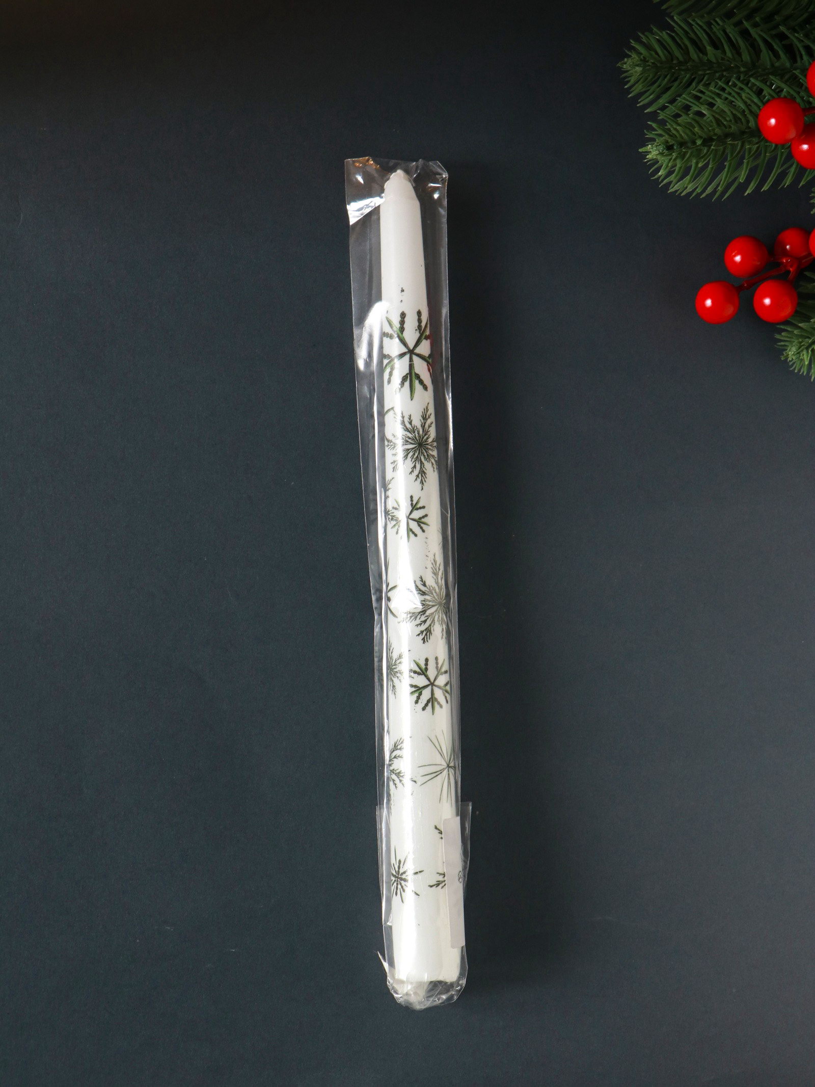 Свеча античная "Снежинки новогодние", 255x22 мм, с декором, Россия