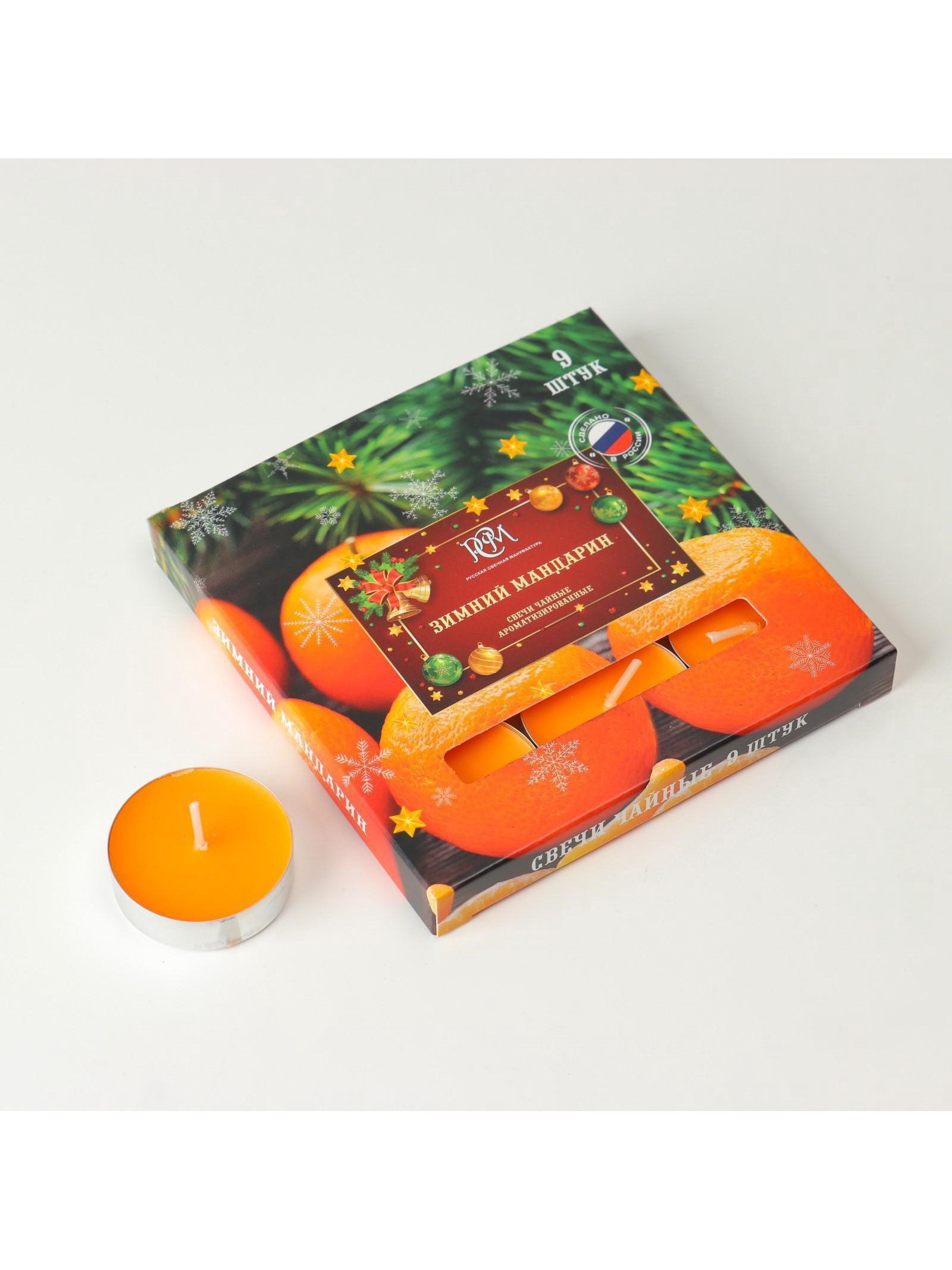 Набор свечей ароматических чайных "Зимний мандарин", 10 г, 9 шт., Русская свечная мануфактура, Россия