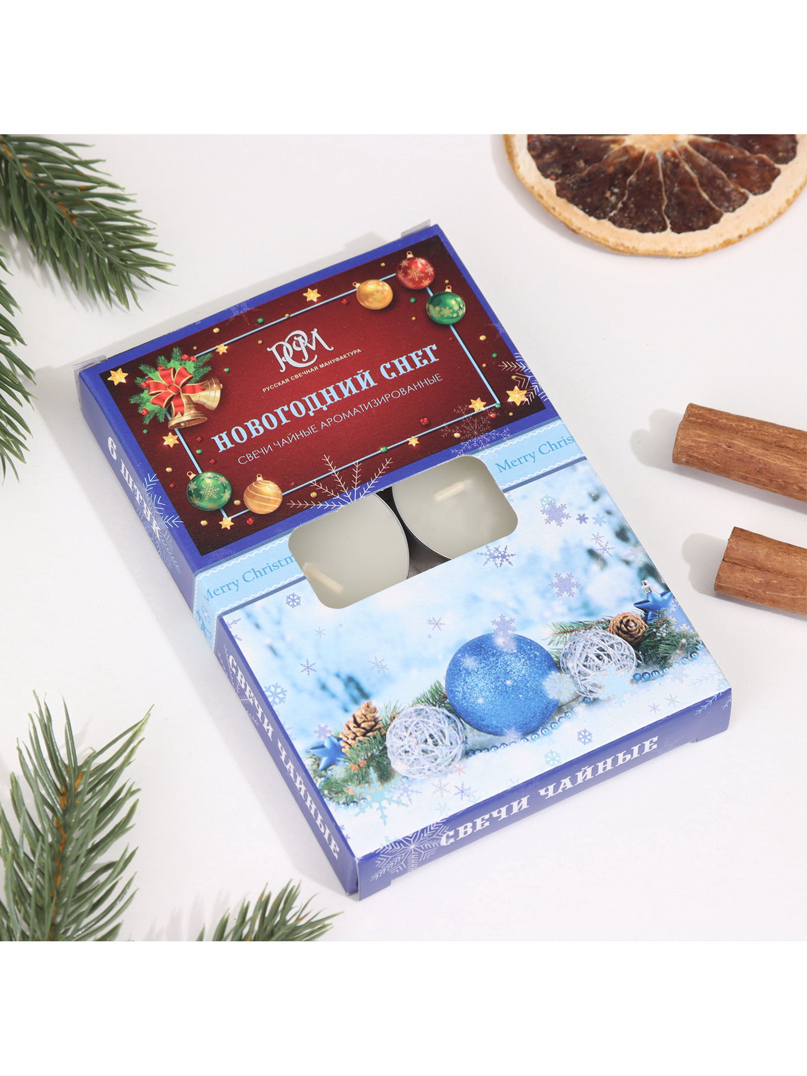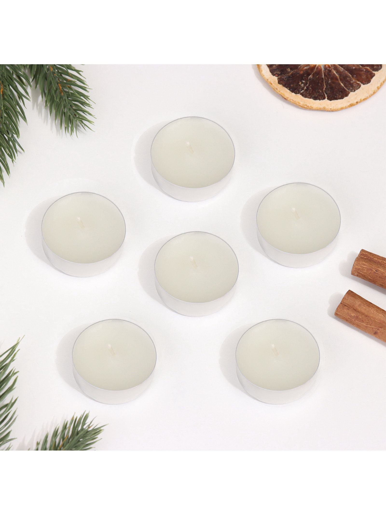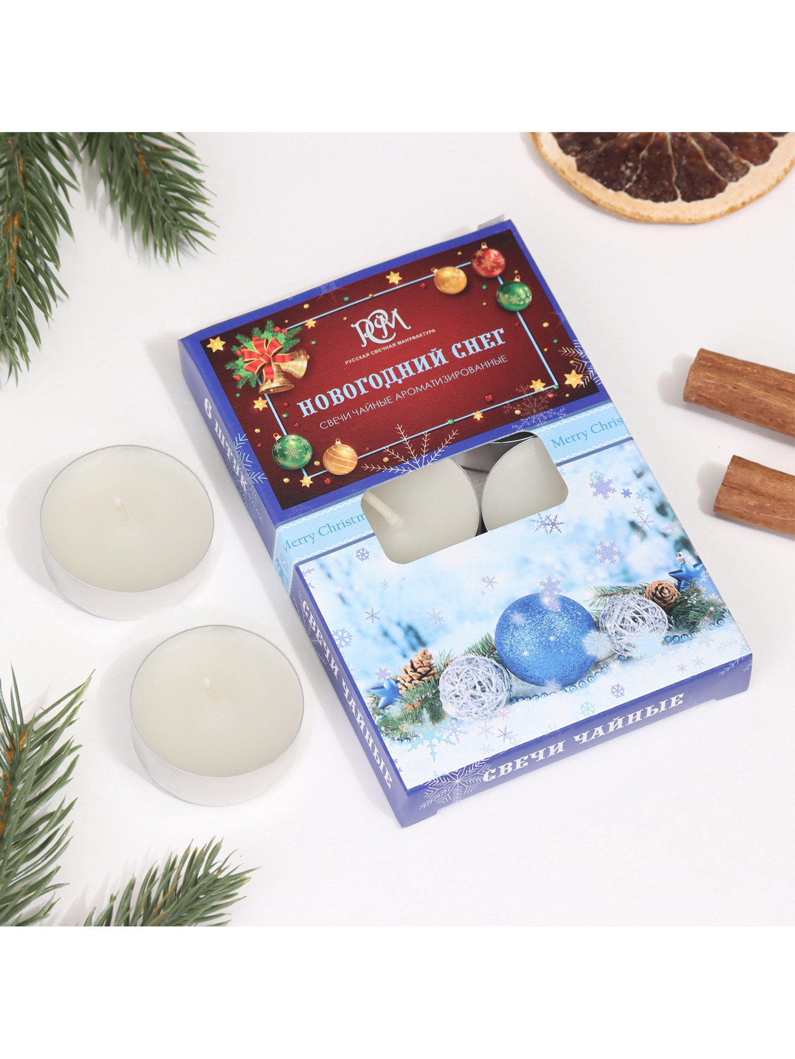 Набор ароматических свечей чайных "Новогодний снег", 6 шт., Русская свечная мануфактура, Россия