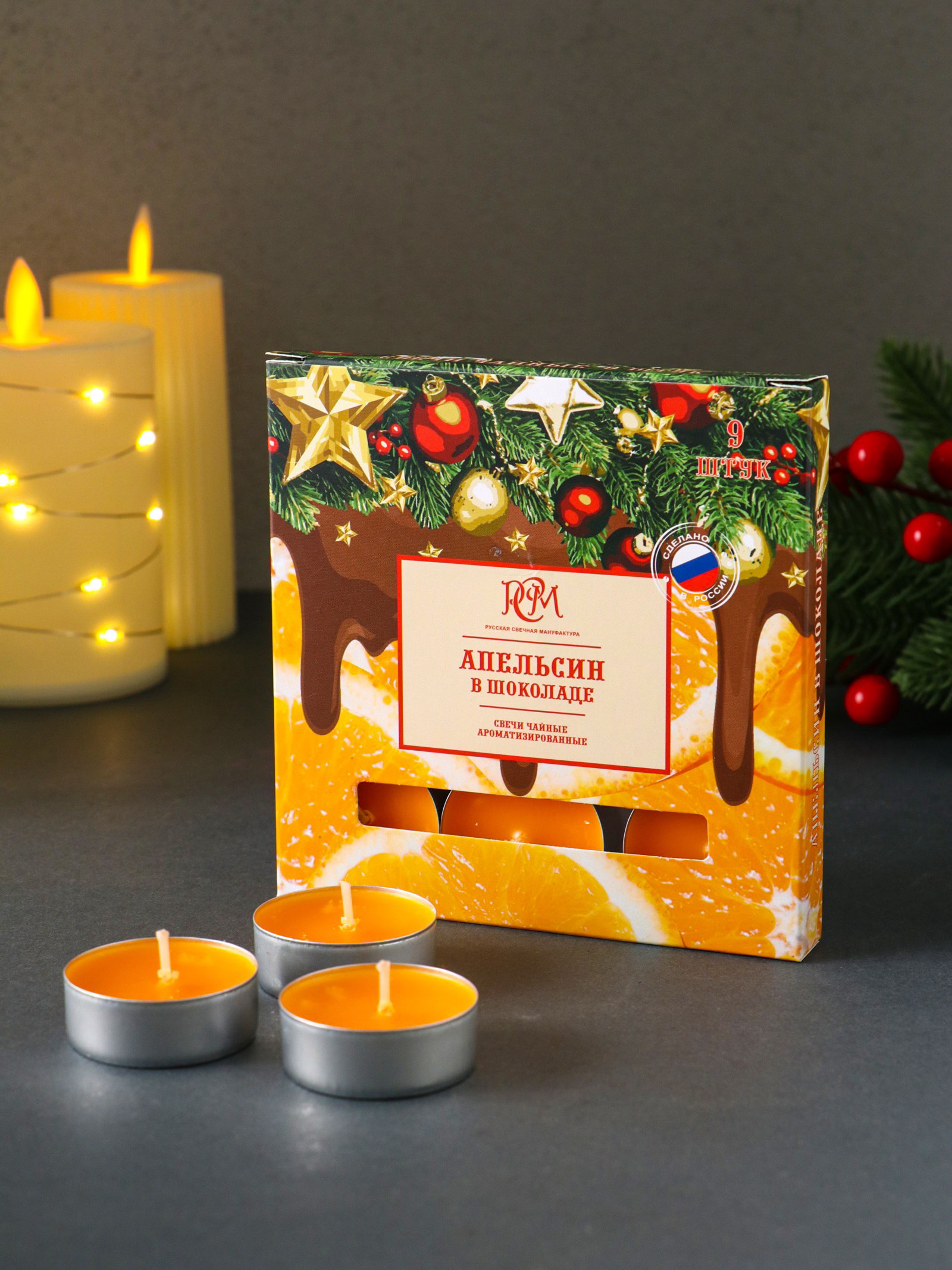 Набор свечей ароматических чайных "Апельсин в шоколаде", 9 шт., Русская свечная мануфактура, Россия