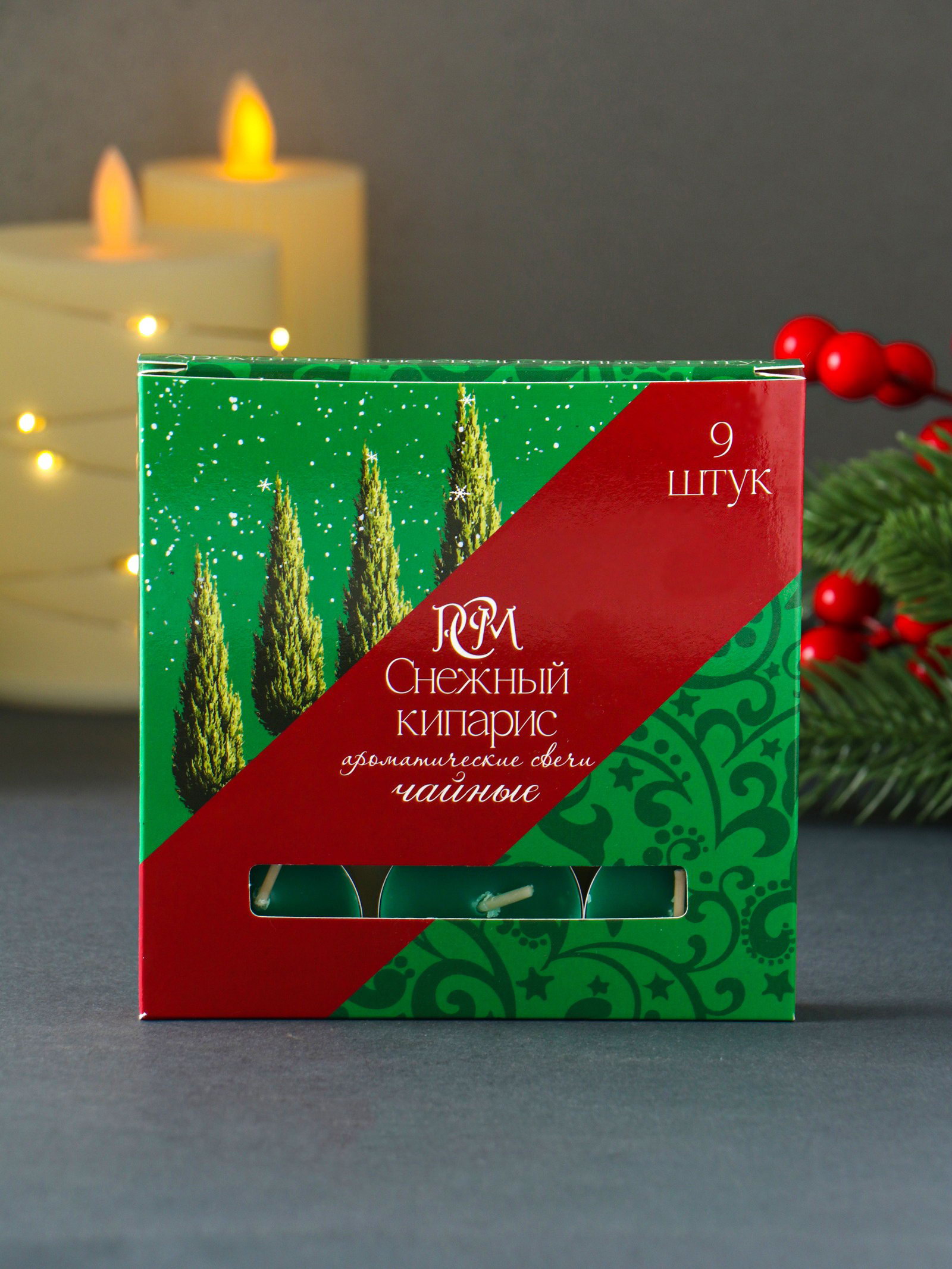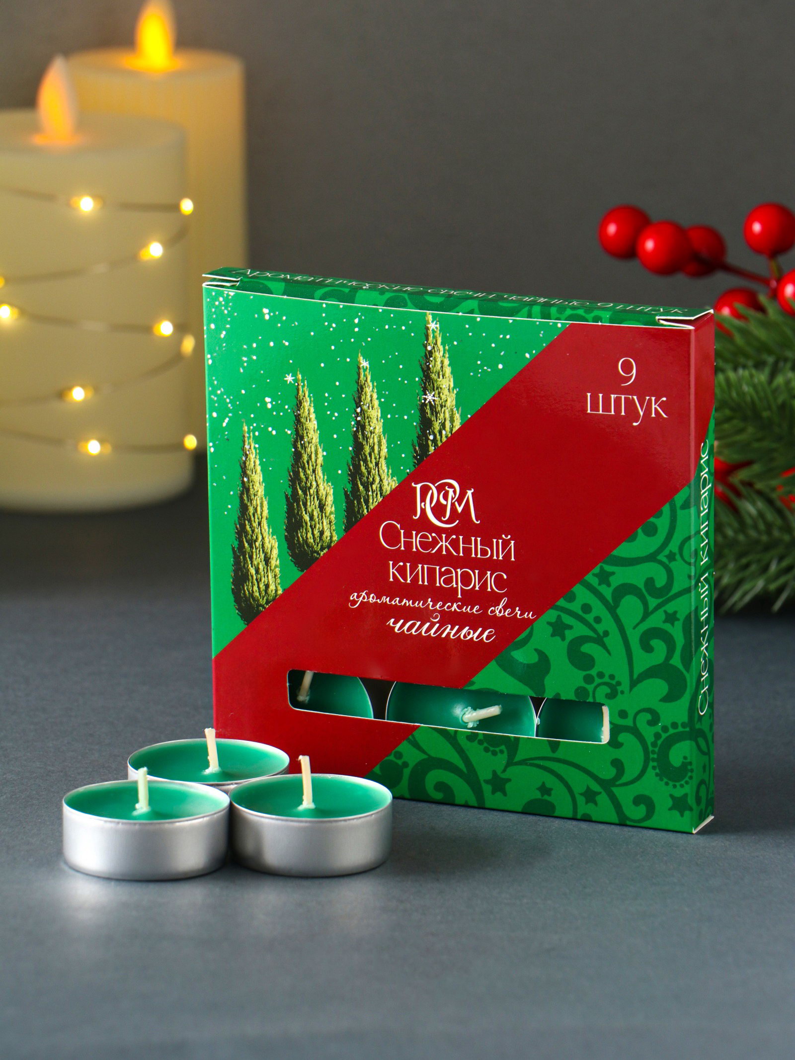 Набор свечей ароматических чайных "Снежный кипарис", 9 шт., Русская свечная мануфактура, Россия