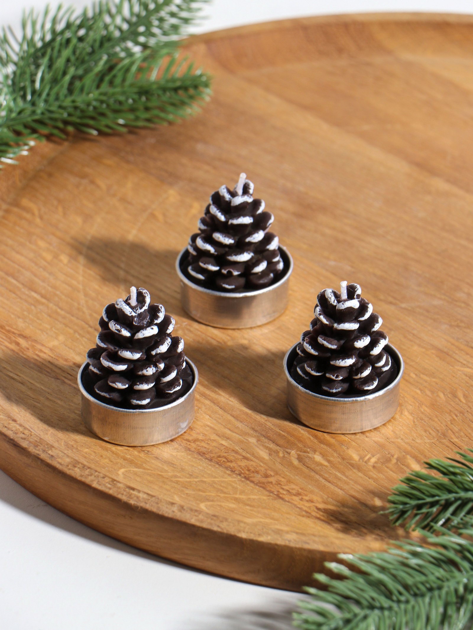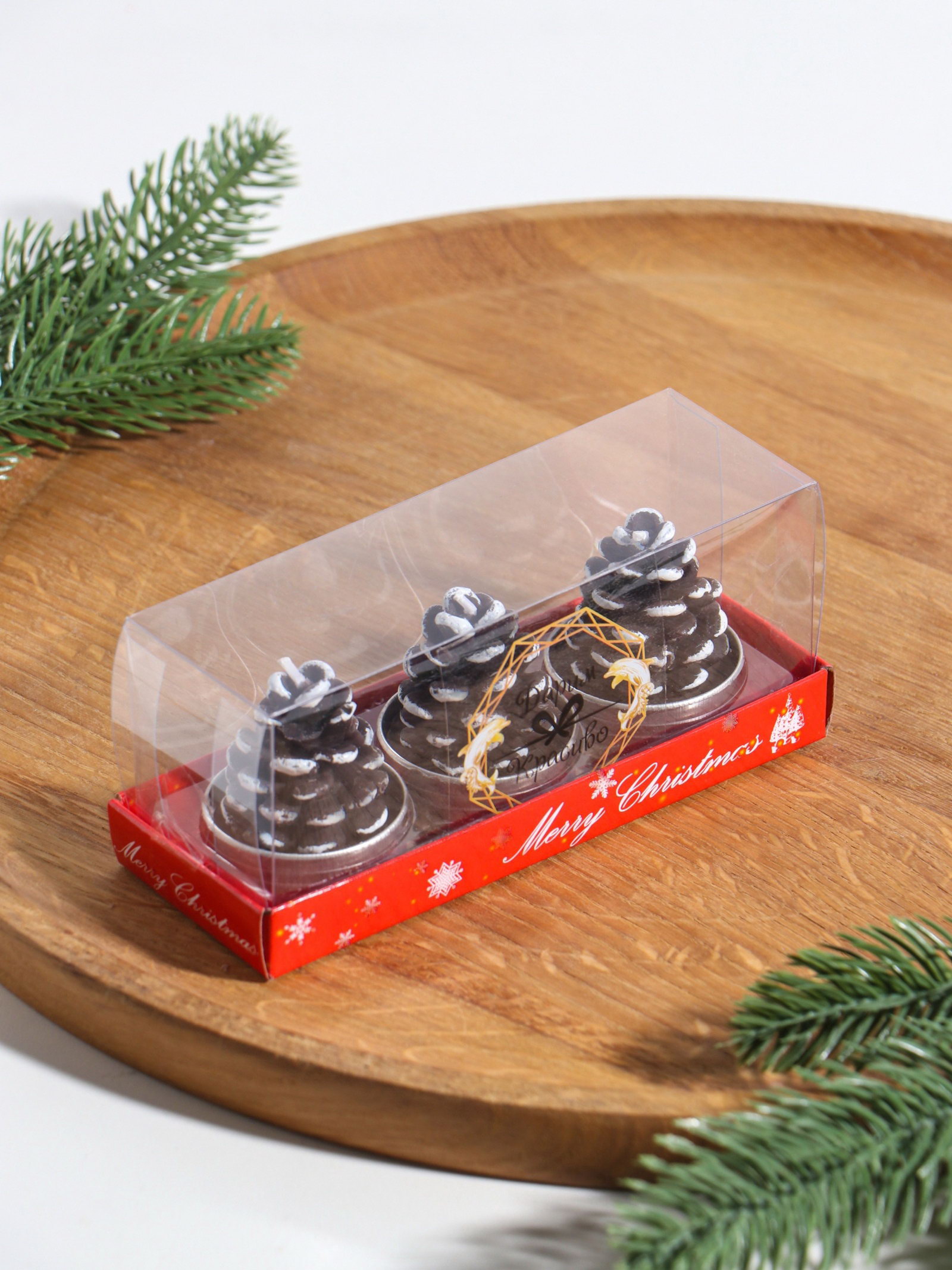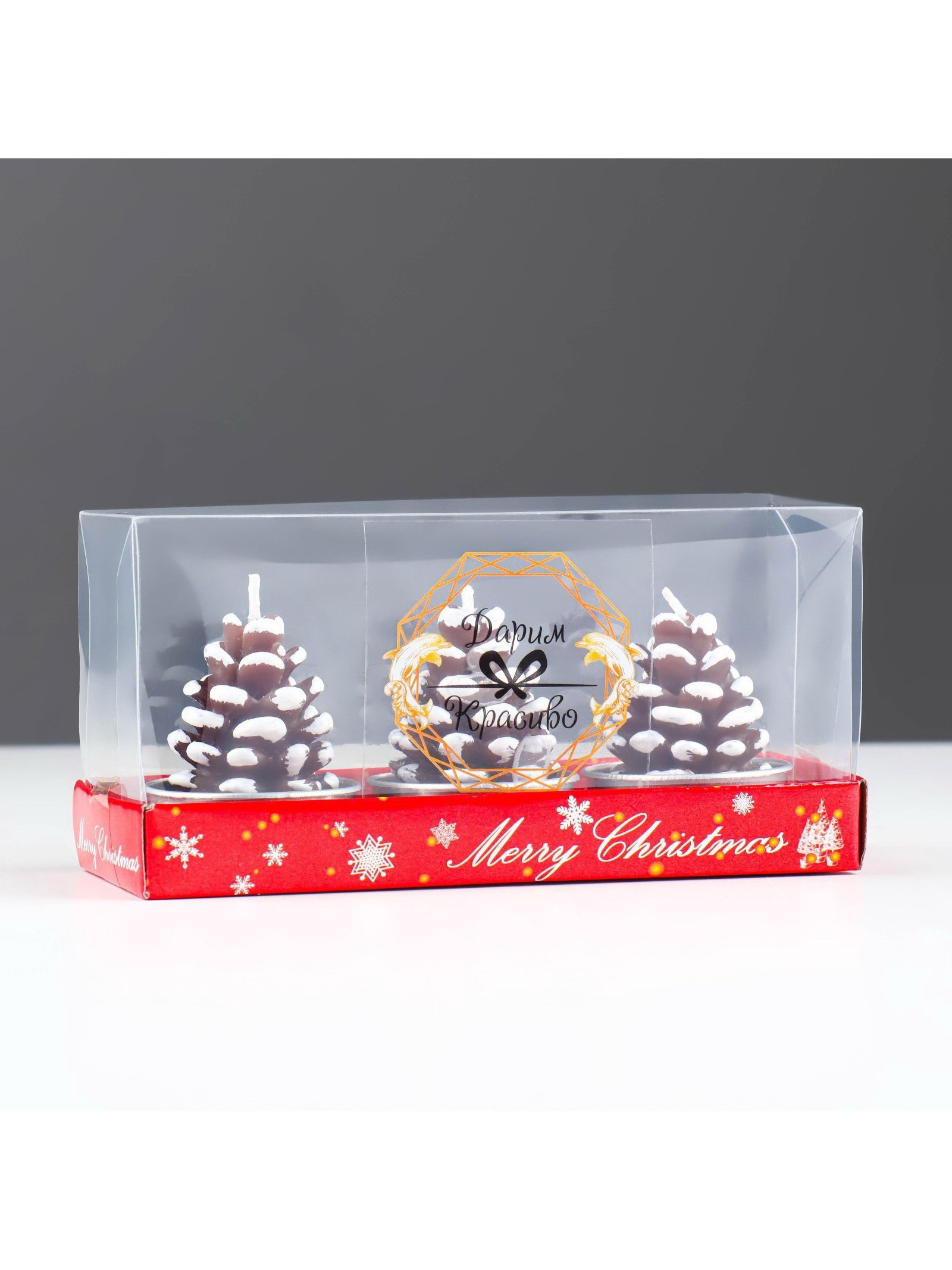 Набор свечей новогодних "Шишка", 3 шт., 4x6 см, 5x14x7 см., Дарим Красиво, Китай