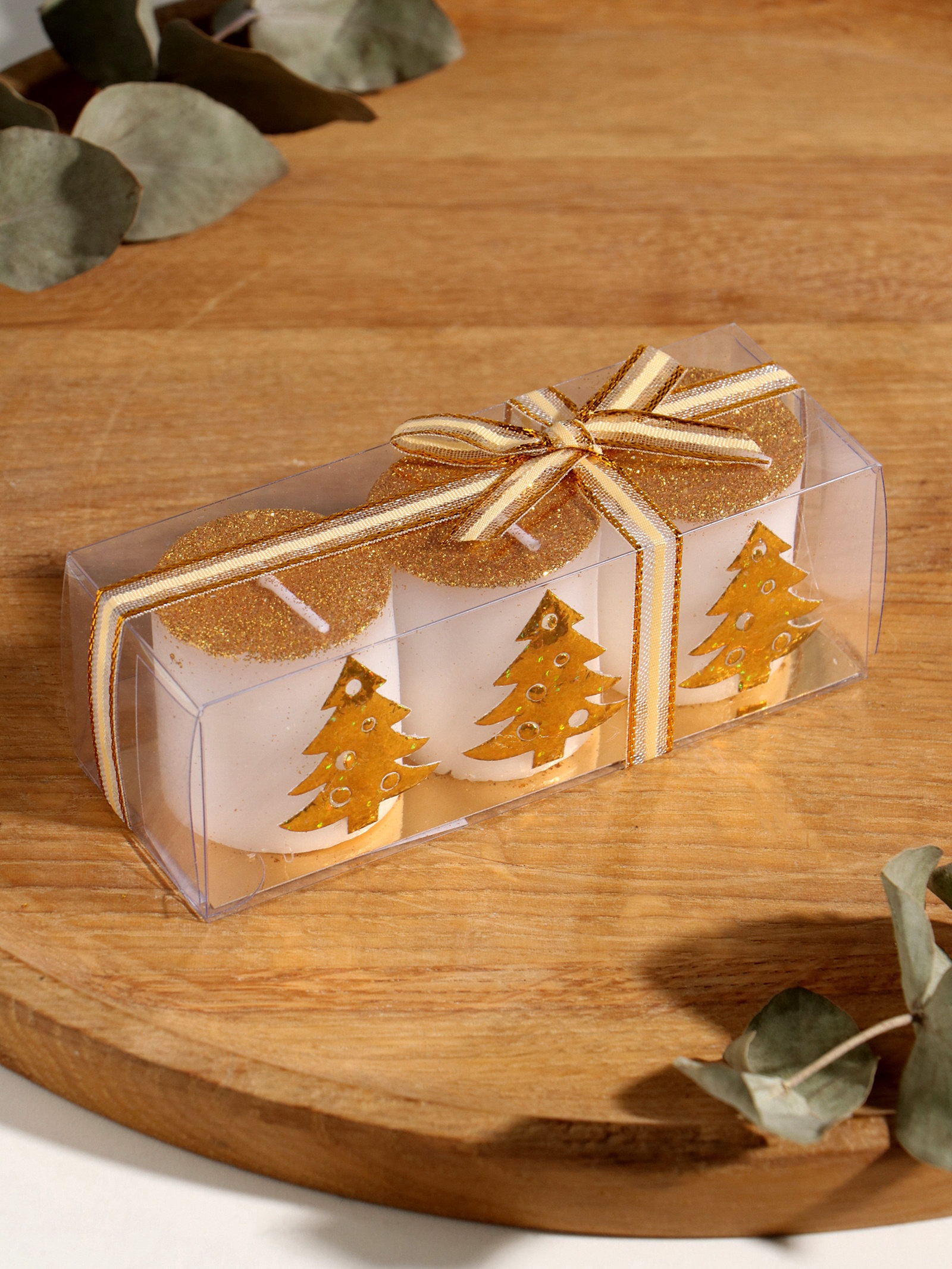 Набор свечей "Столбики. Золотые ёлочки", 3 шт., 13x4.5x4.5 см, 4.5x13x4.5 см., Китай