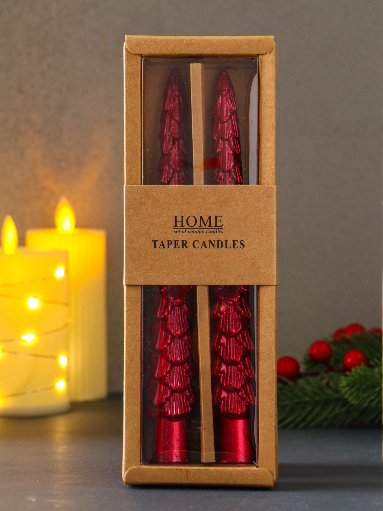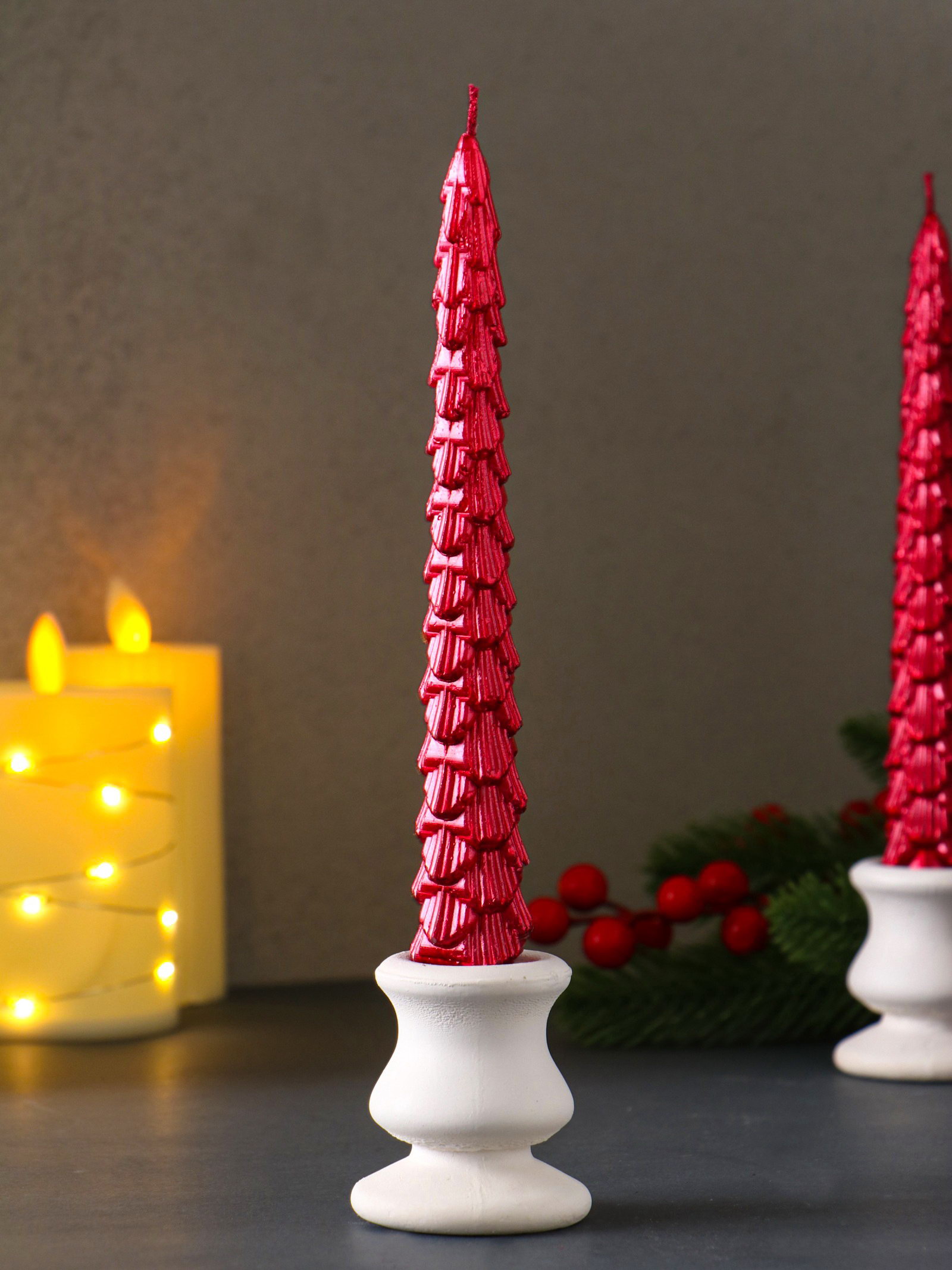 Набор свечей новогодних "Ель", 1.9x1.9x20 см, 2 шт., красный металлик, 1.9x1.9x20 см., Китай