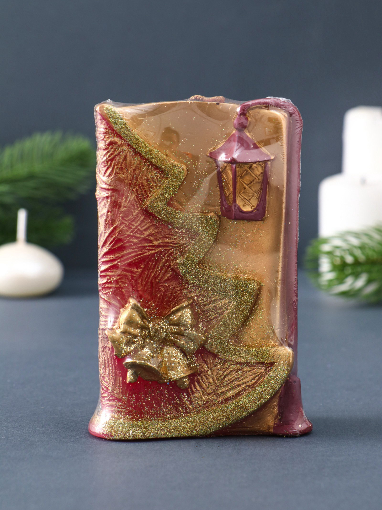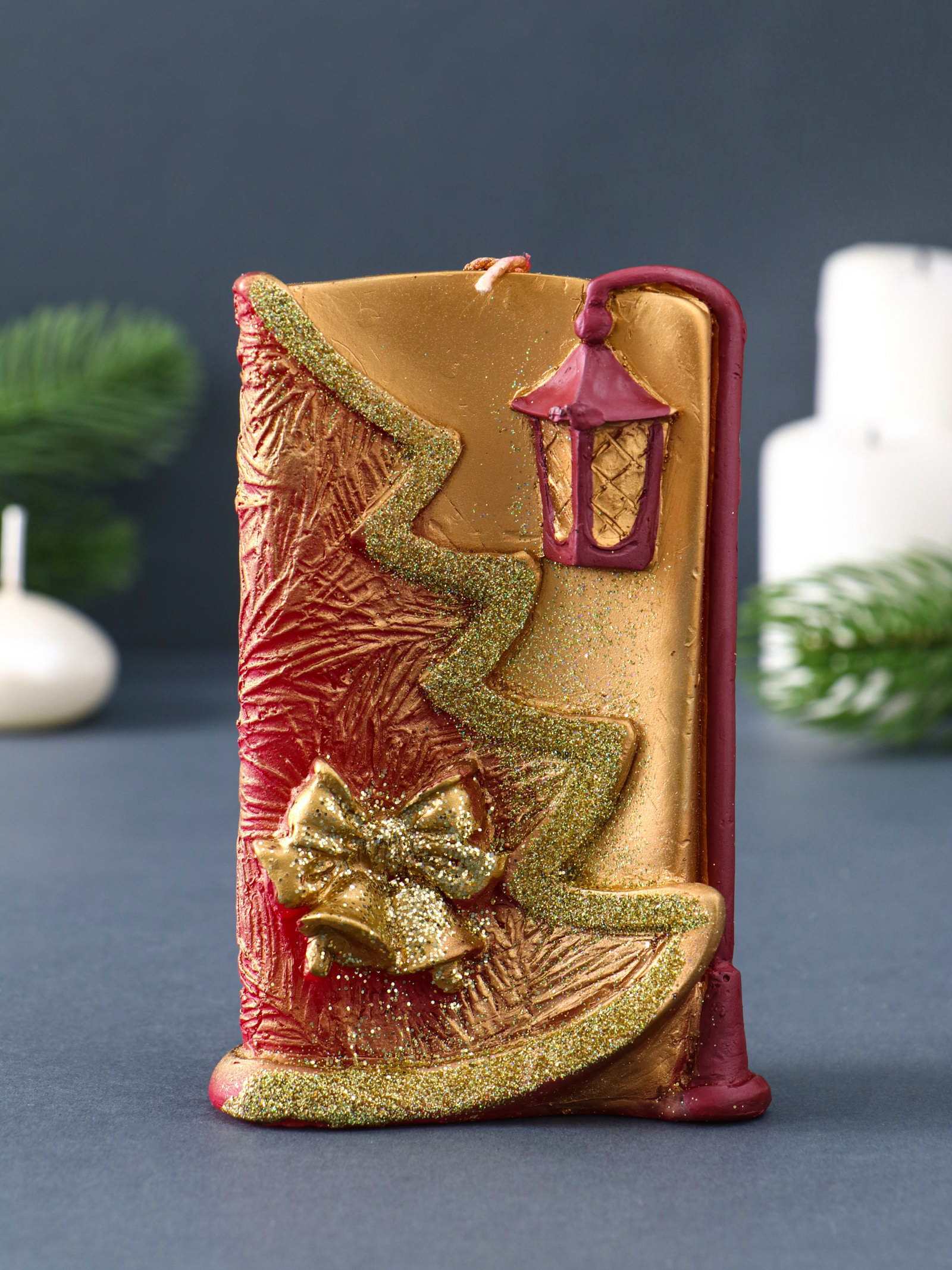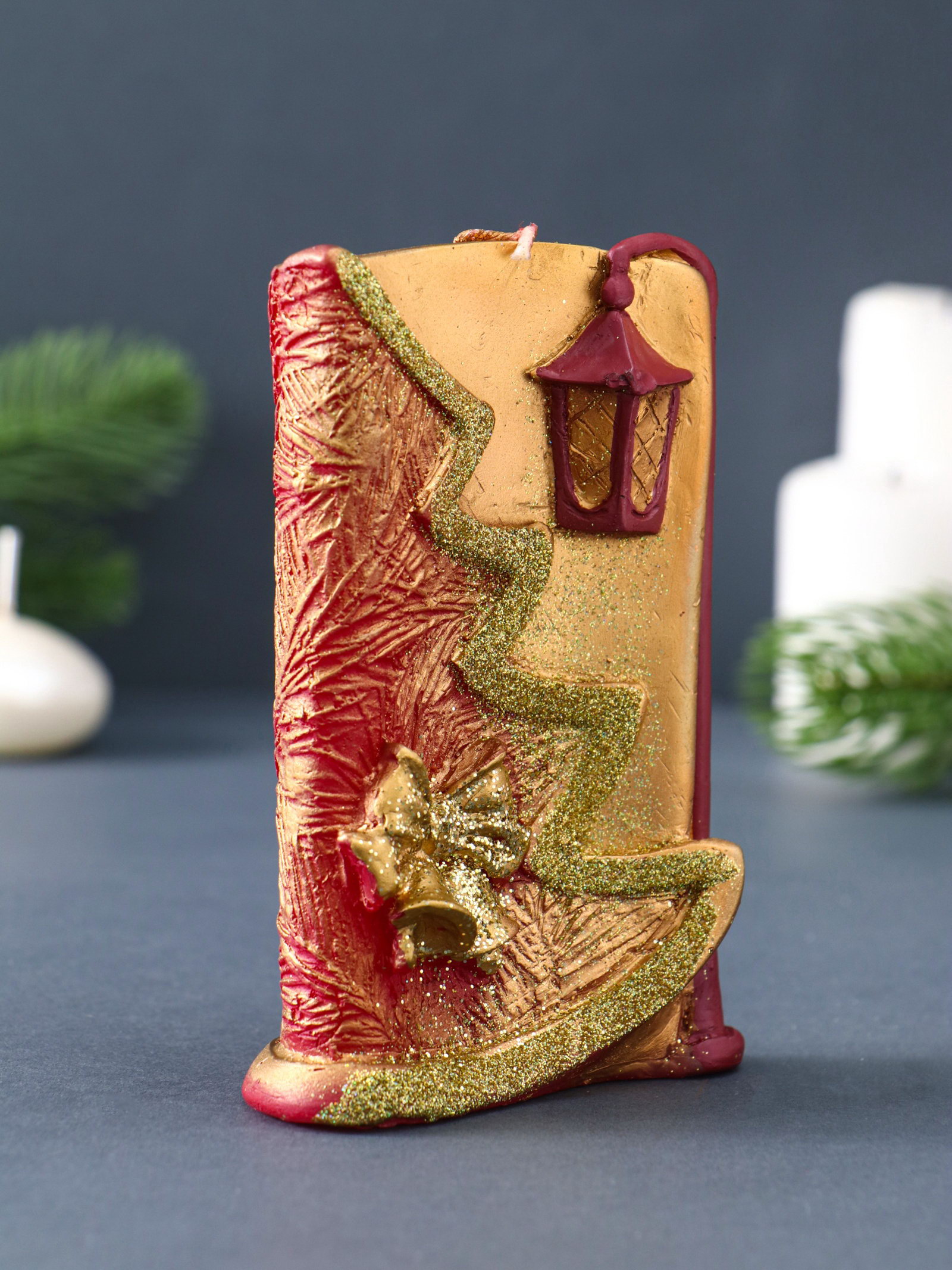 Свеча декоративная "Рождественская" 7.5x4x12 см, золотой, Россия