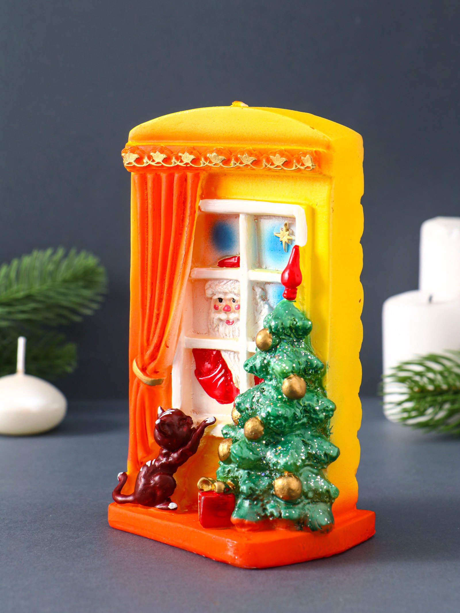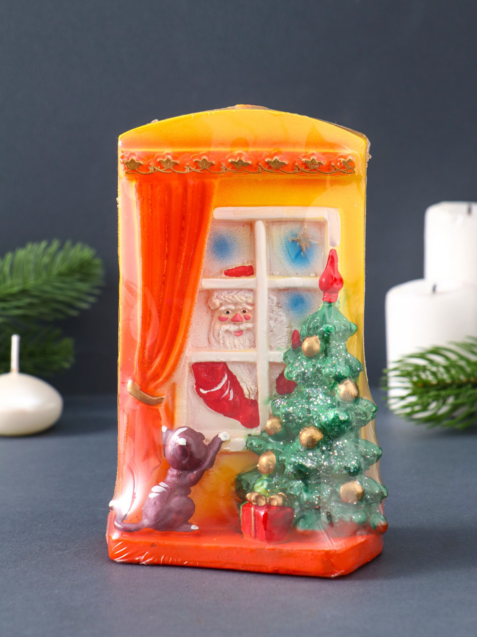 Свеча декоративная "Дед Мороз стучится в дом" 6.5x9x14.5 см, Россия