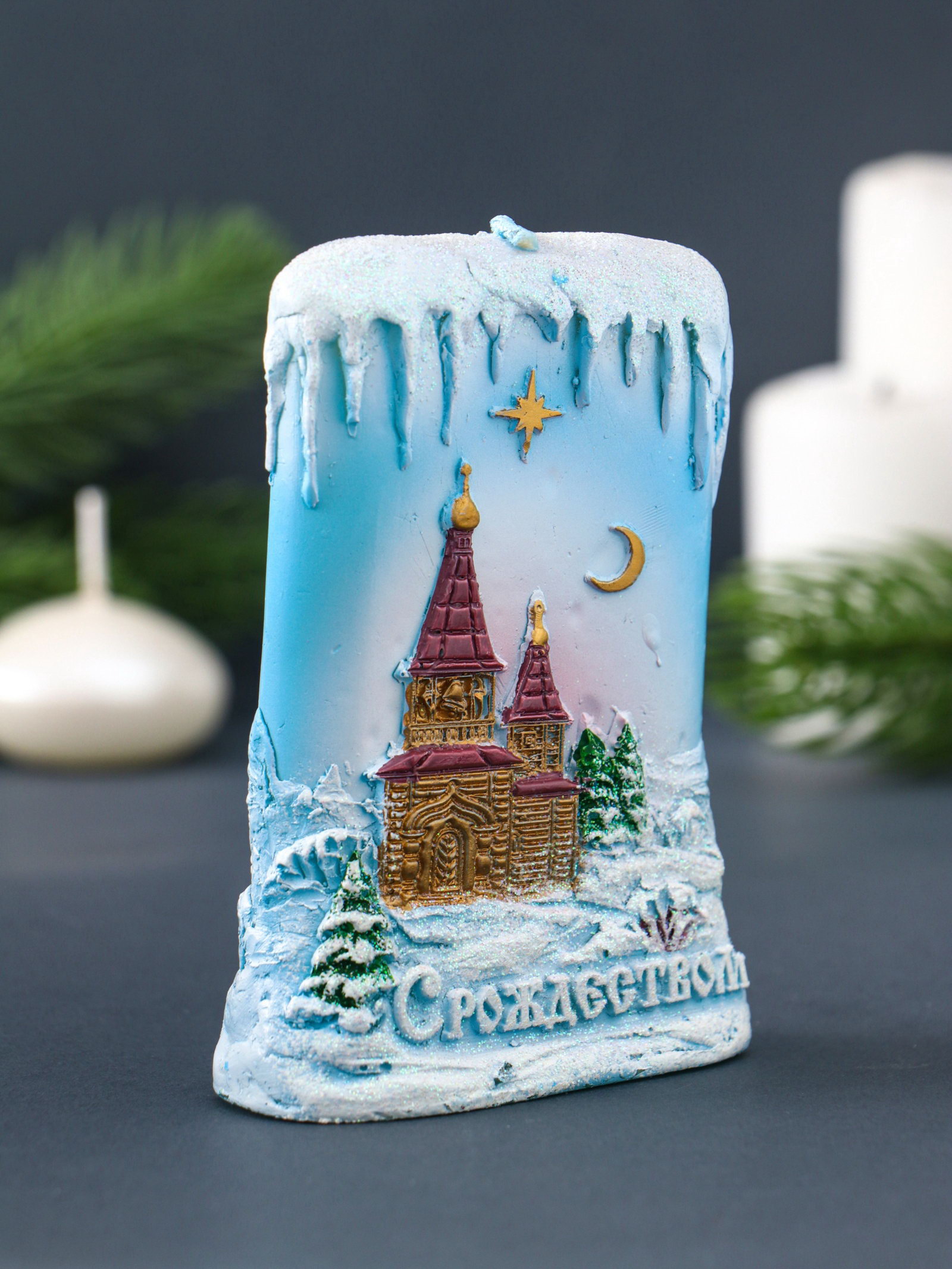 Свеча декоративная "Ледяная" 7x3.5x10.5 см, голубой, Россия