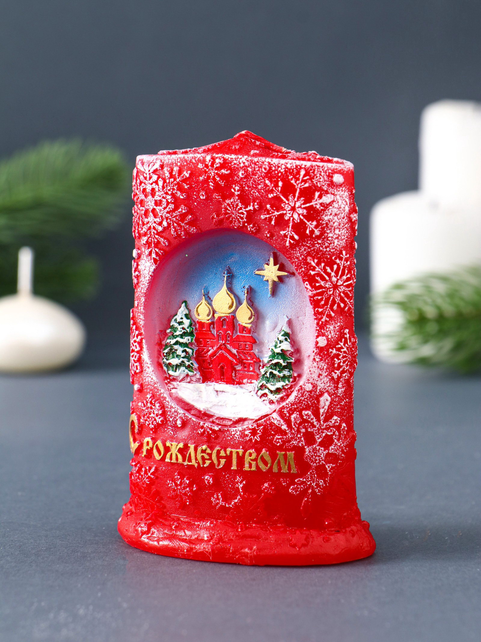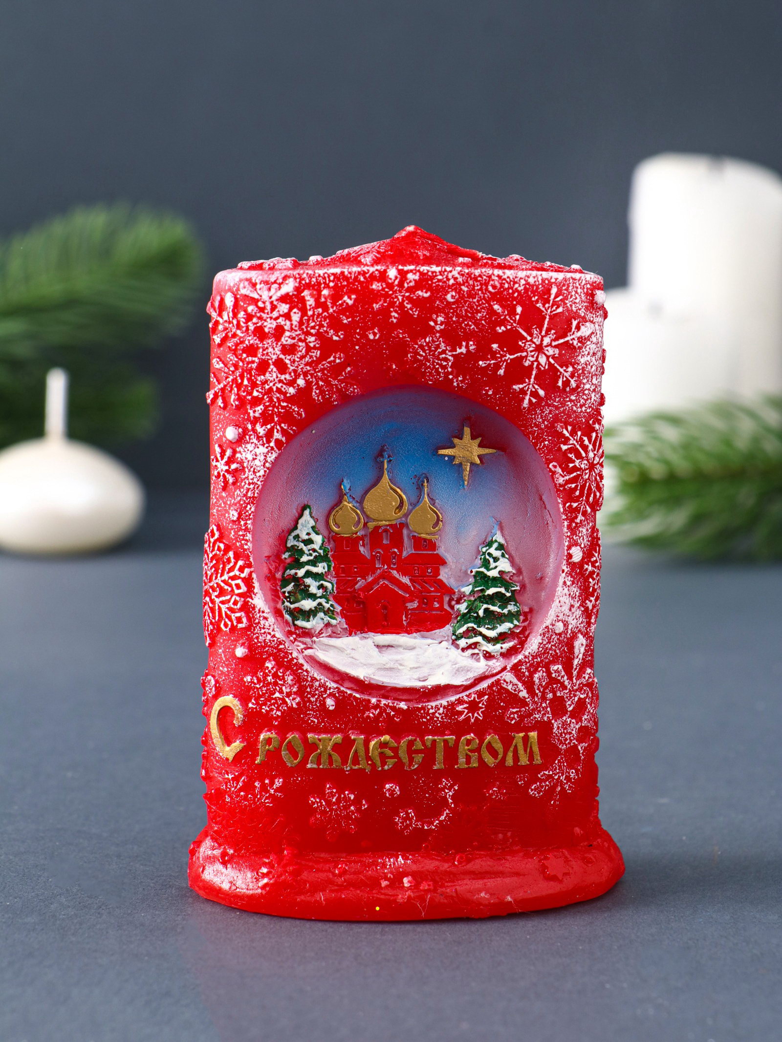 Свеча декоративная "Снежное Рождество" 7x4x10.5 см, красный, Россия