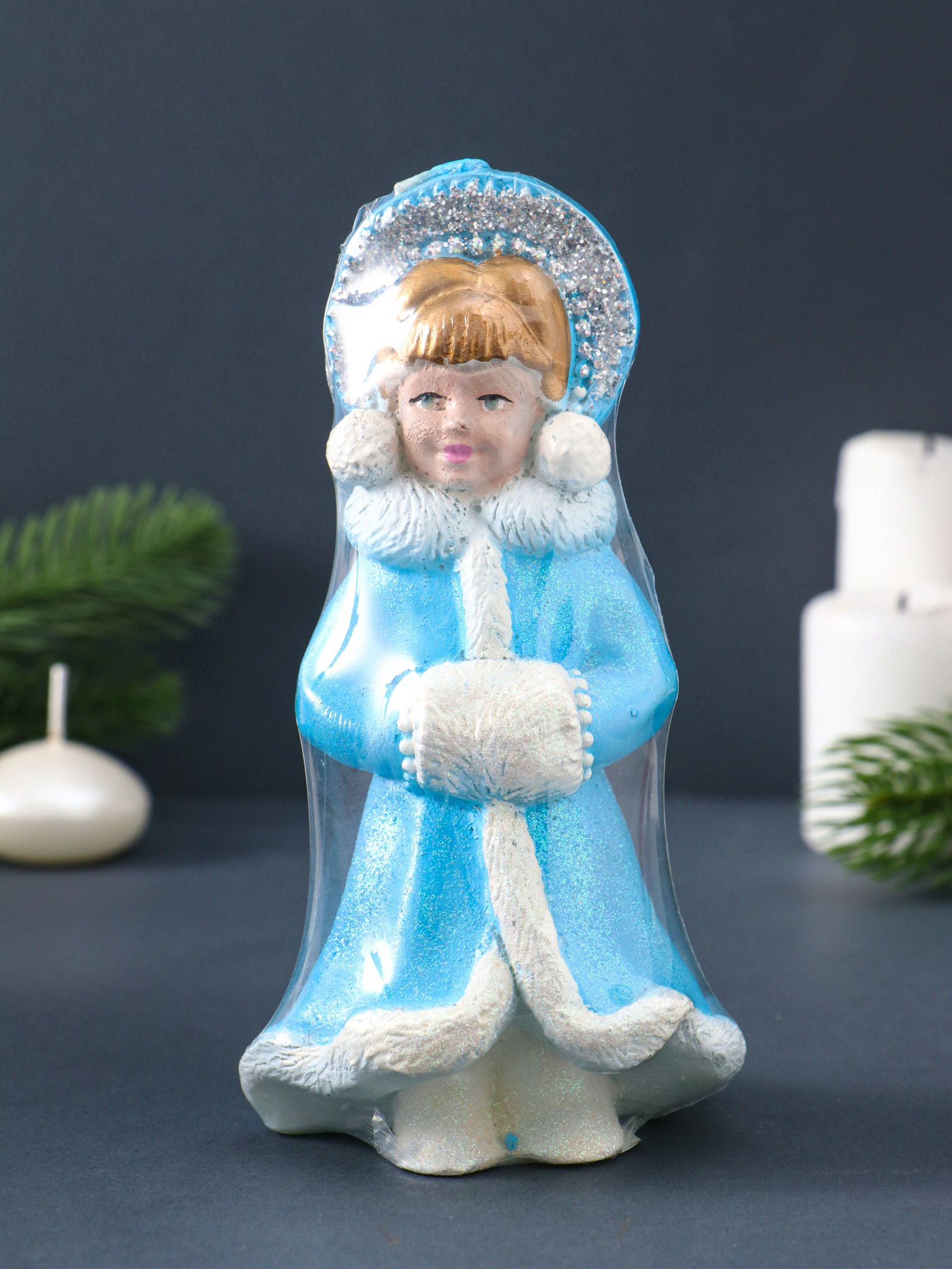 Свеча декоративная "Снегурочка" 8x7.5x15.5 см, голубой, Россия