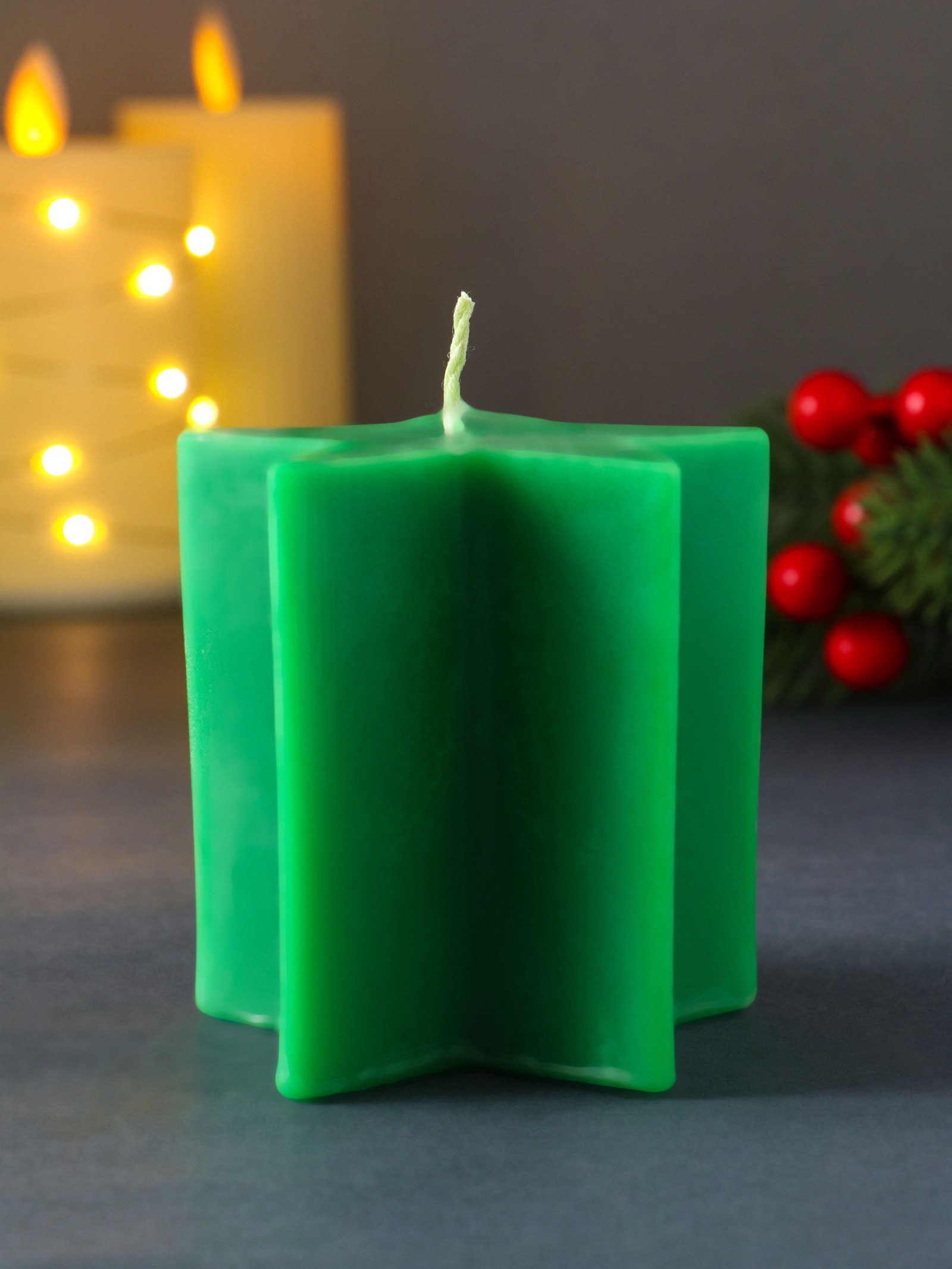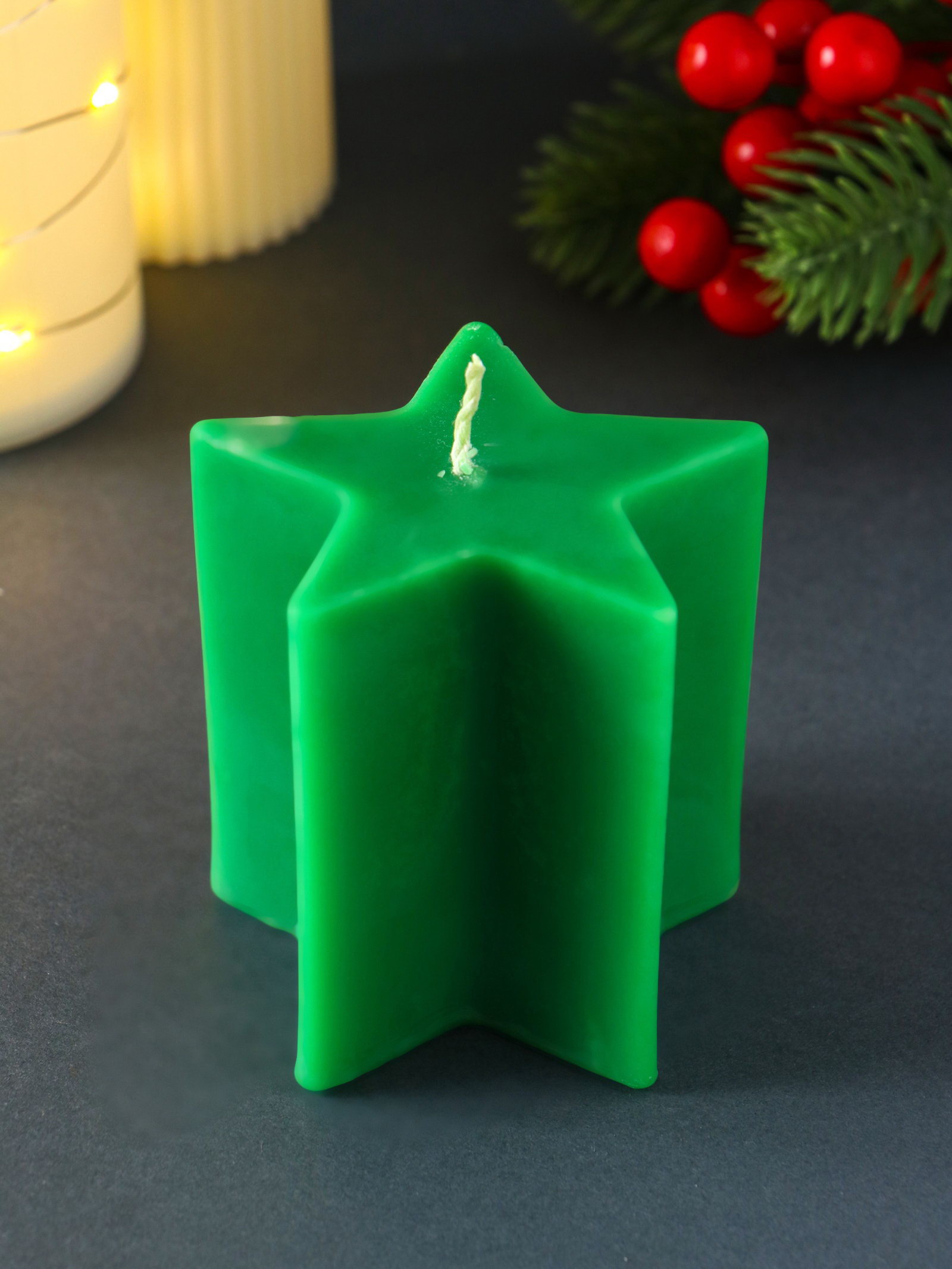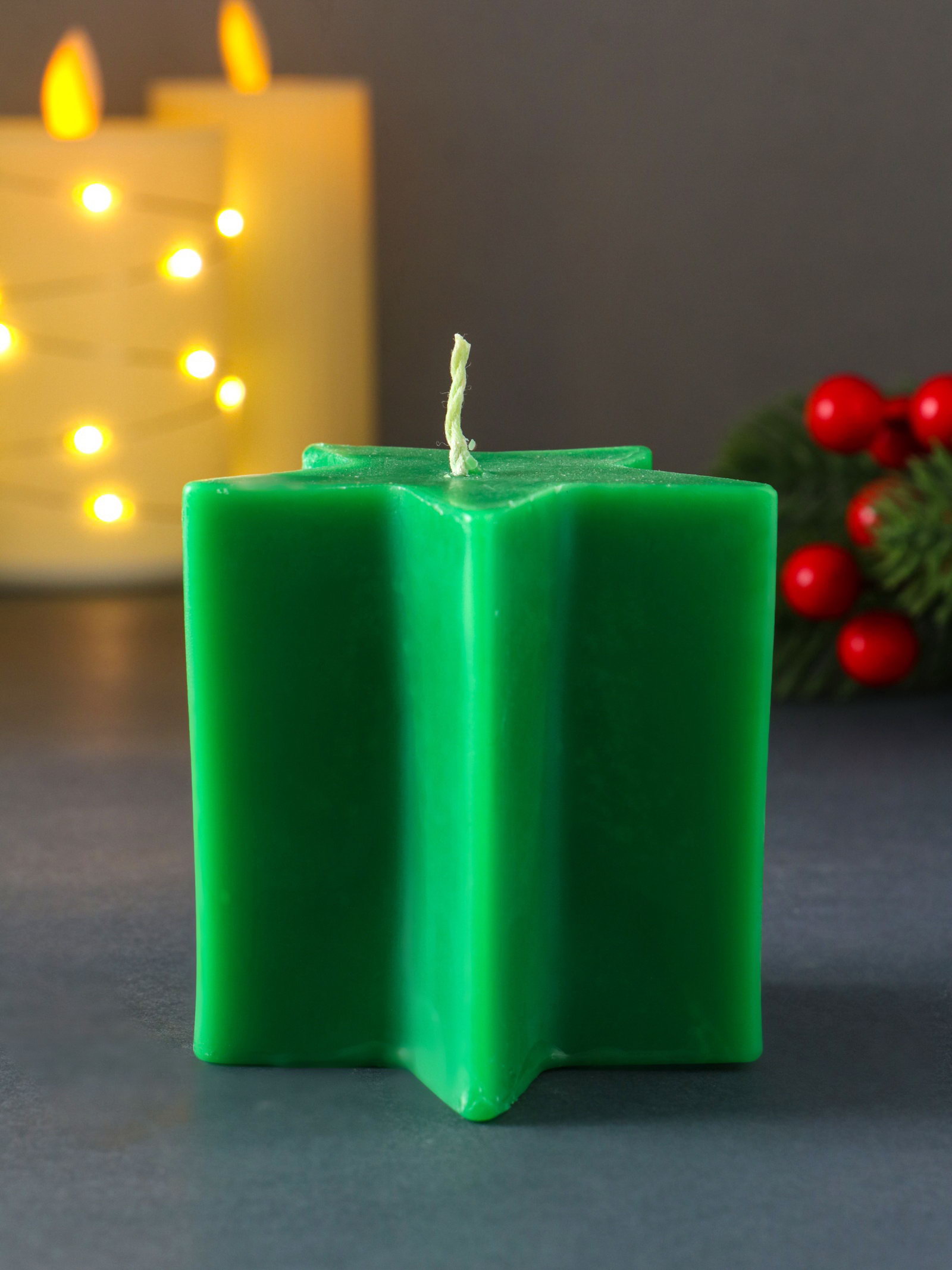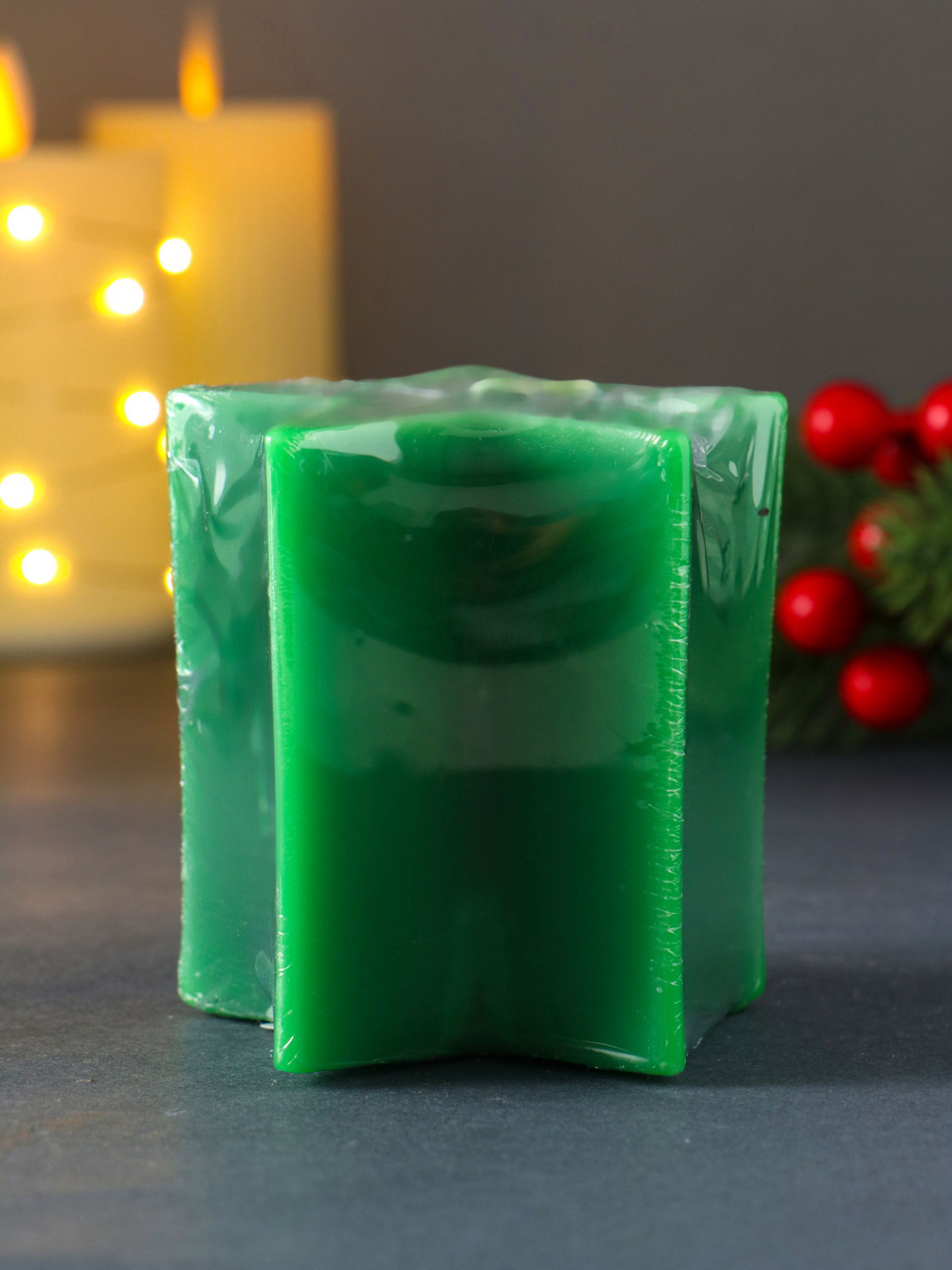 Свеча декоративная "Большая звезда", 75x75x75 мм, зелёная, Россия