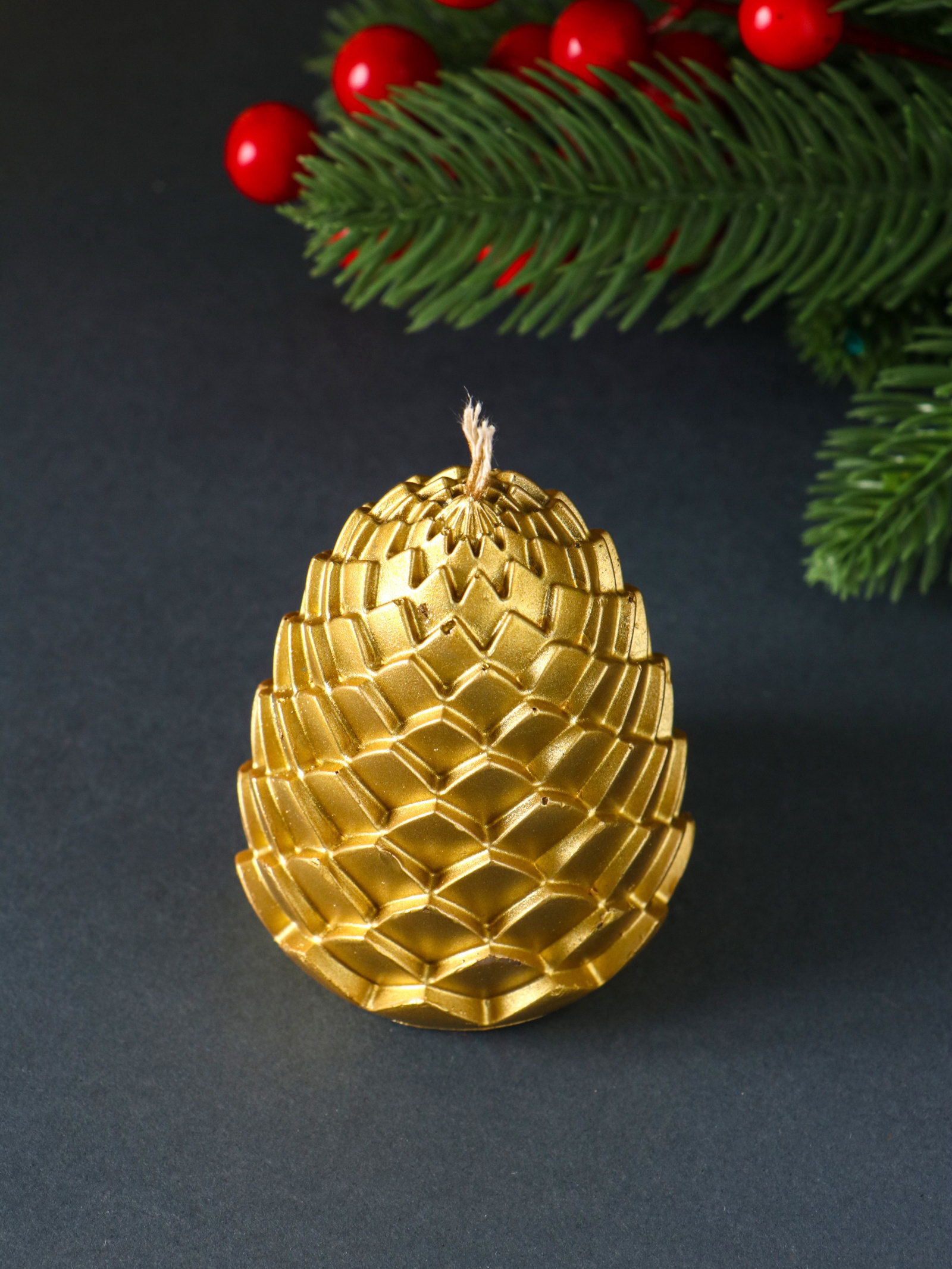 Свеча декоративная "Шишка сканди", 58x70 мм, лак золото, Россия
