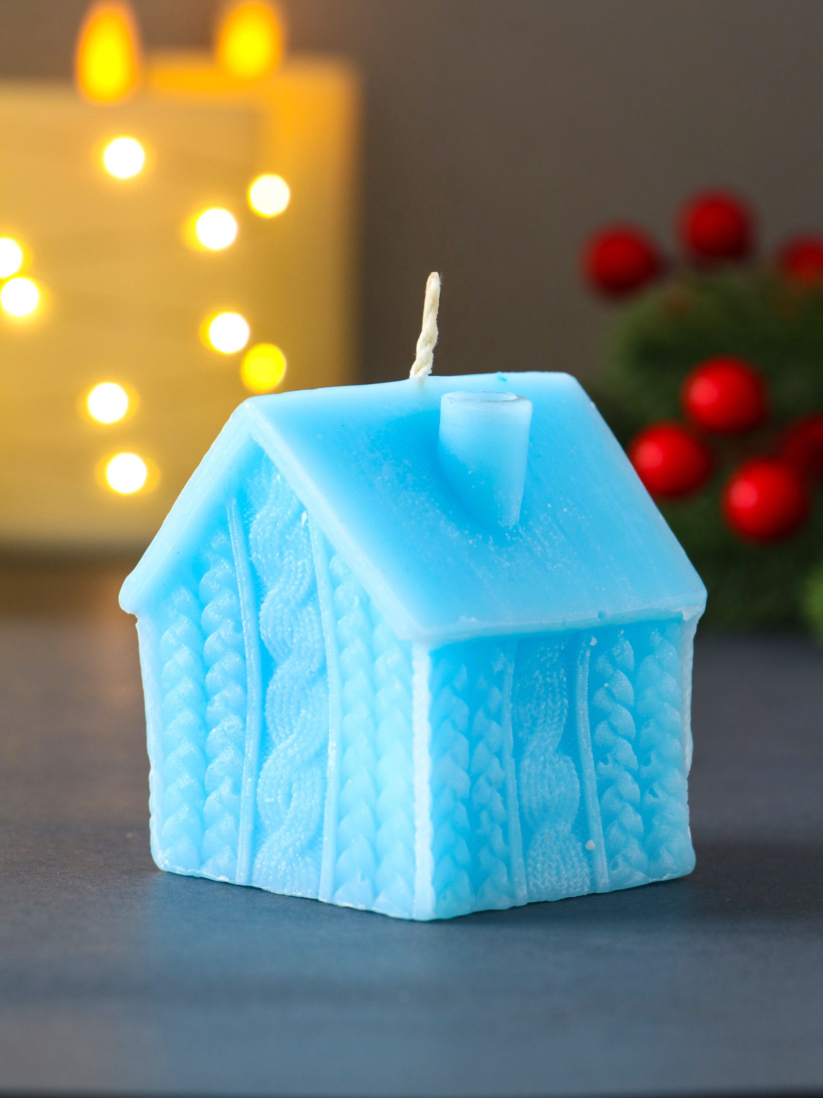 Свеча декоративная "Сканди дом вязаный", 55x60 мм, голубой, Россия