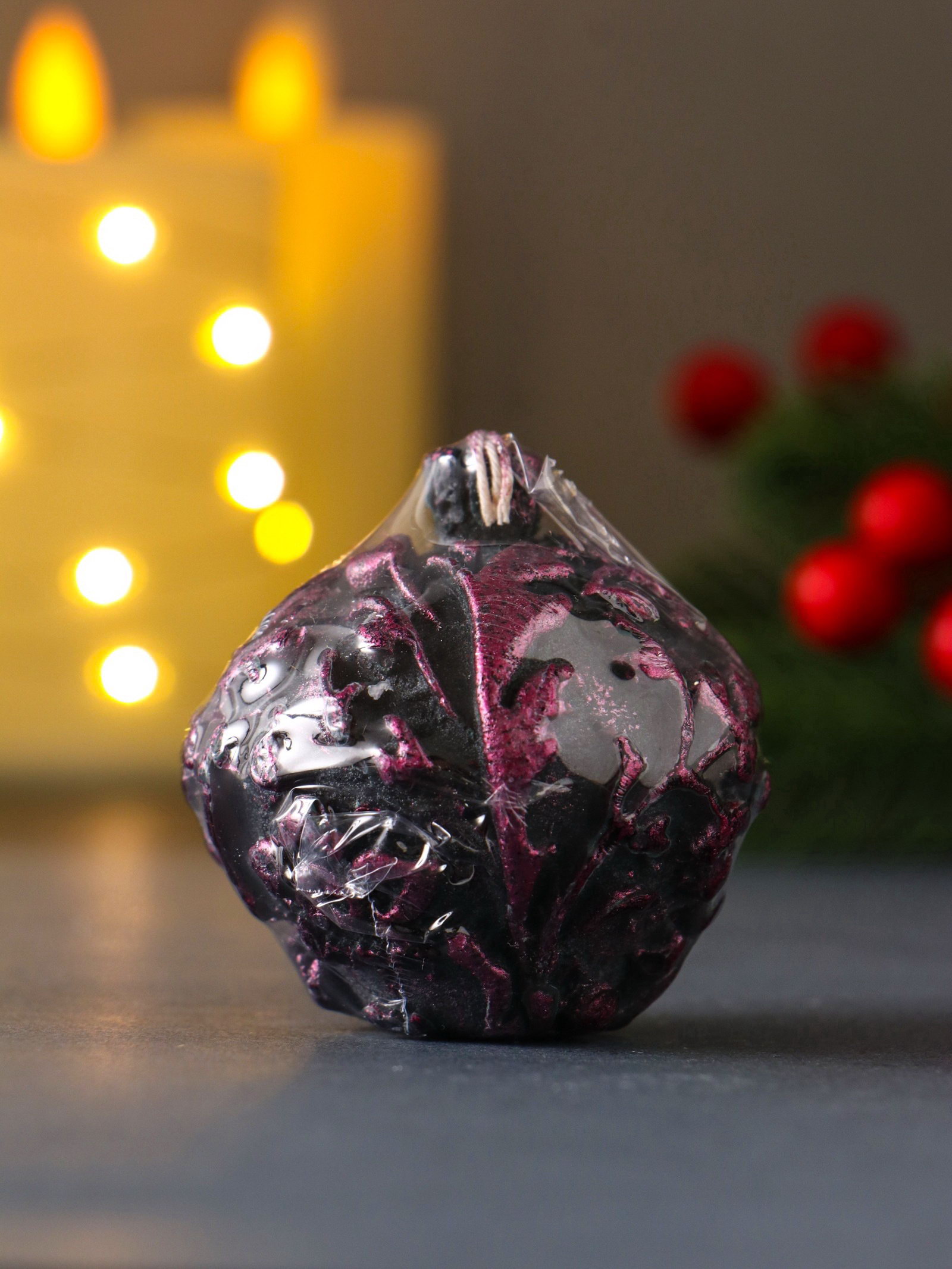 Свеча декоративная "Новогодний шарик", 55x55 мм, розовая роспись, Россия
