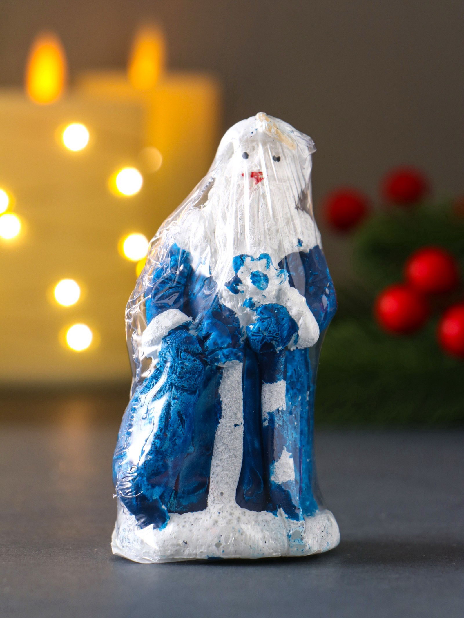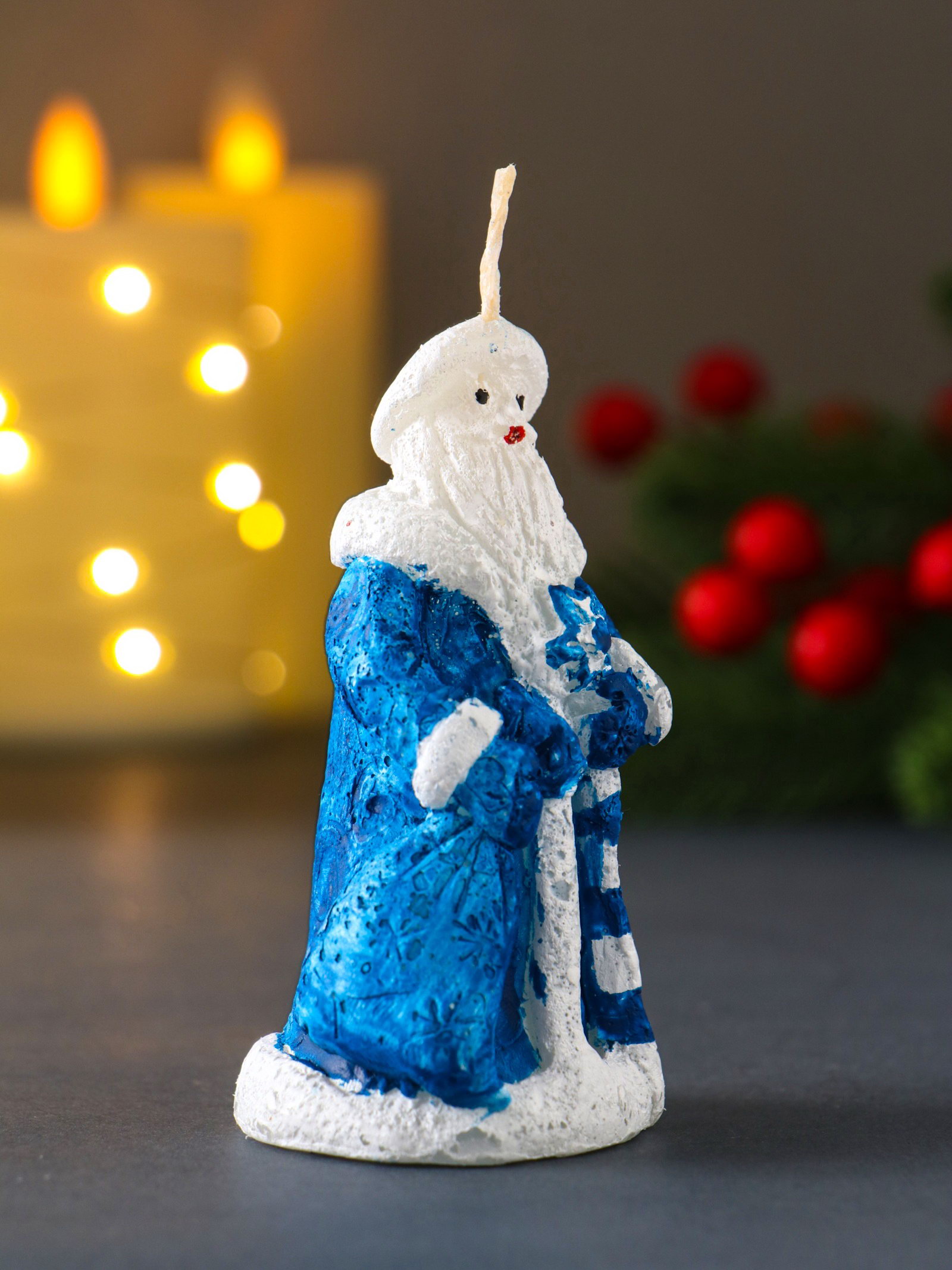 Свеча декоративная "Дед Мороз", 45x88, синий, Россия