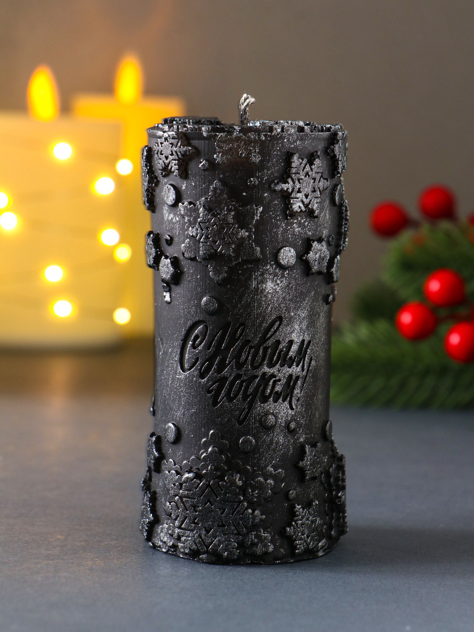 Свеча-цилиндр "С Новым годом", 55x105 мм, т. синяя, Россия