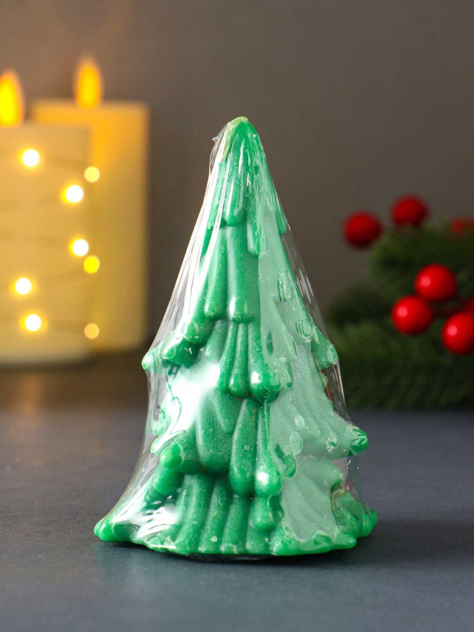Свеча декоративная "Зимняя Ель", 70x110 мм, зеленая, Россия