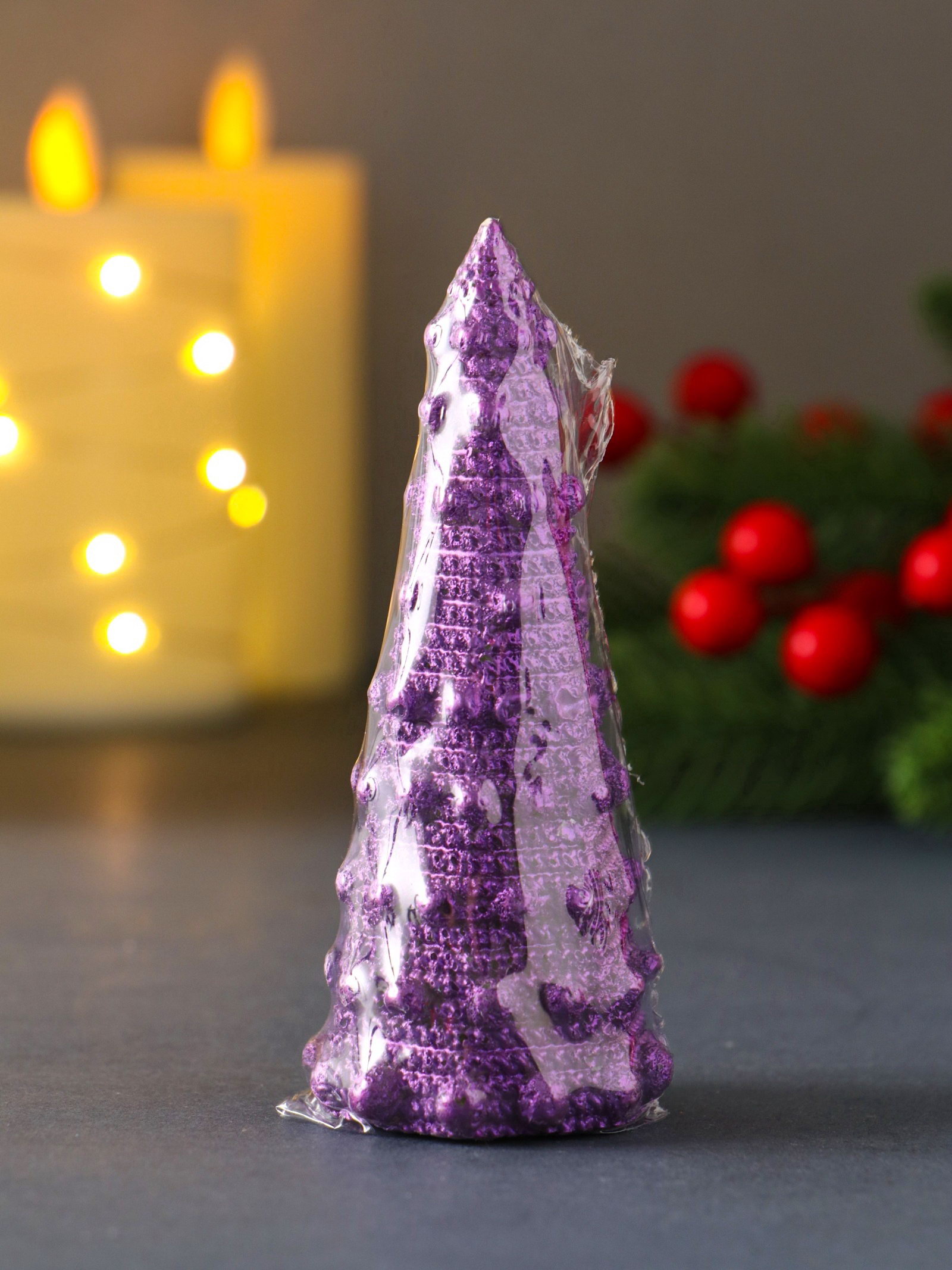 Идеальный праздничный аксессуар: Эта свеча станет изюминкой вашего интерьера в новогодние праздники. Она не требует ухода и дополнительных аксессуаров, будучи самодостаточным декором. Подарите себе и близким ощущение уюта и предвкушения праздника с этой изящной фиолетовой ёлочкой. | ||