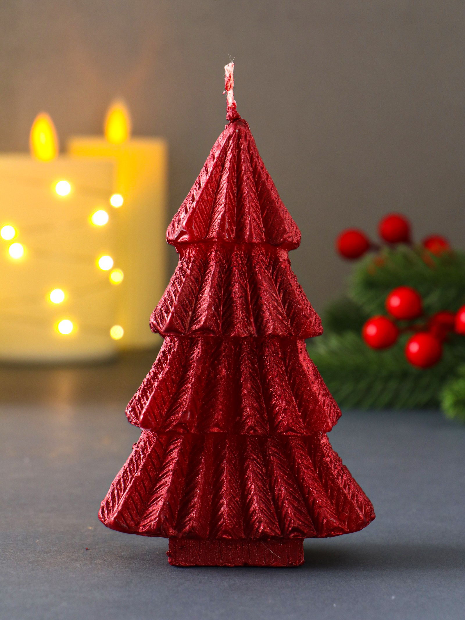 Свеча декоративная "Ёлка геометрия", 80x120 мм, лак, красная, Россия
