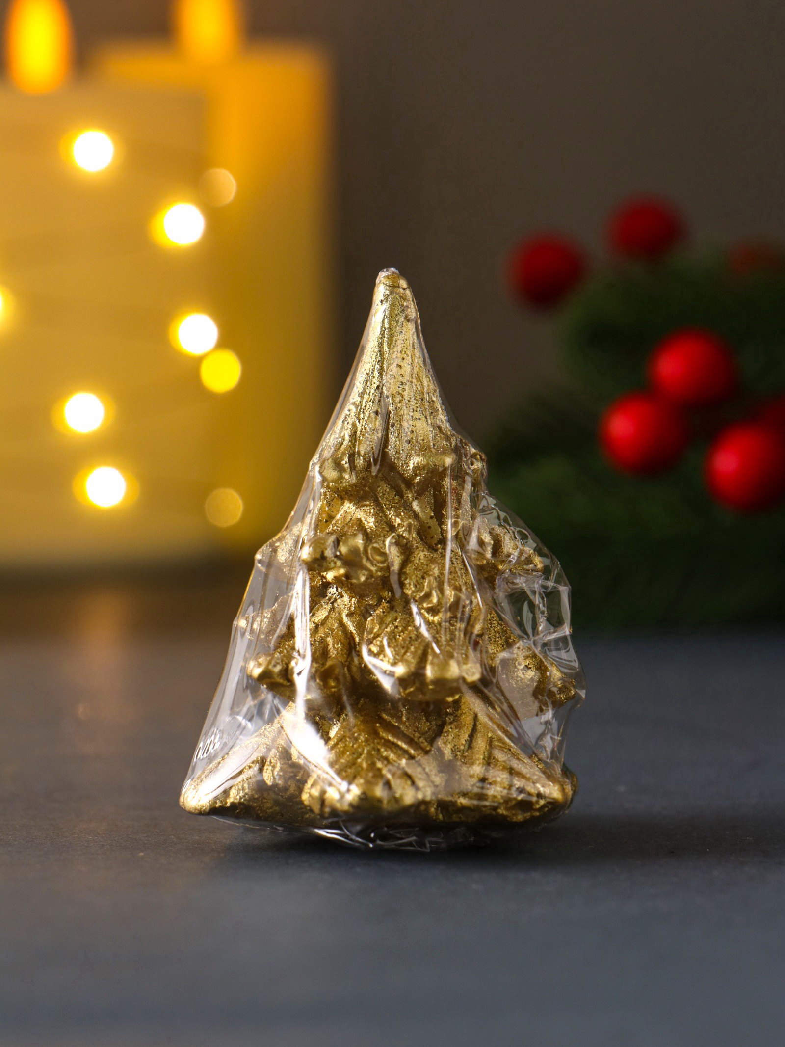 Свеча декоративная "Ёлочка", 50x65 мм, лак, золото, Россия