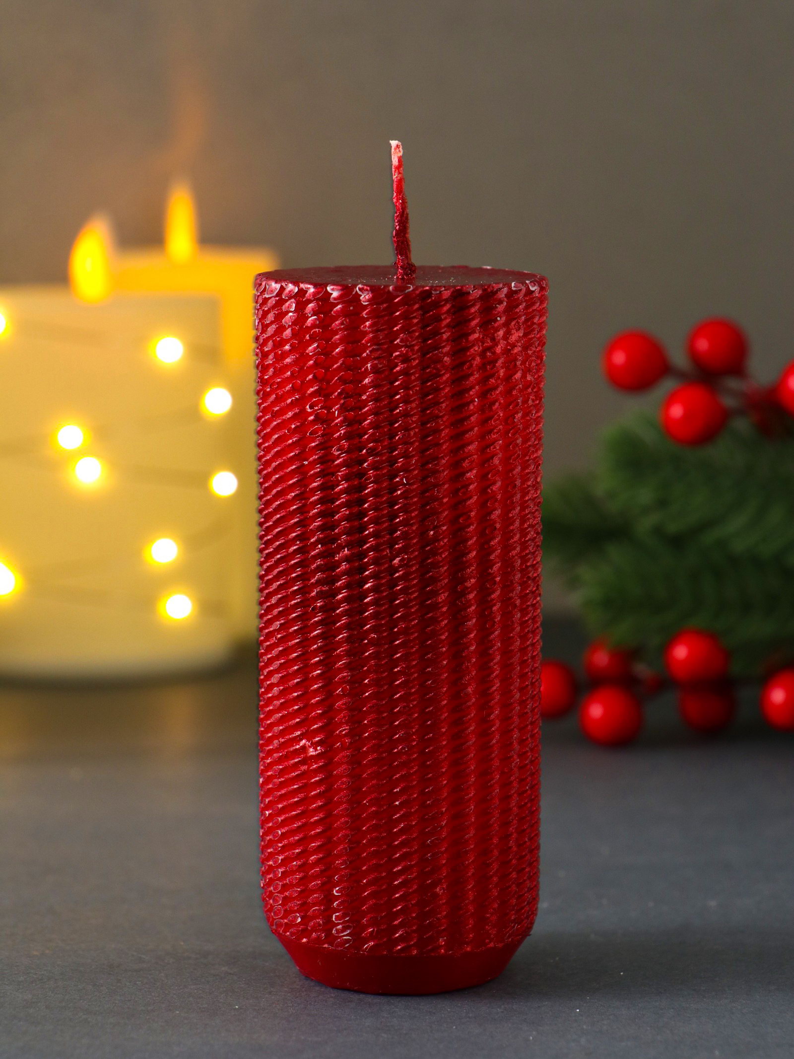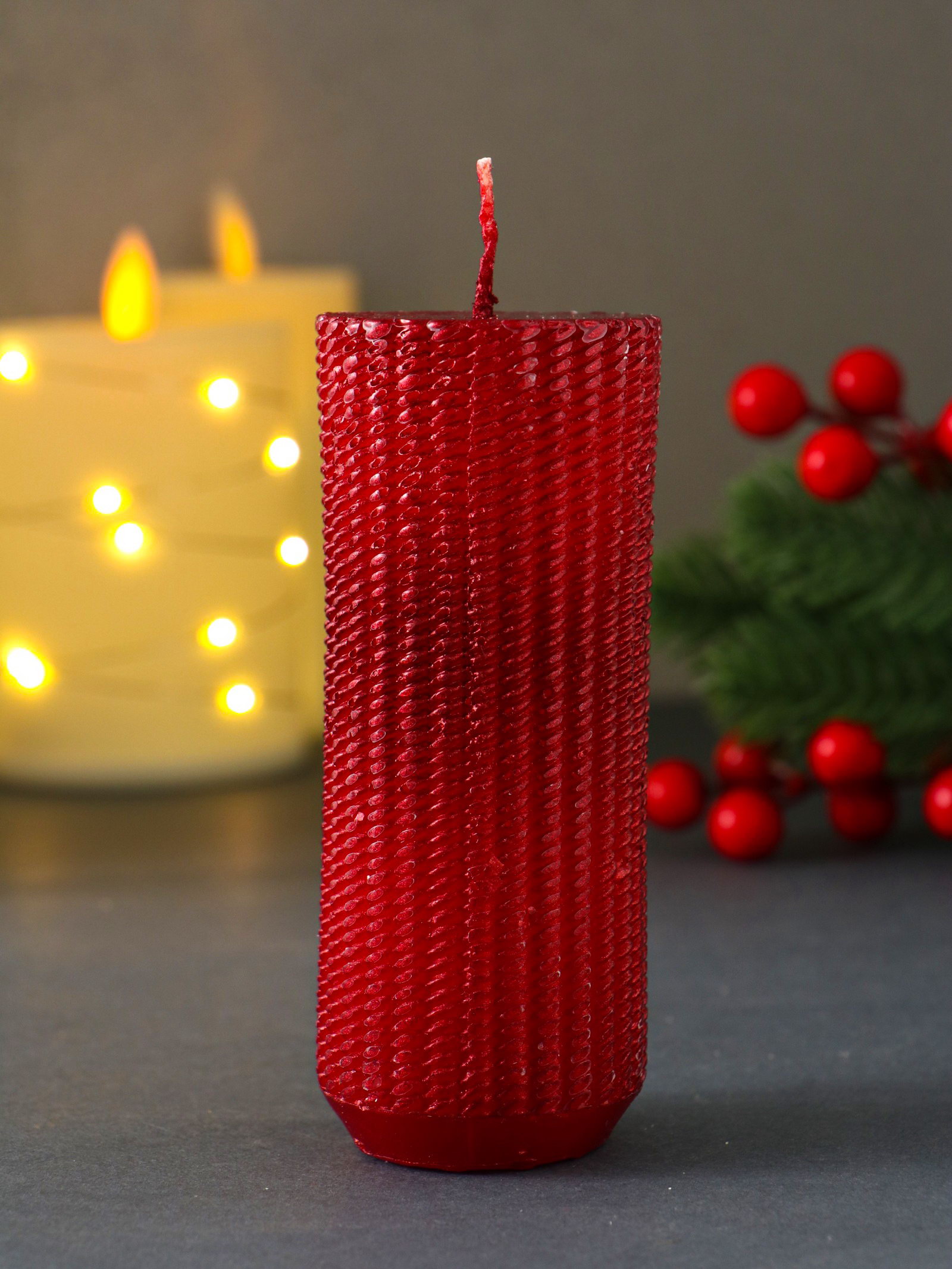 Свеча-цилиндр "Вязаный", 47x117 мм, лак, красная, Россия