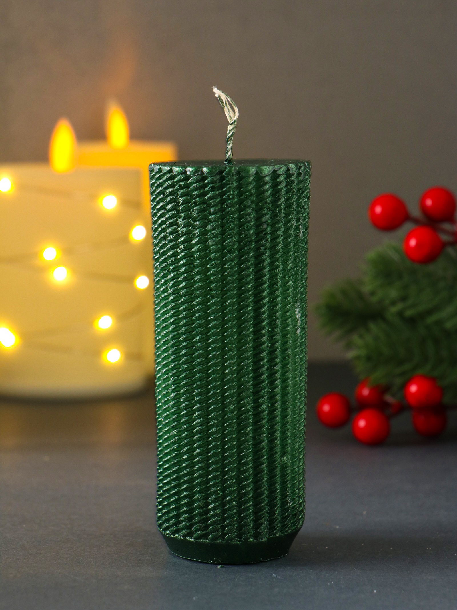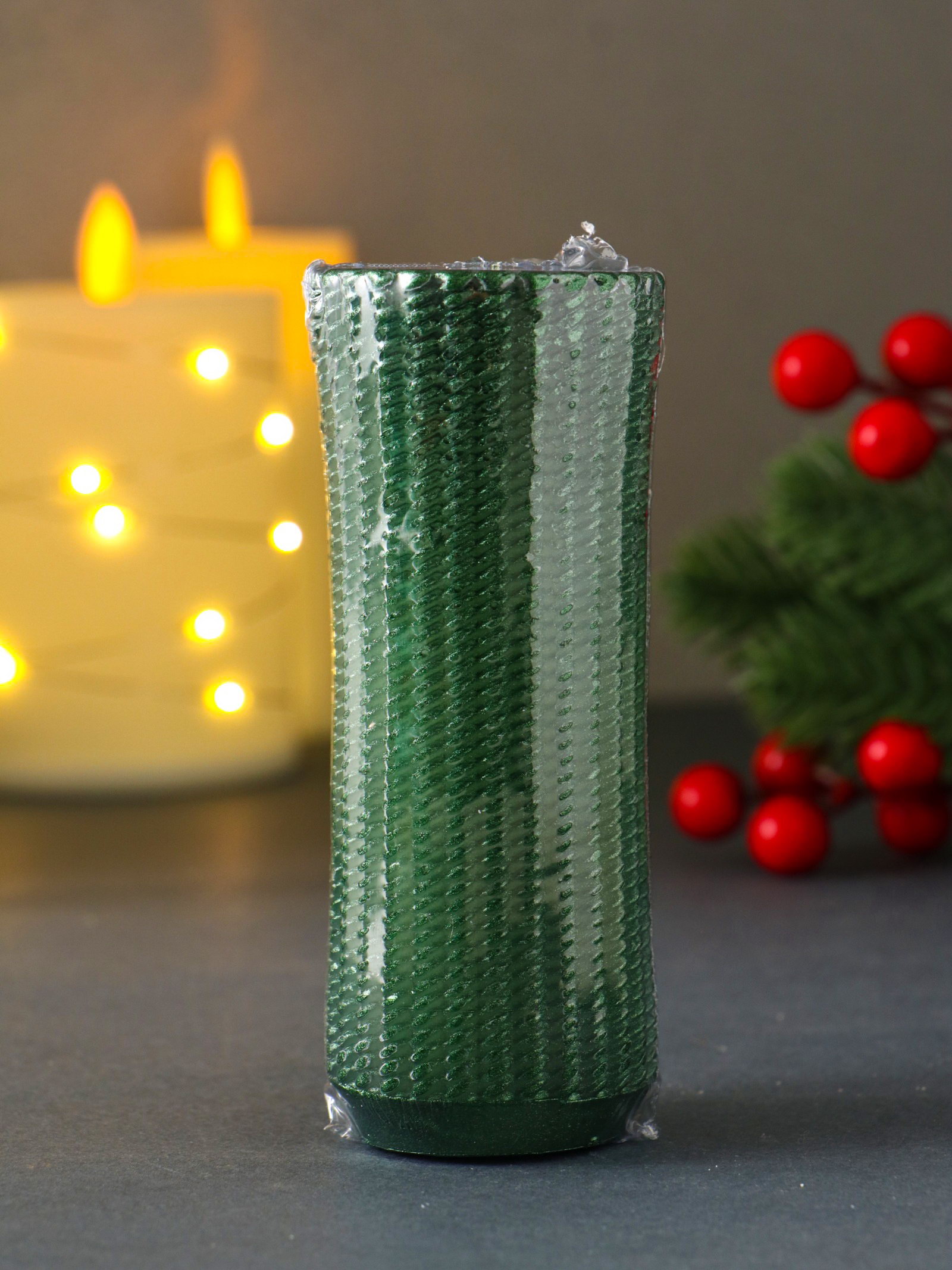 Свеча-цилиндр "Вязаный", 47x117 мм, лак, зелёная, Россия