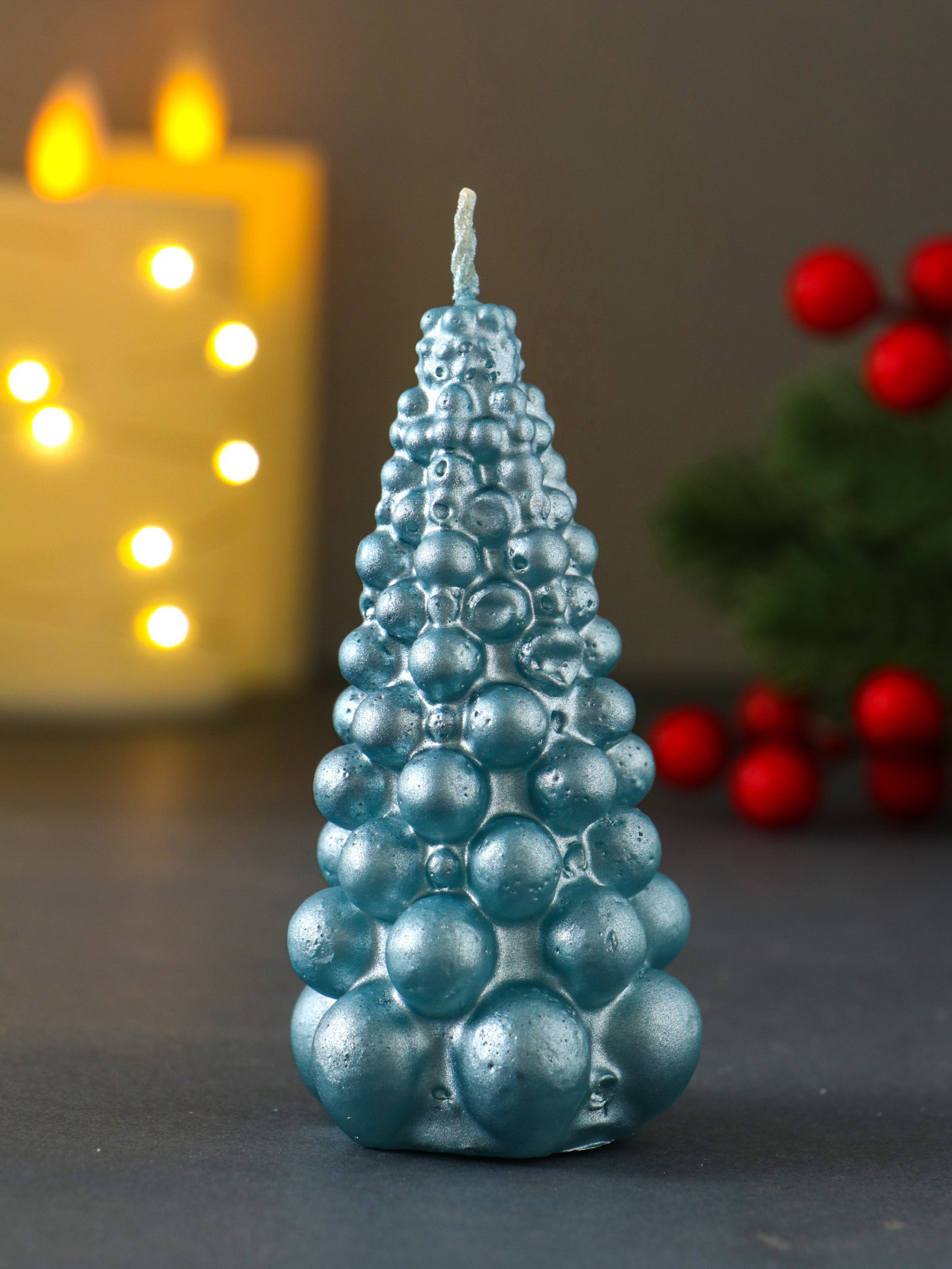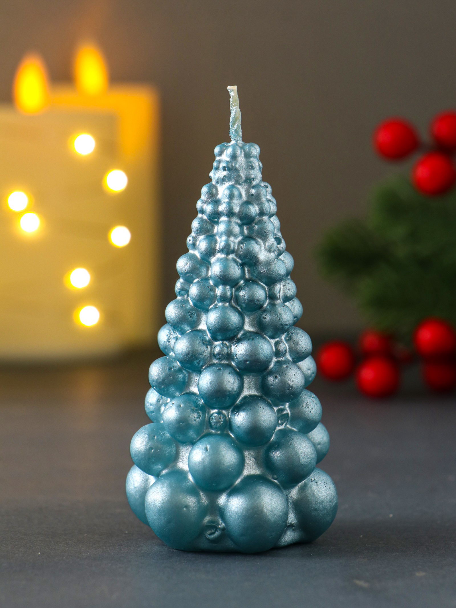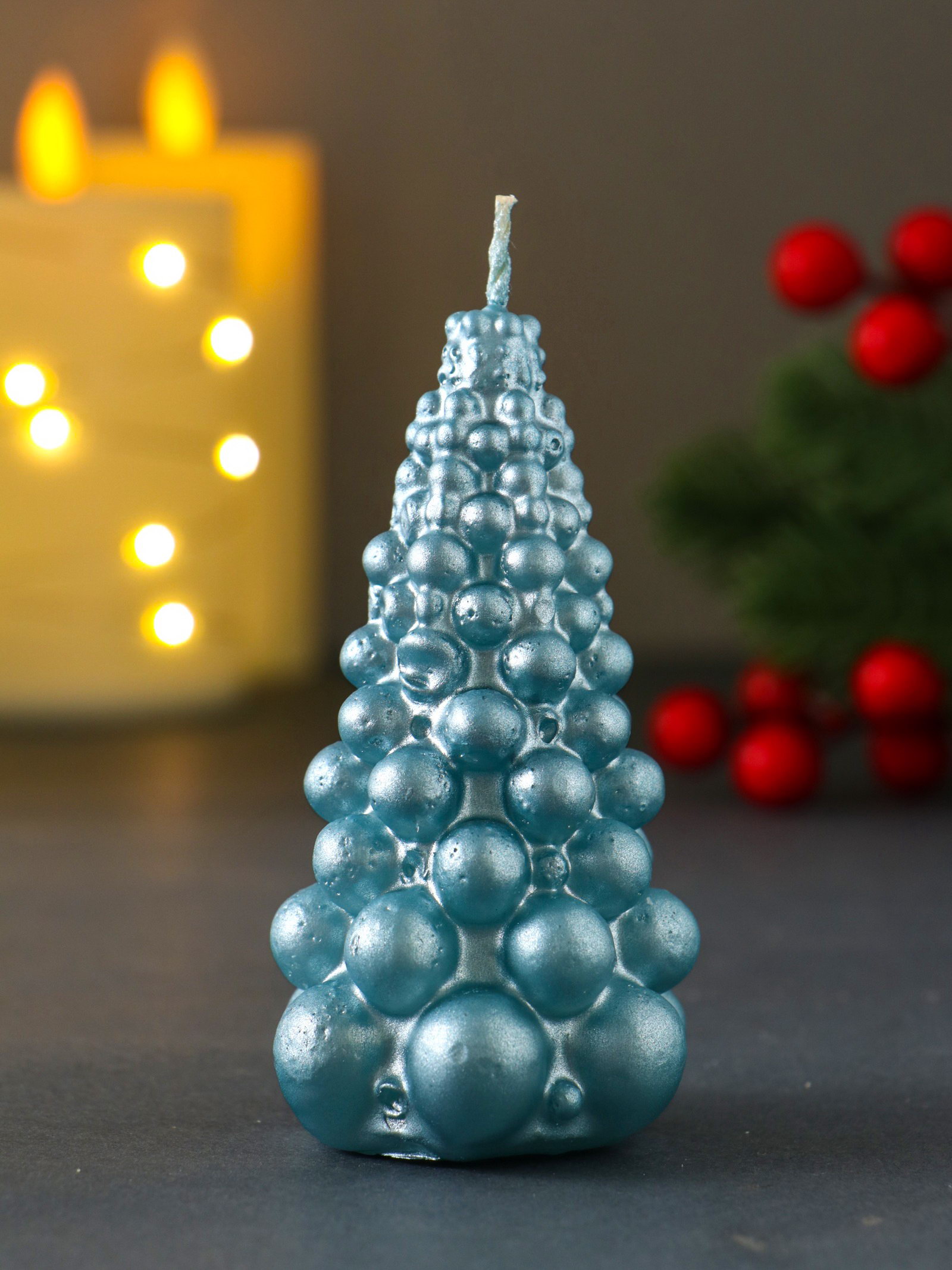 Свеча декоративная "Ёлка из шаров", 50x90 мм, лак, голубая, Россия