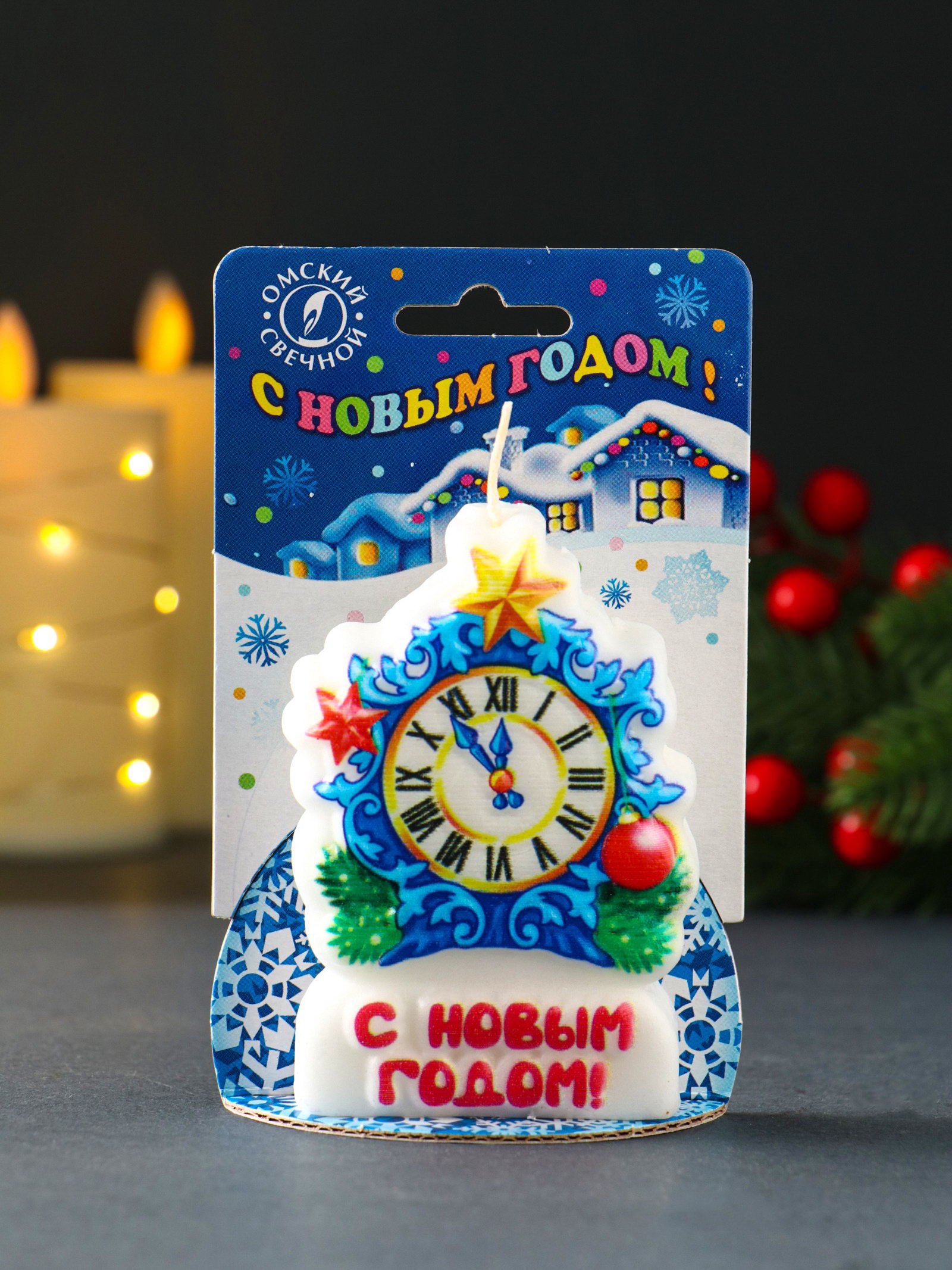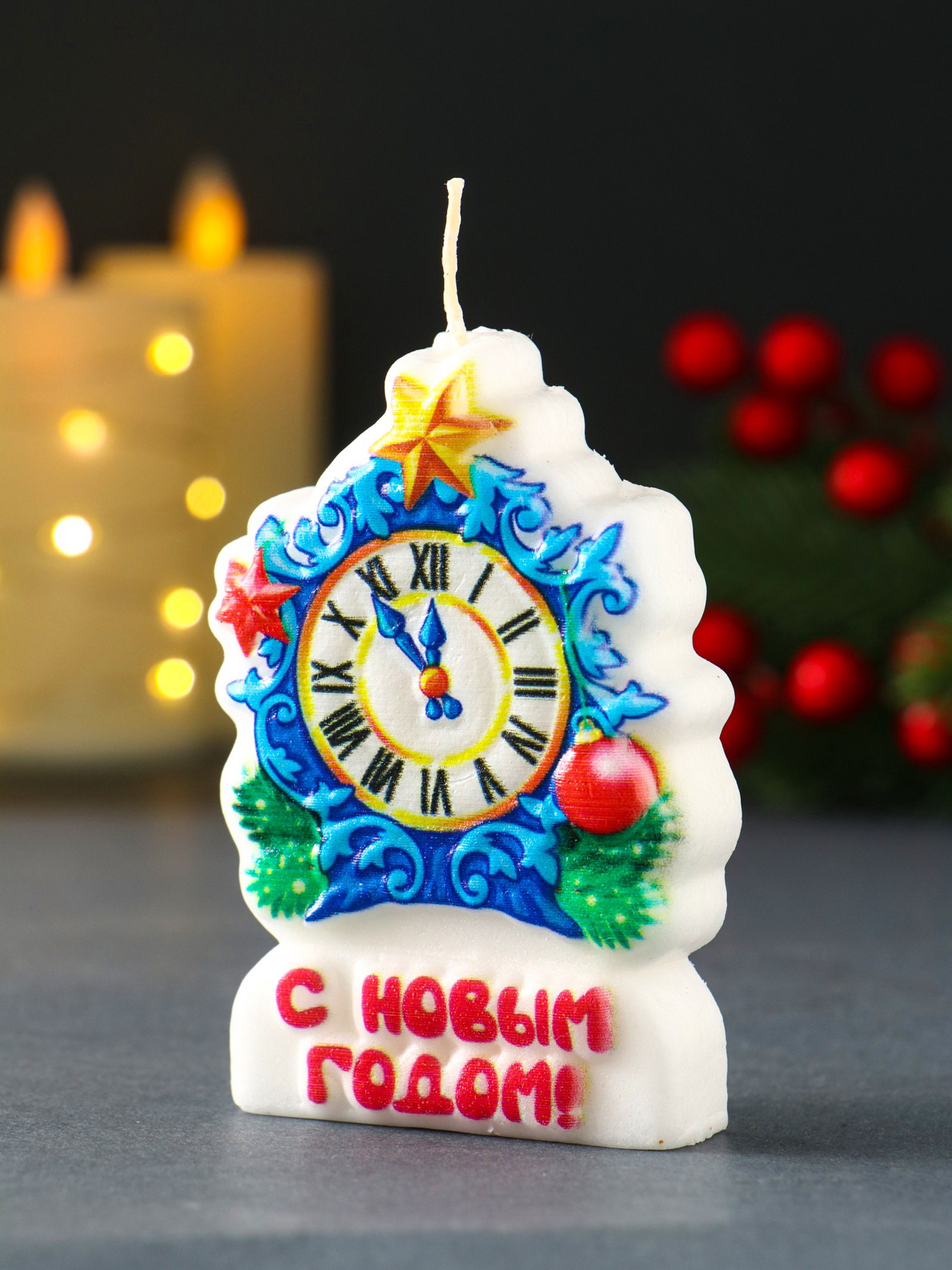 Свеча новогодняя "Куранты. Барельеф", 5.4x1.7x8 см, Омский свечной завод, Россия