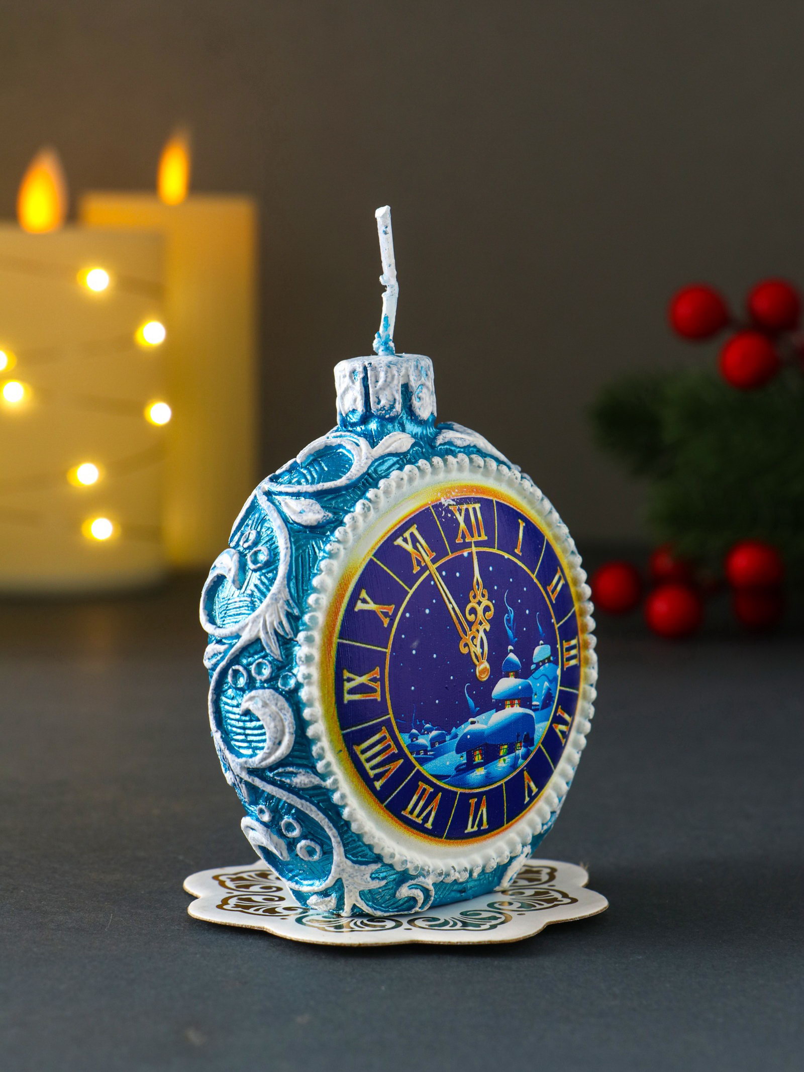 Свеча новогодняя "Куранты", 7.2x5x8.5 см, Омский свечной завод, Россия