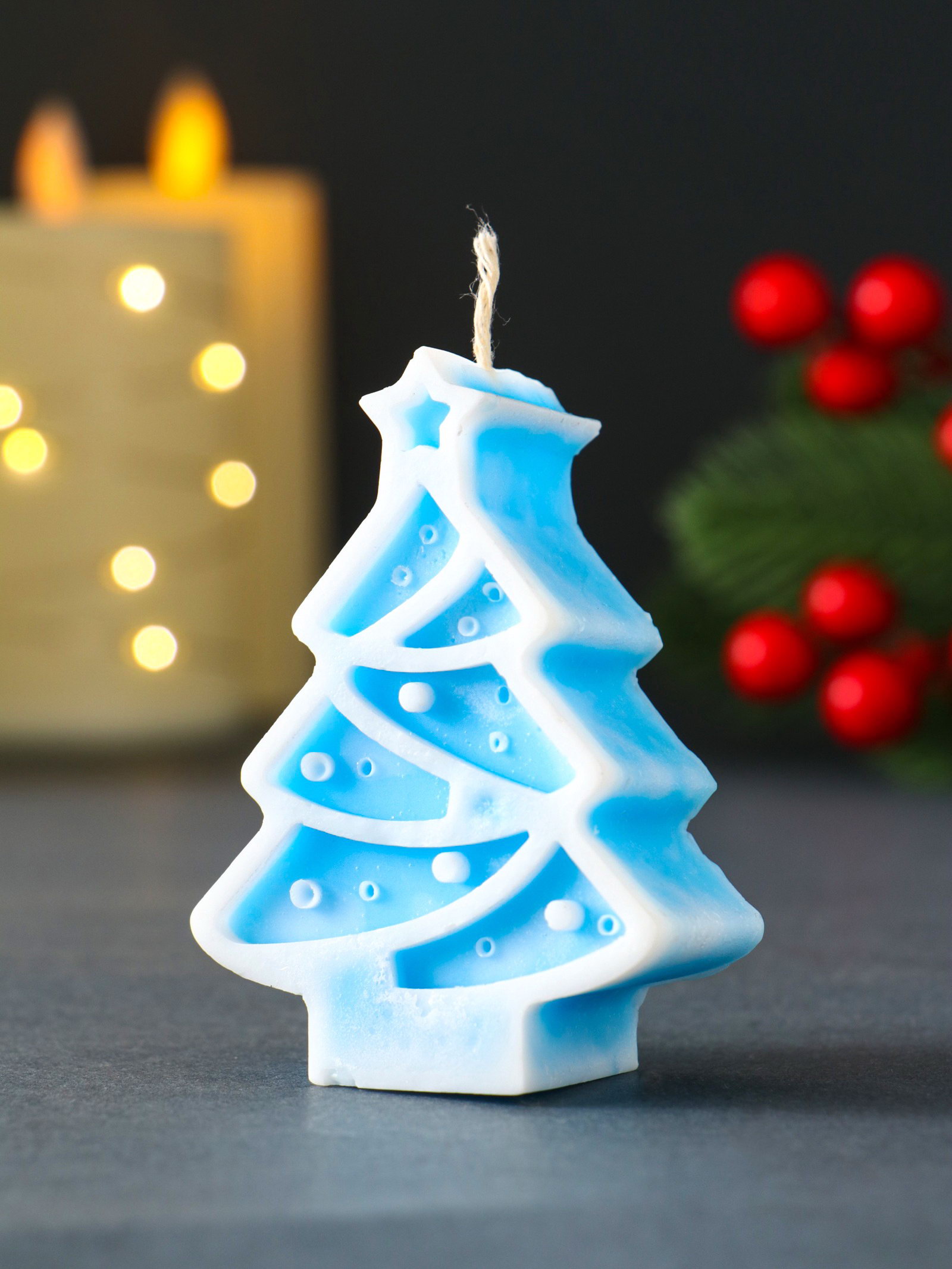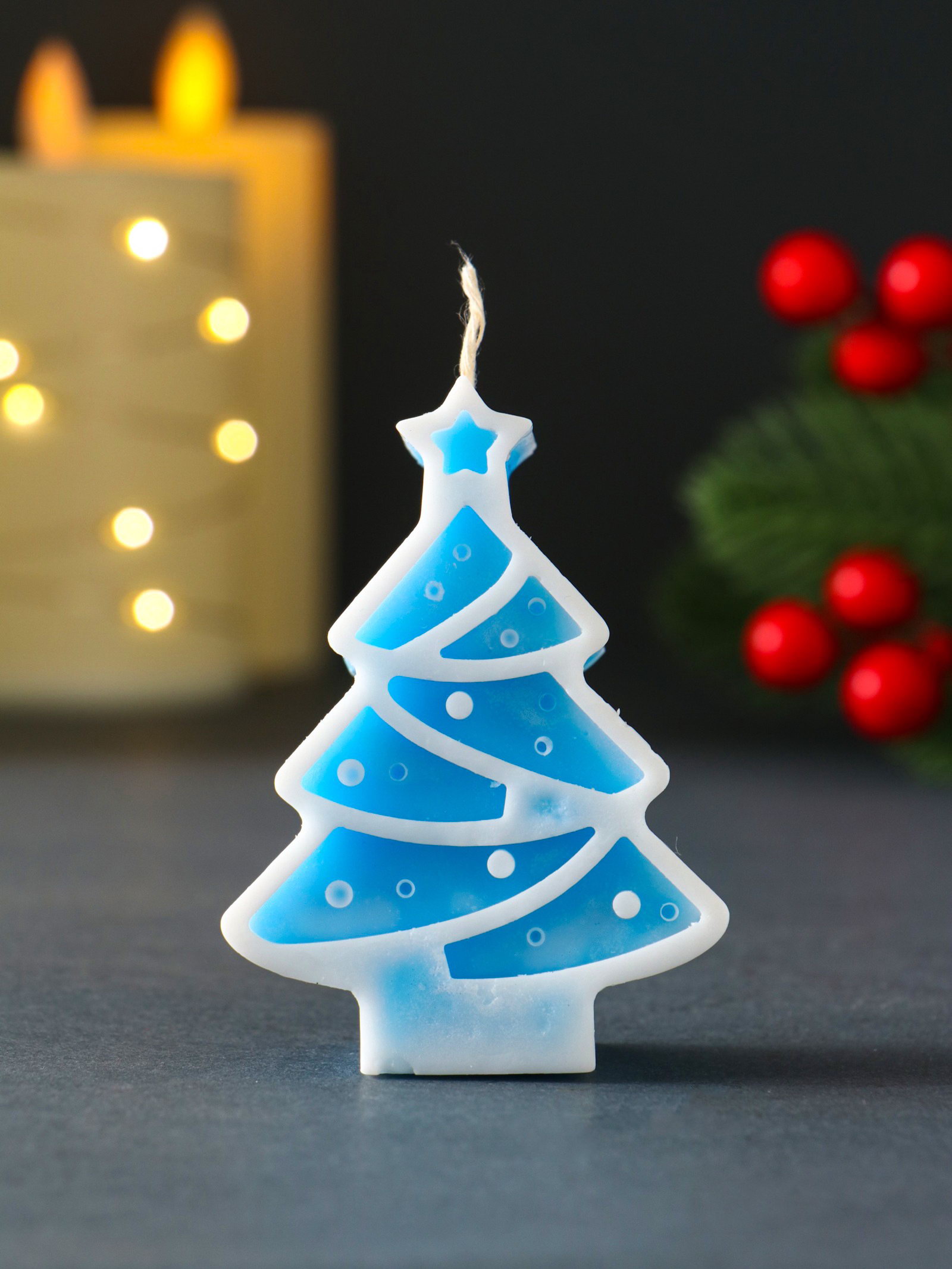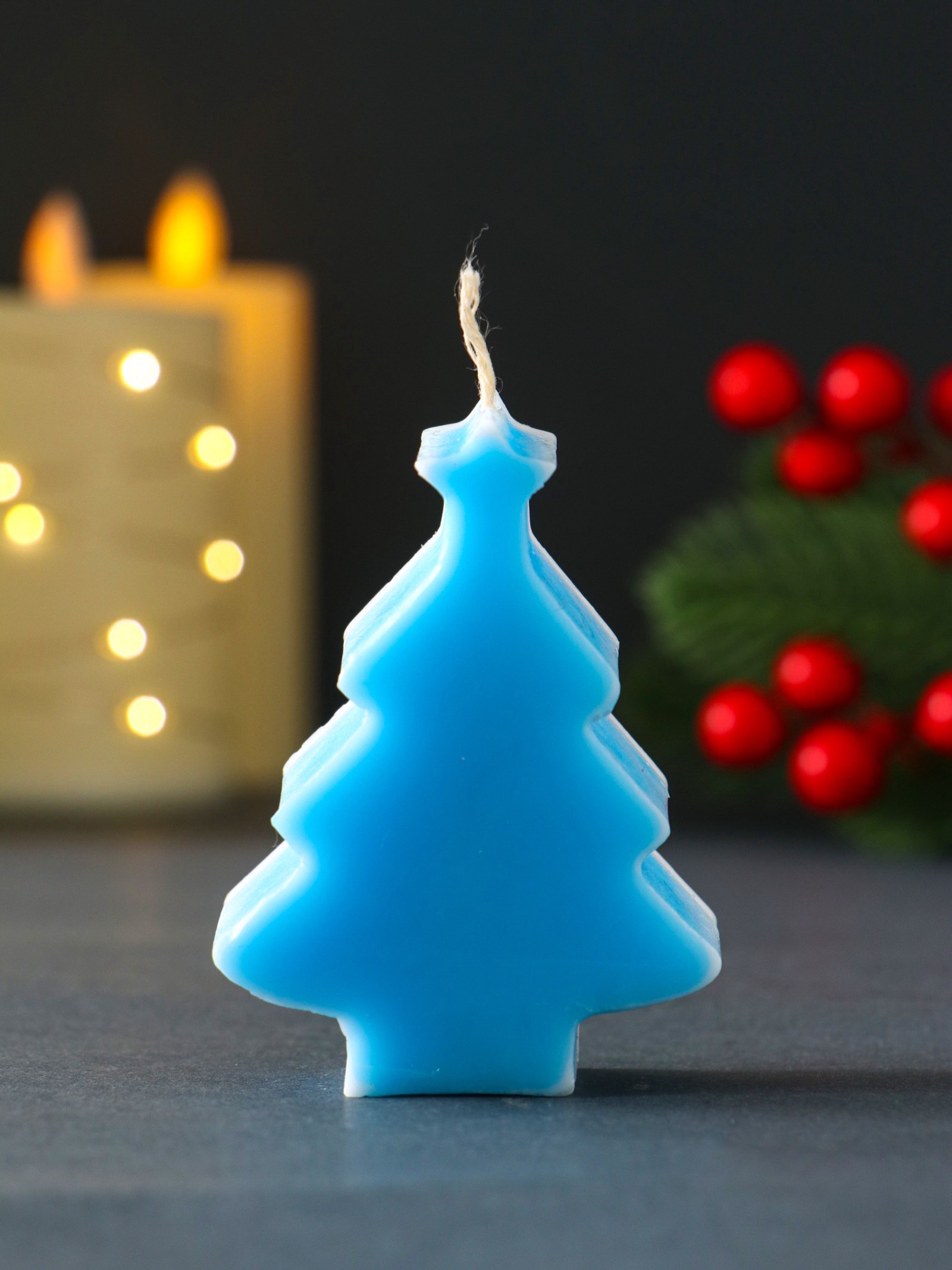 Свеча новогодняя "Ёлочка с гирляндой", 55x75 мм, голубой, Россия