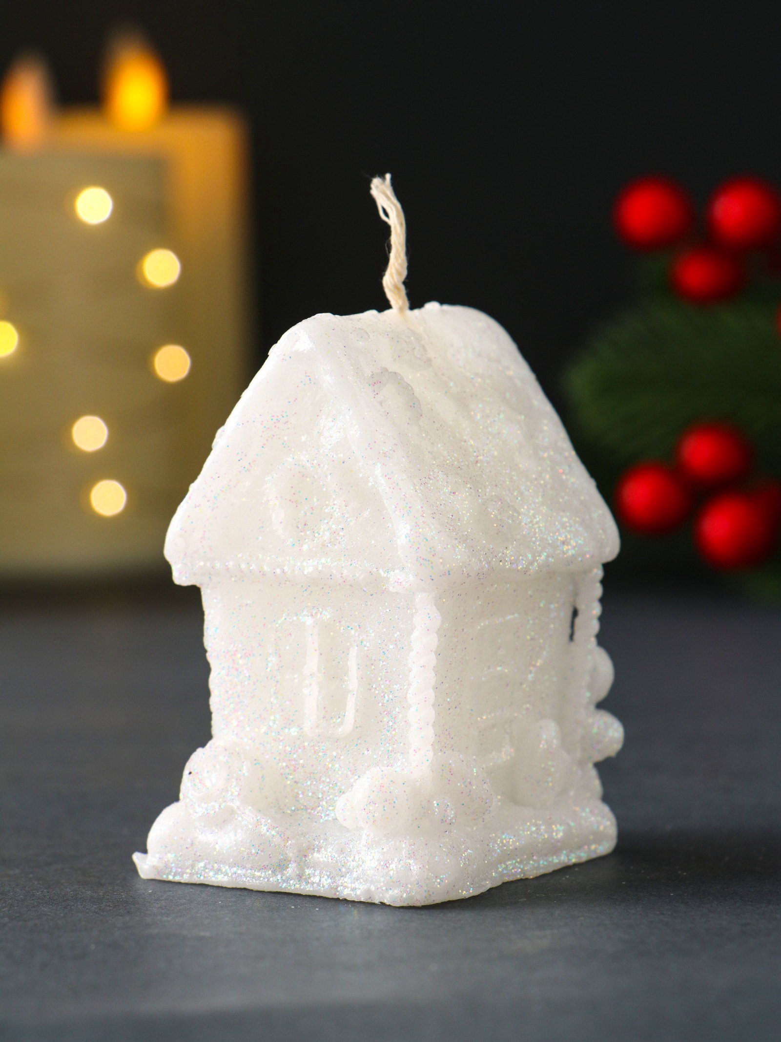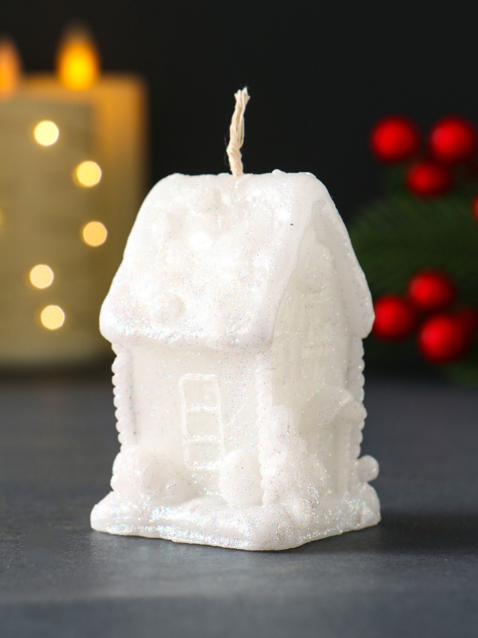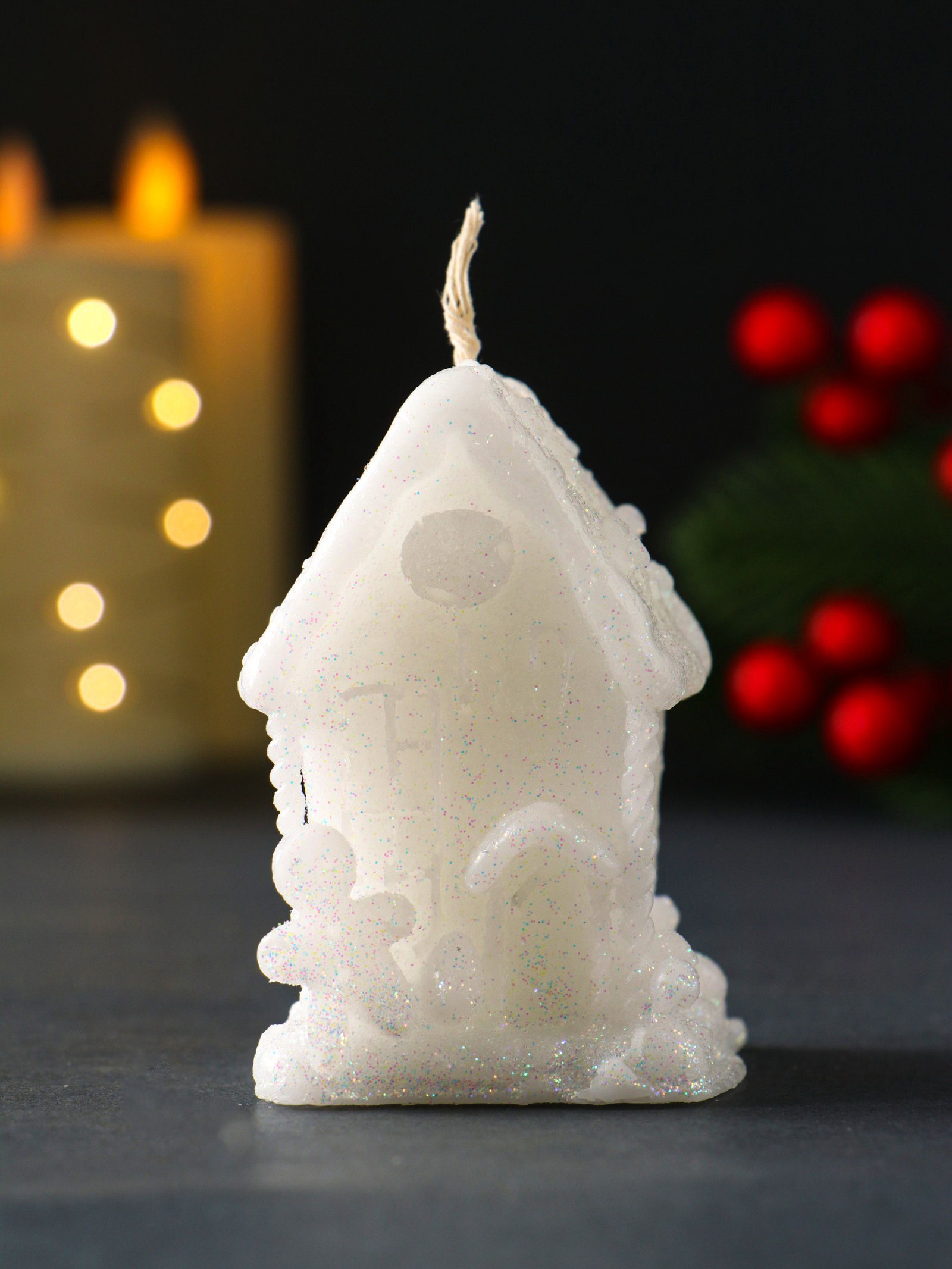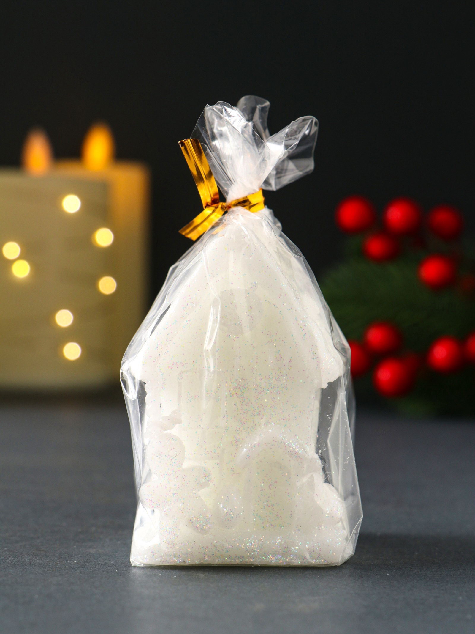 Свеча новогодняя "Домик с Пряником", 40x70 мм, белый, Россия