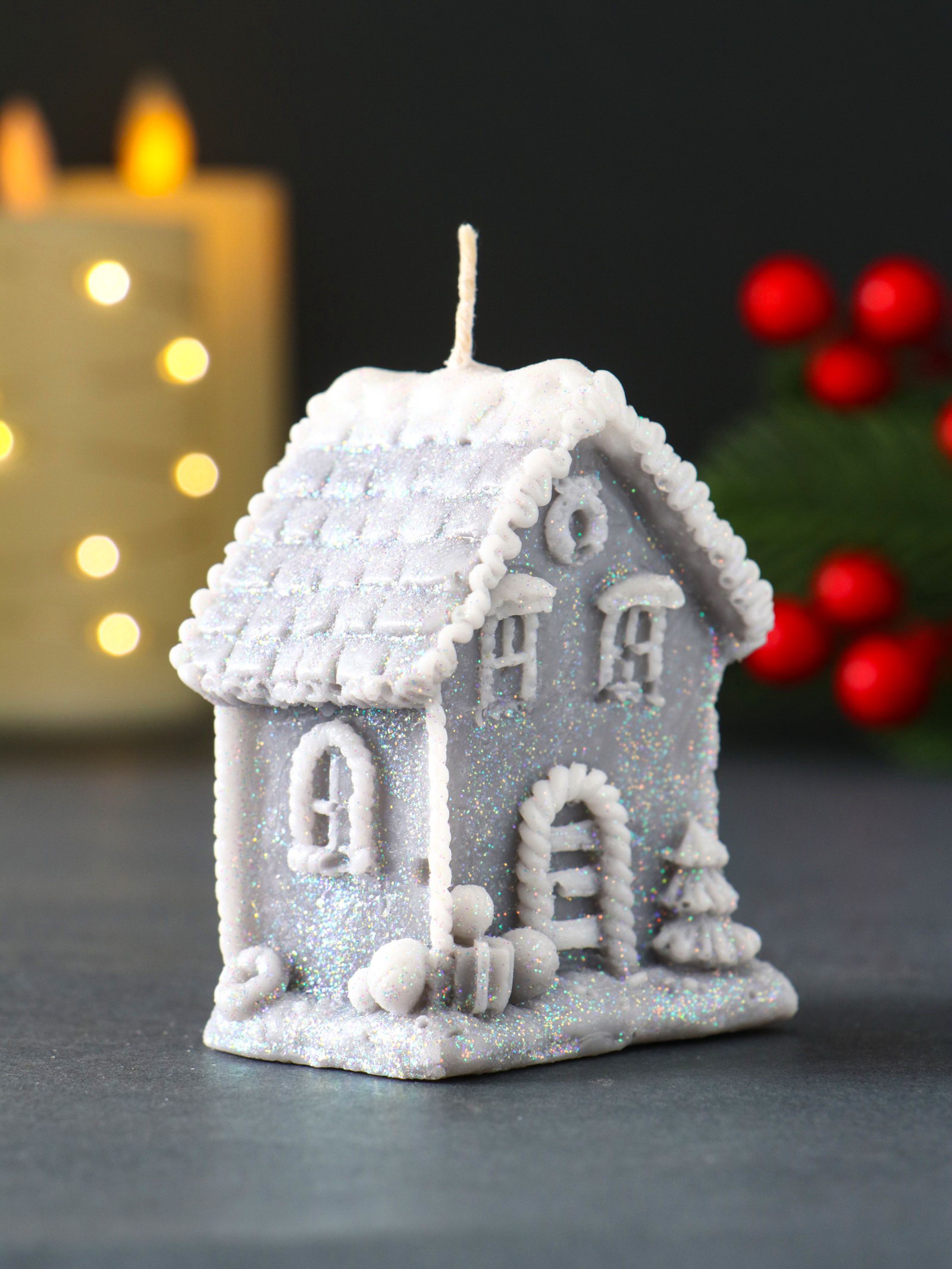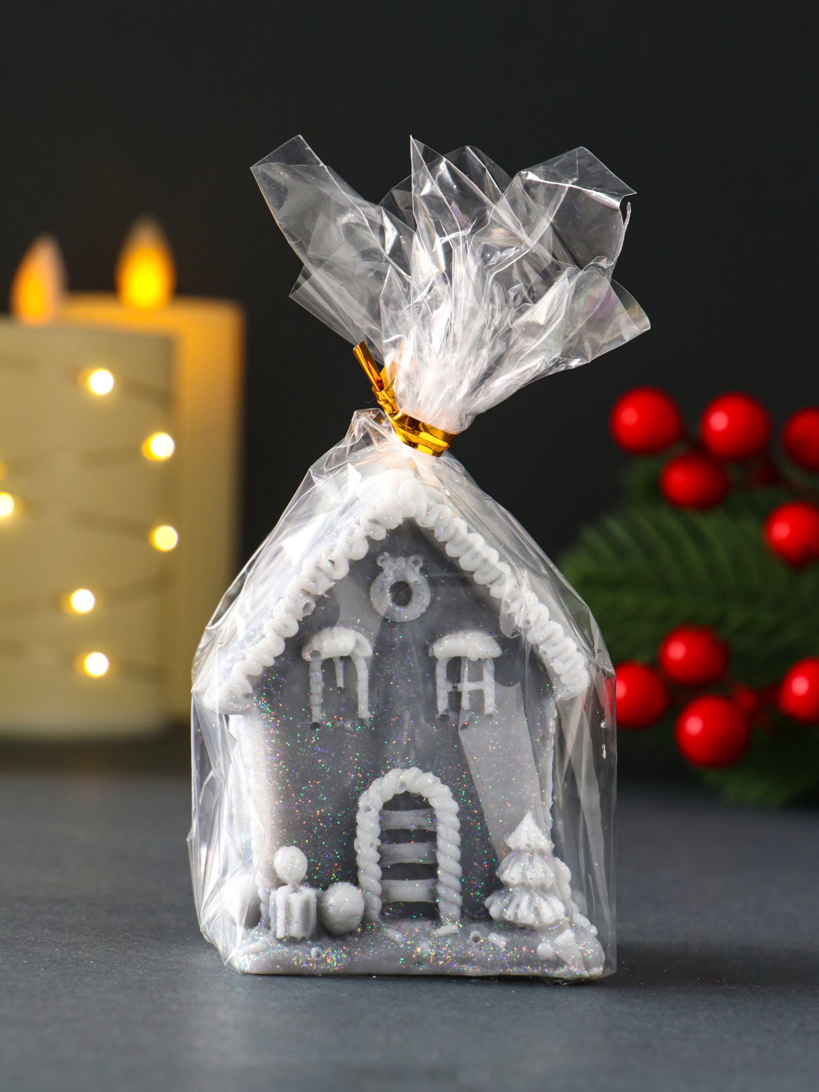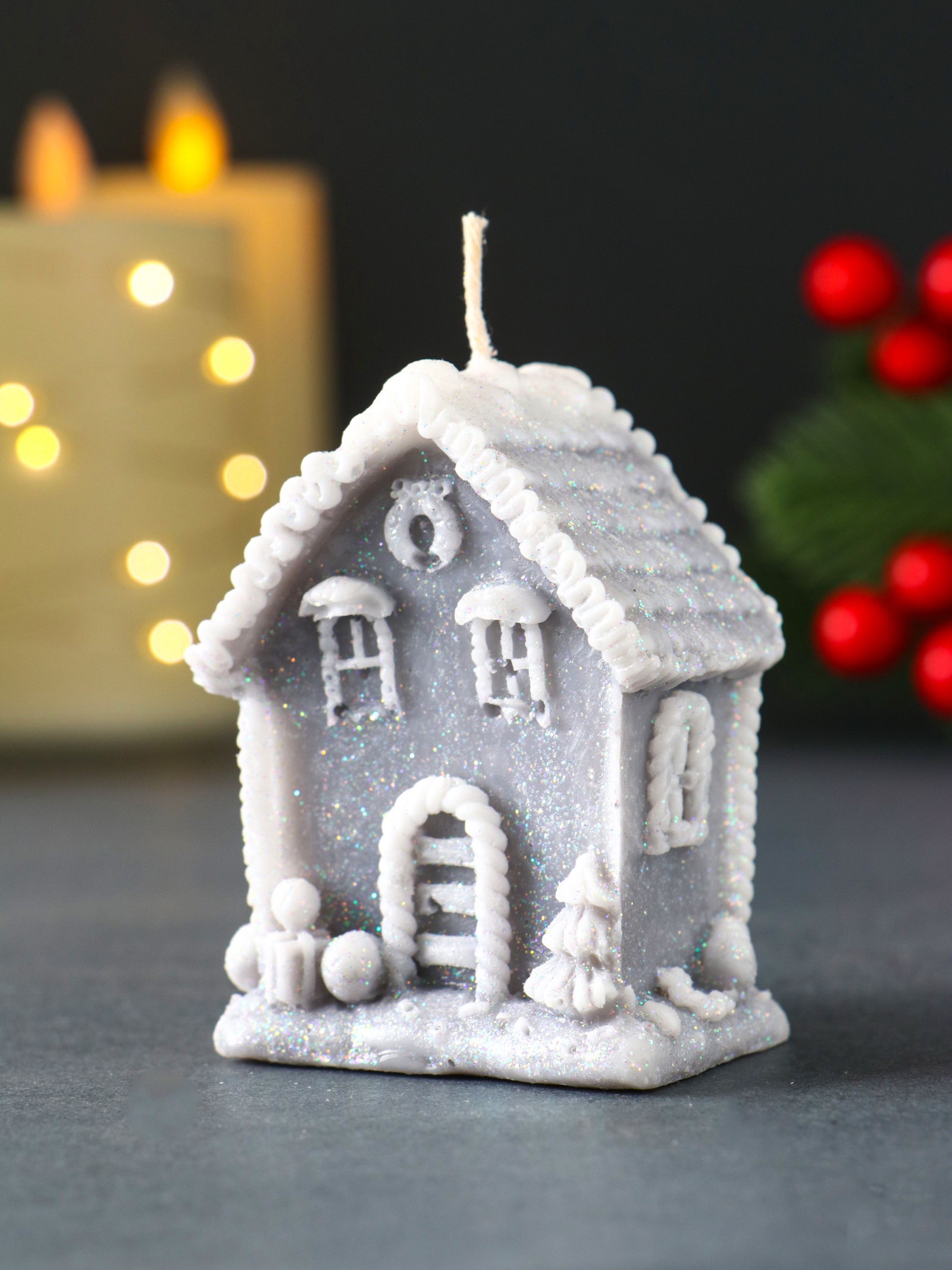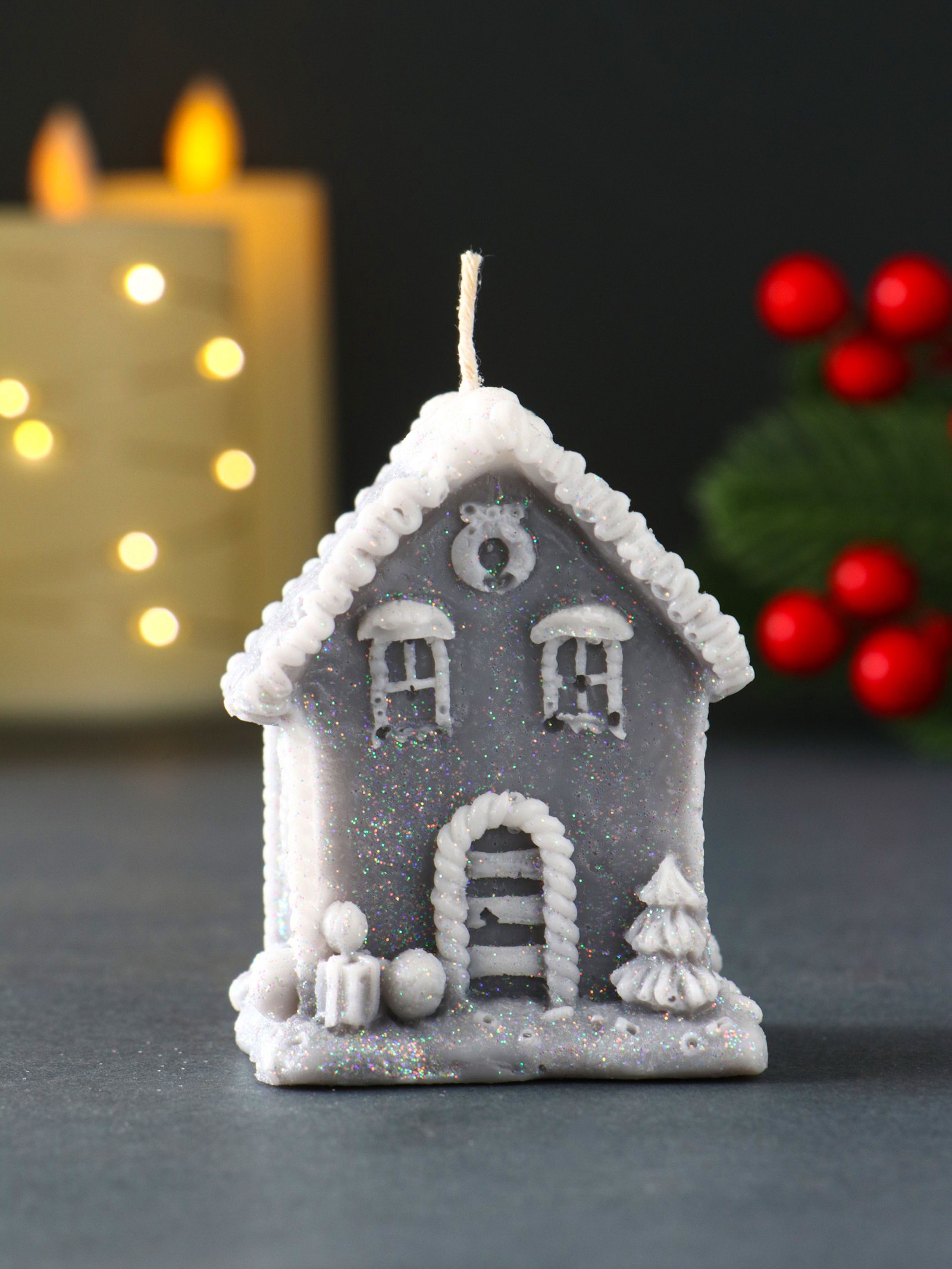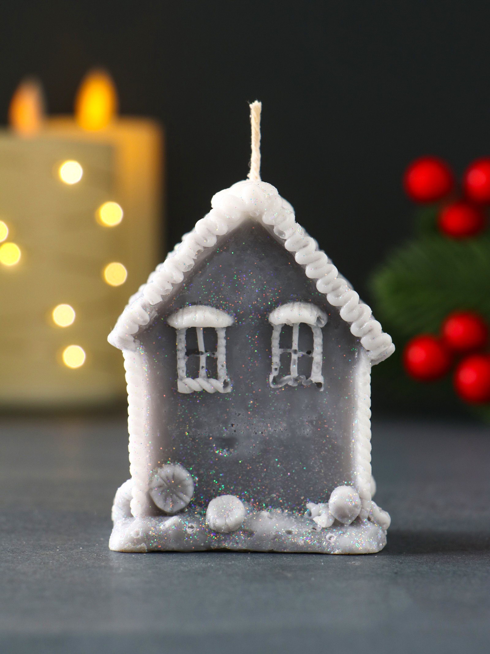 Свеча новогодняя "Домик с Ёлкой", 55x70 мм, серый, Россия
