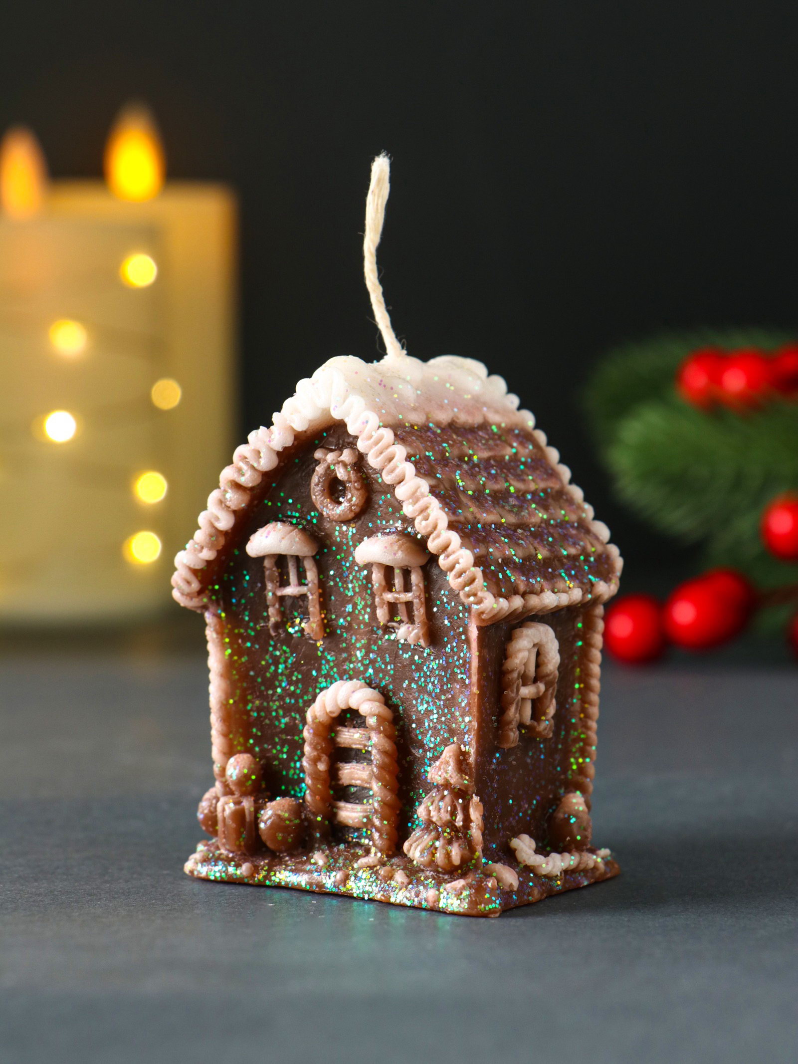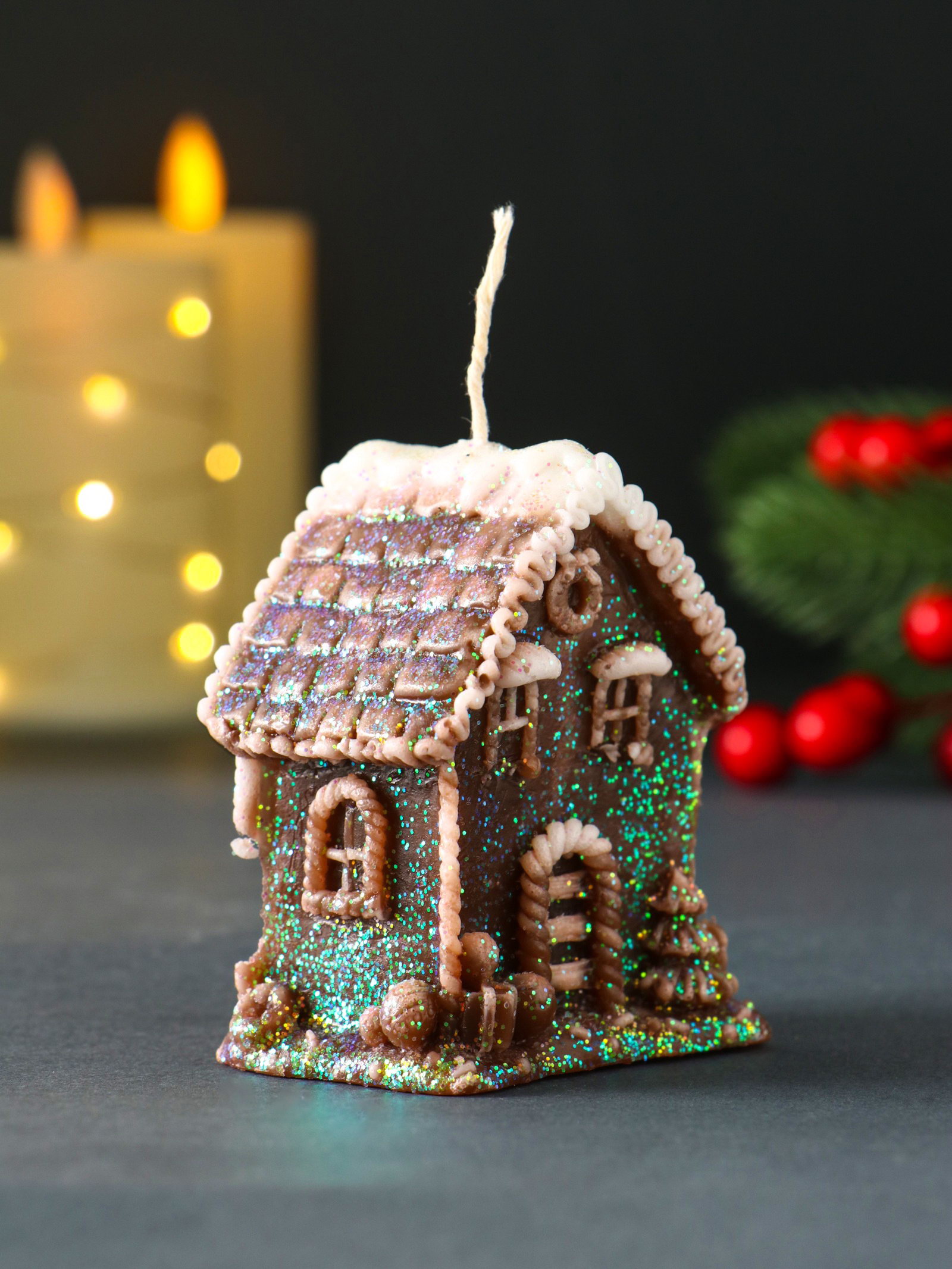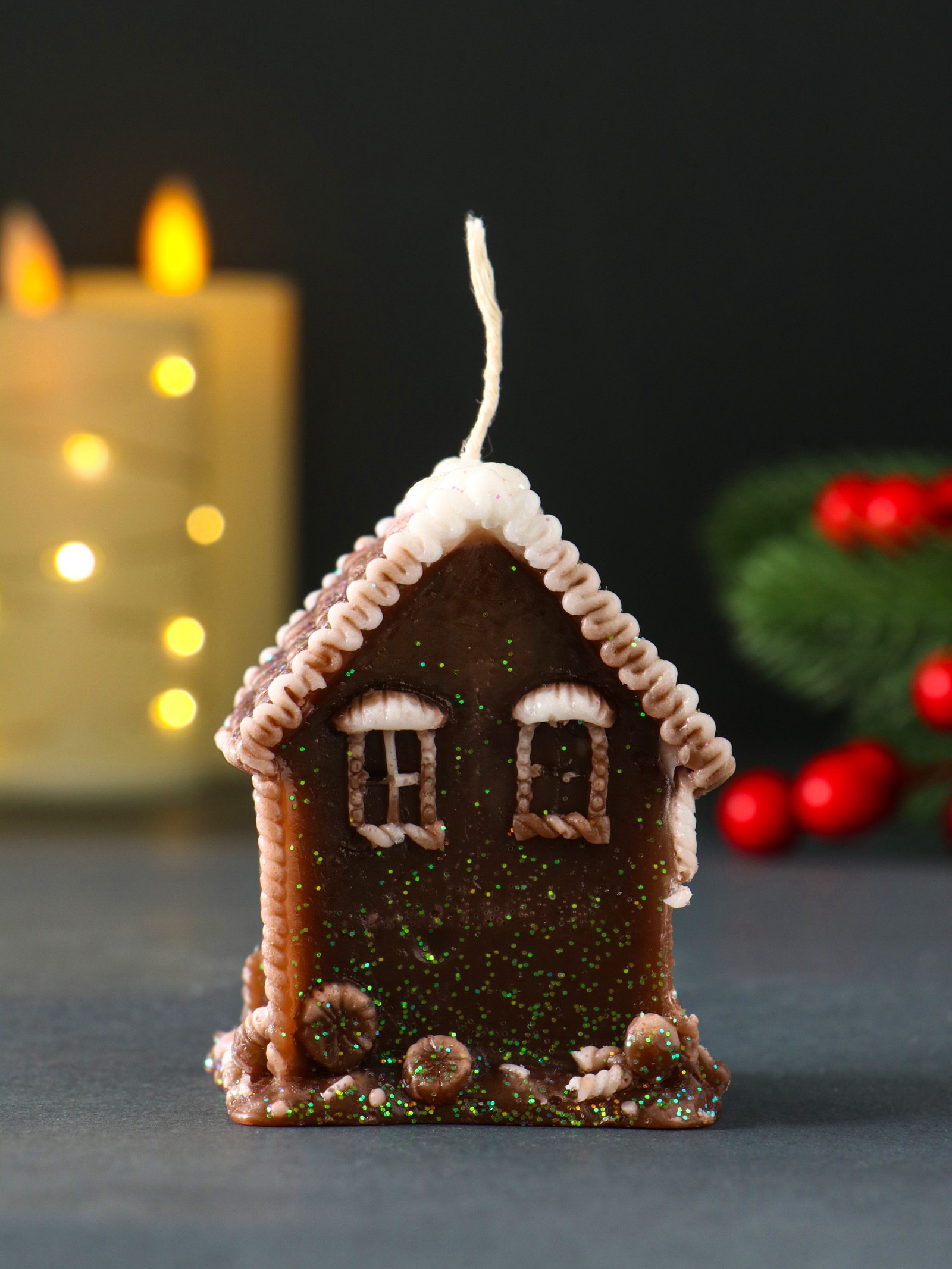 Свеча новогодняя декоративная "Домик с Ёлкой", 5.2x4x7 см, коричневый, Россия