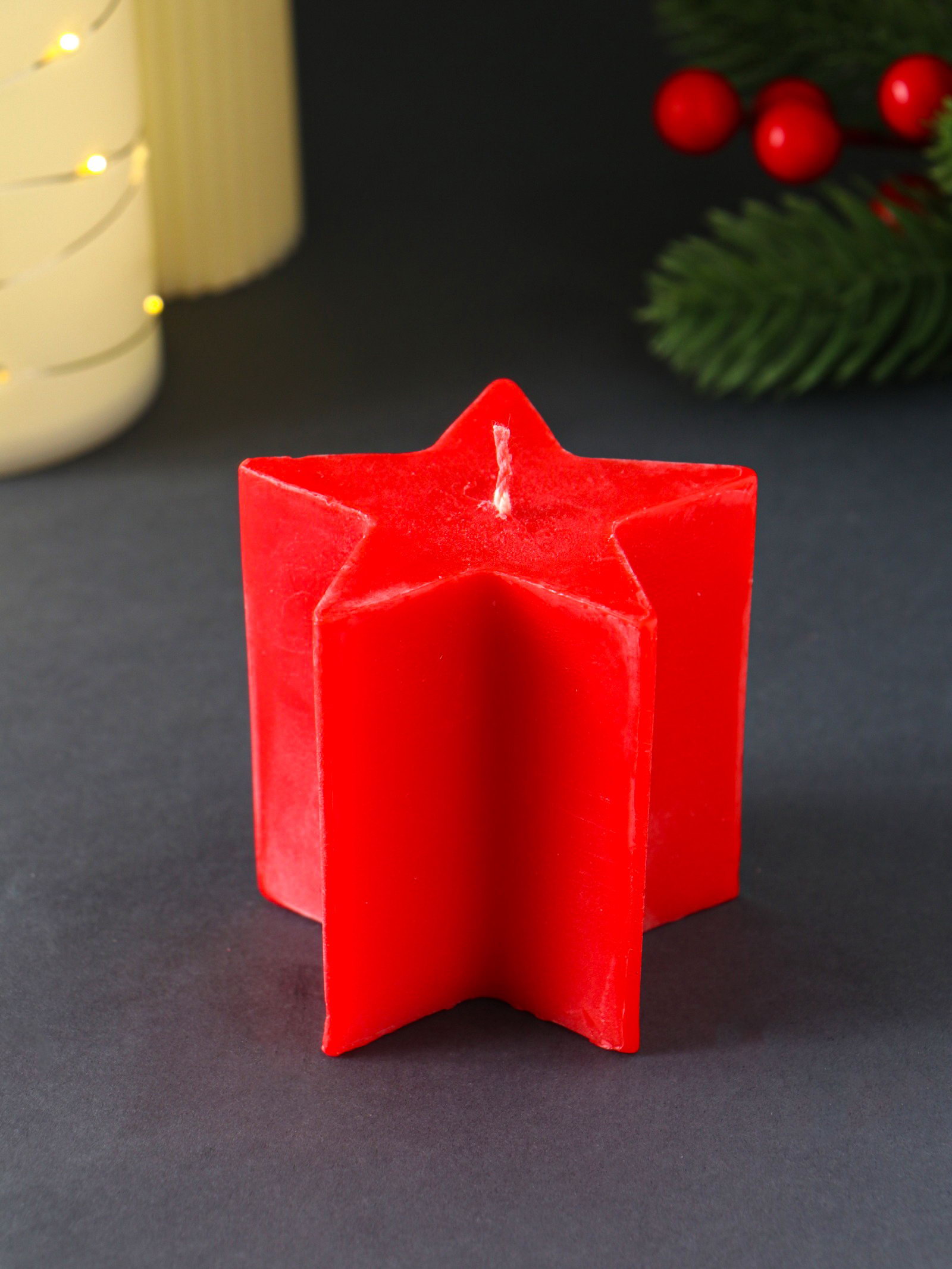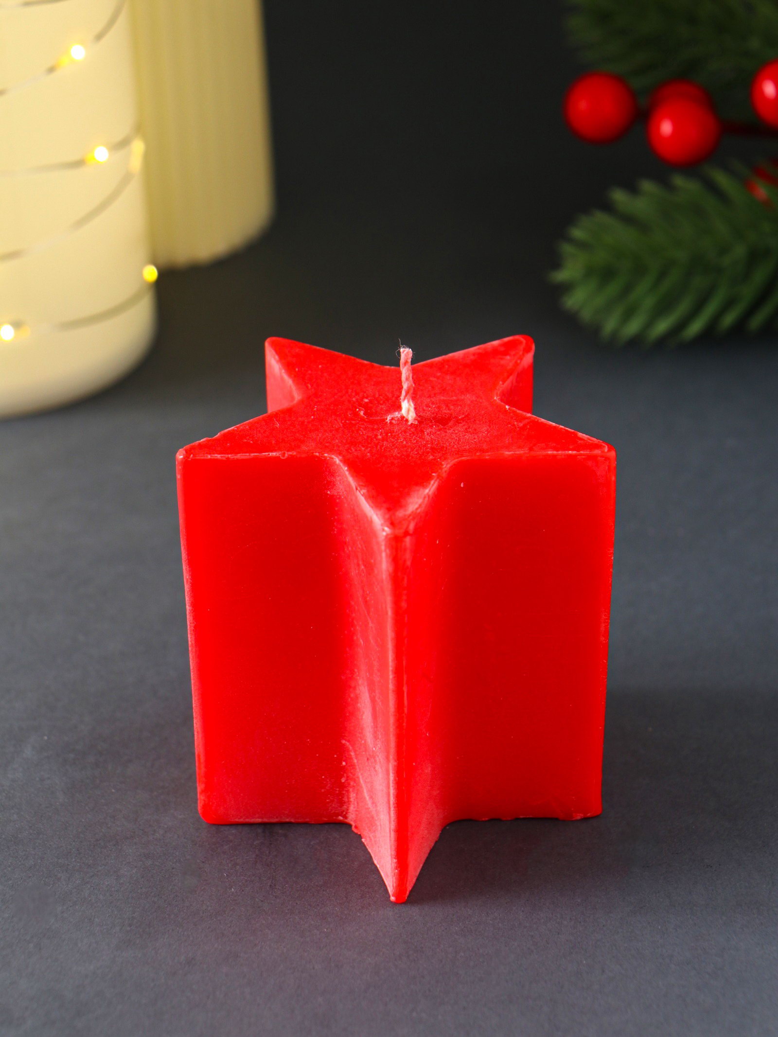 Свеча новогодняя "Большая звезда", 70x70x70 мм, красная, Россия