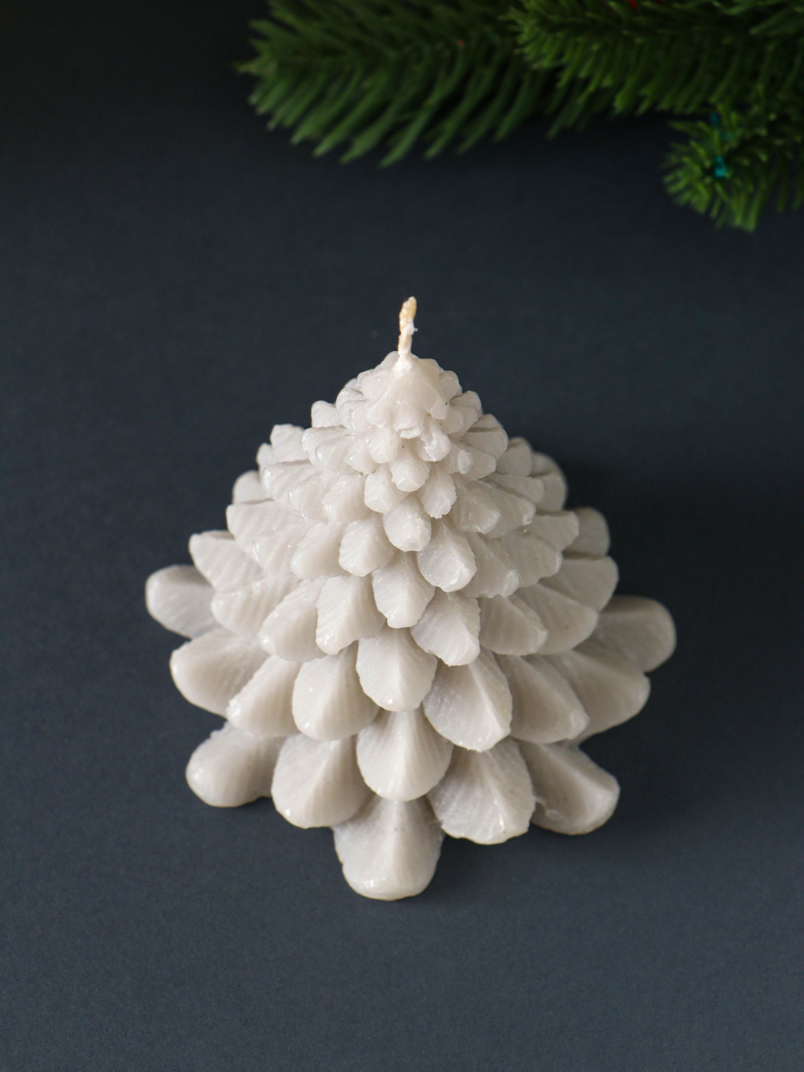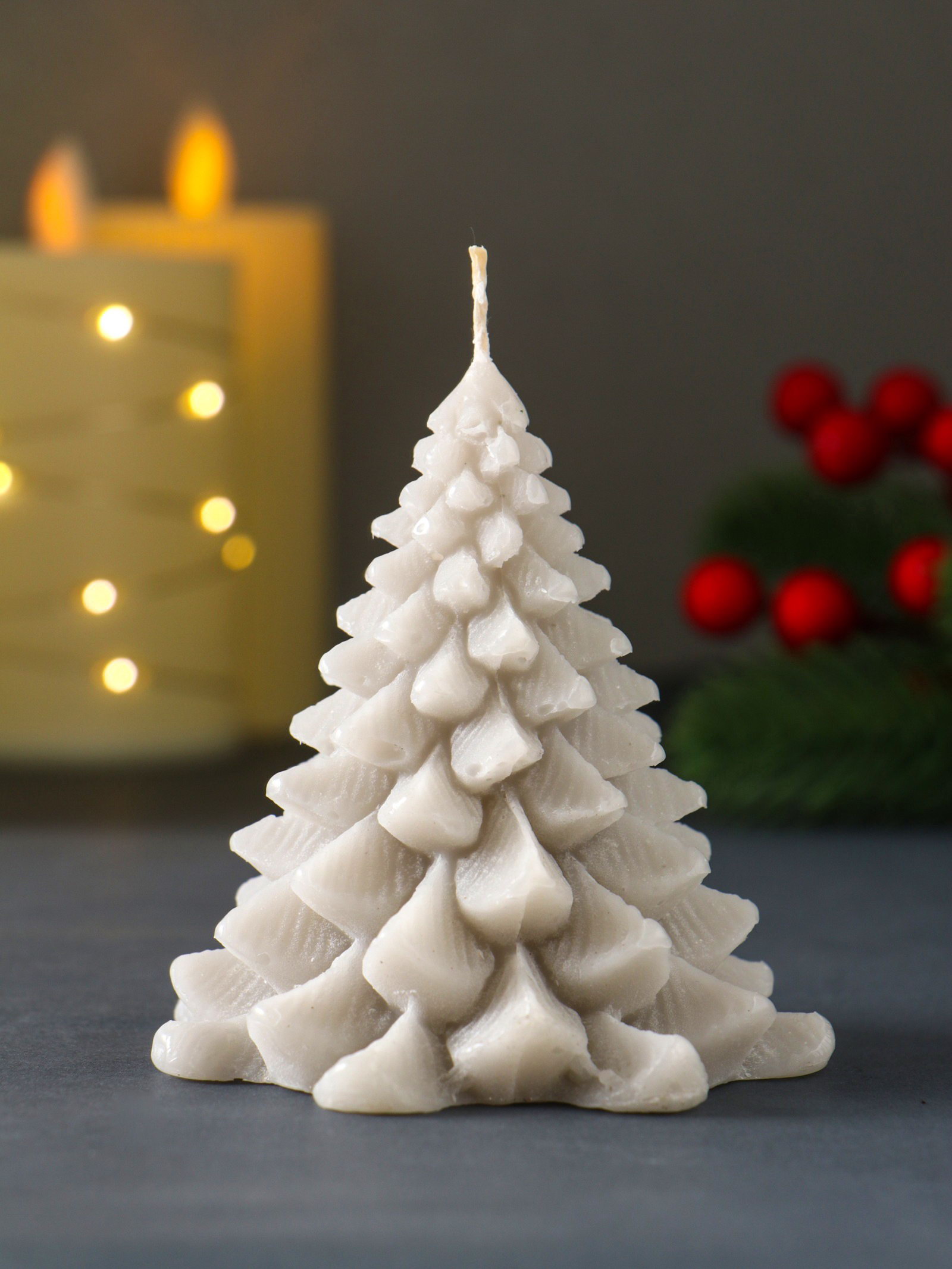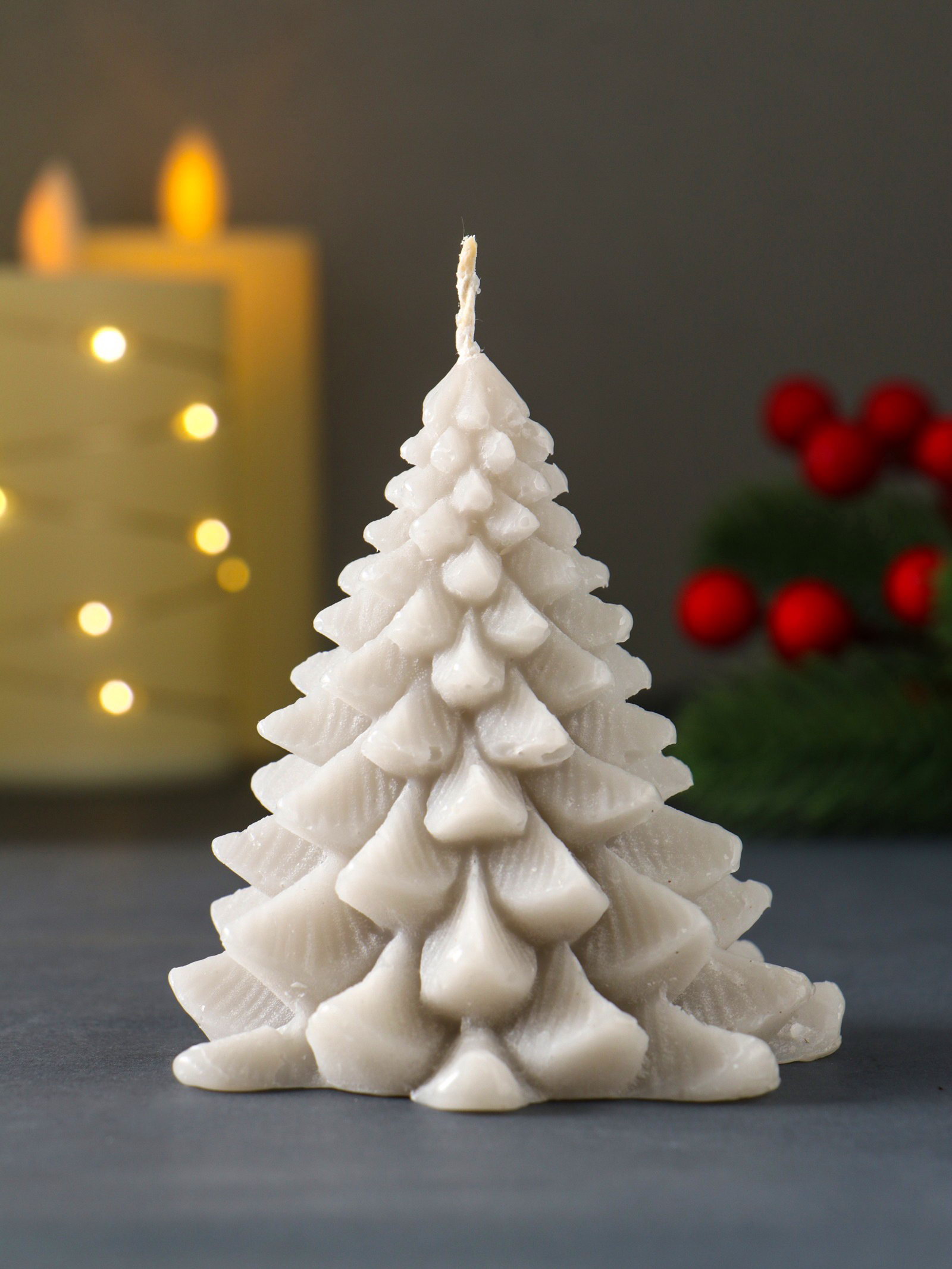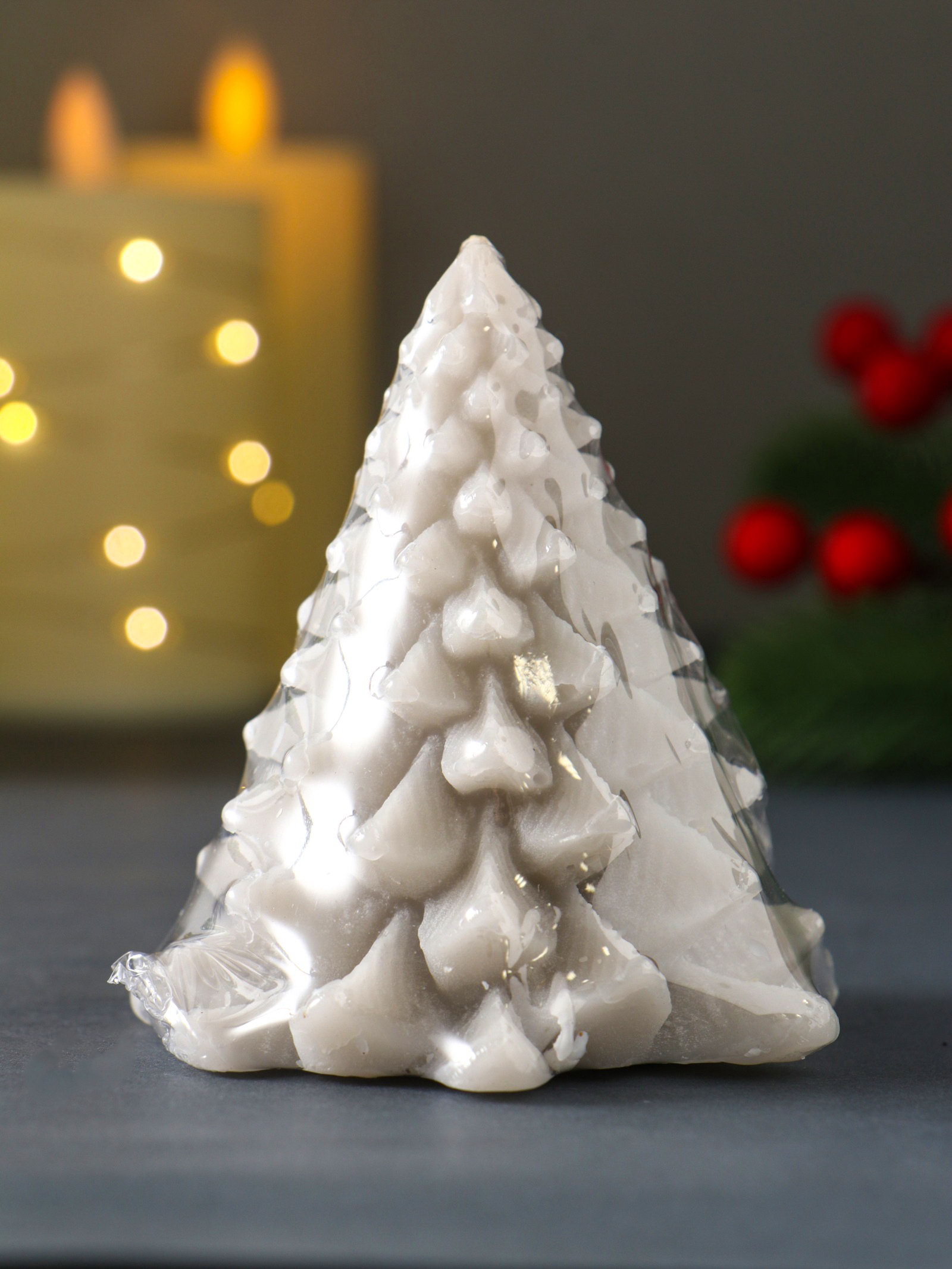 Свеча новогодняя "Ель пушистая", 80x80x90 мм, серебро, Россия