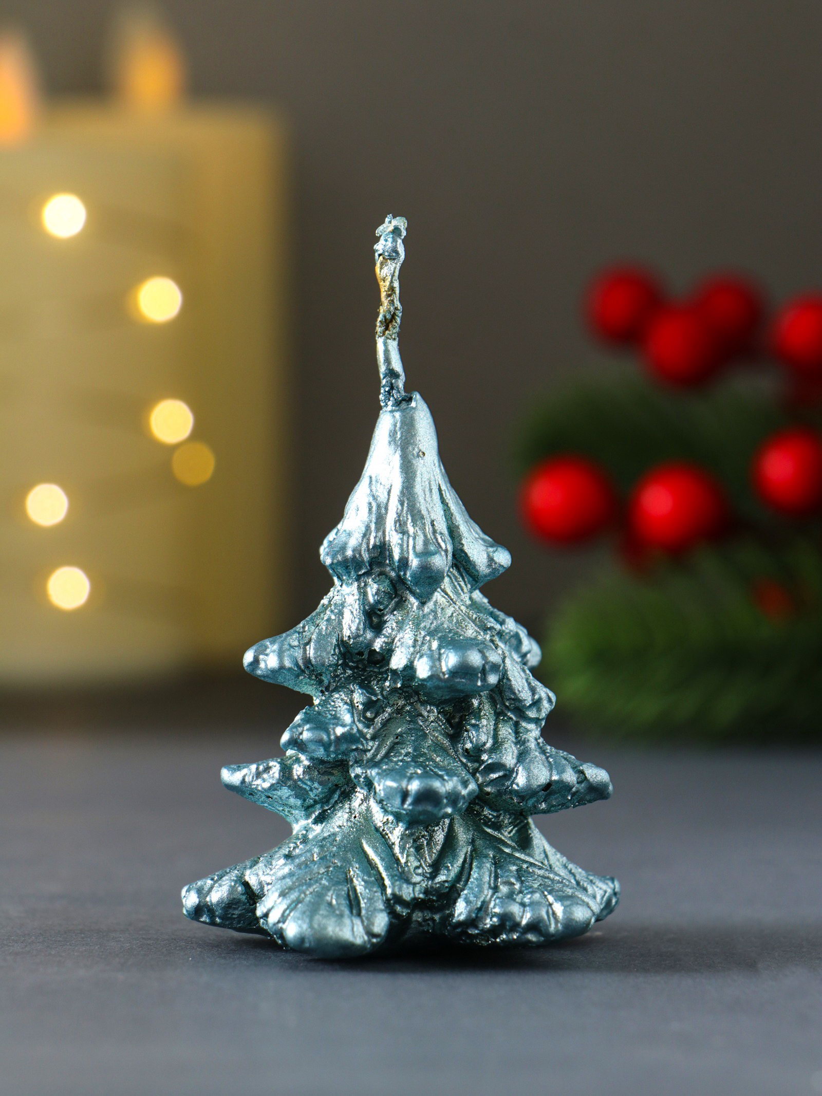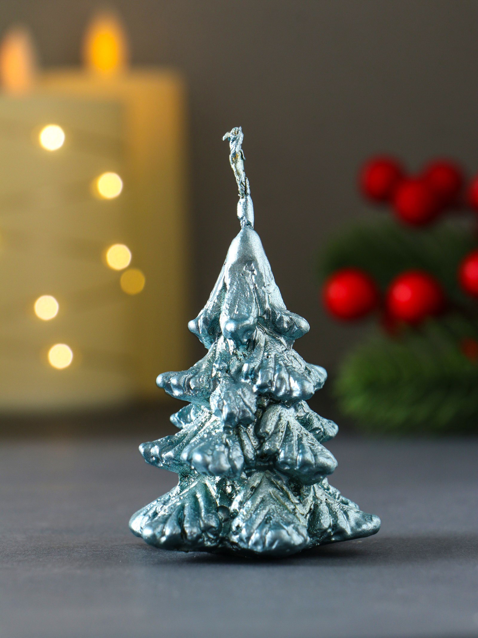 Свеча новогодняя "Ёлочка", 70x50 мм, лак, голубая, Россия