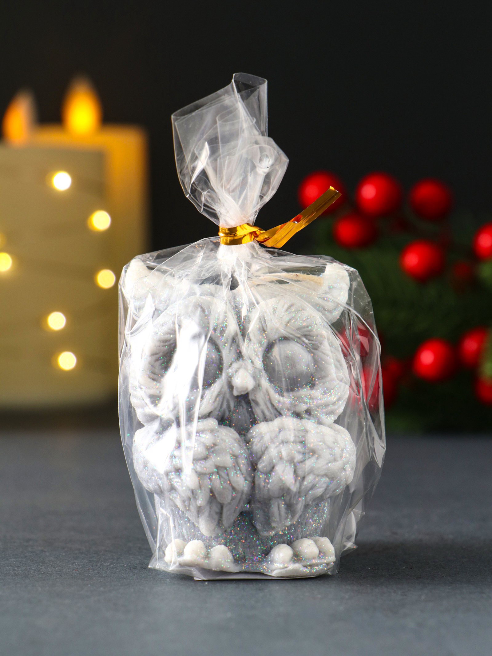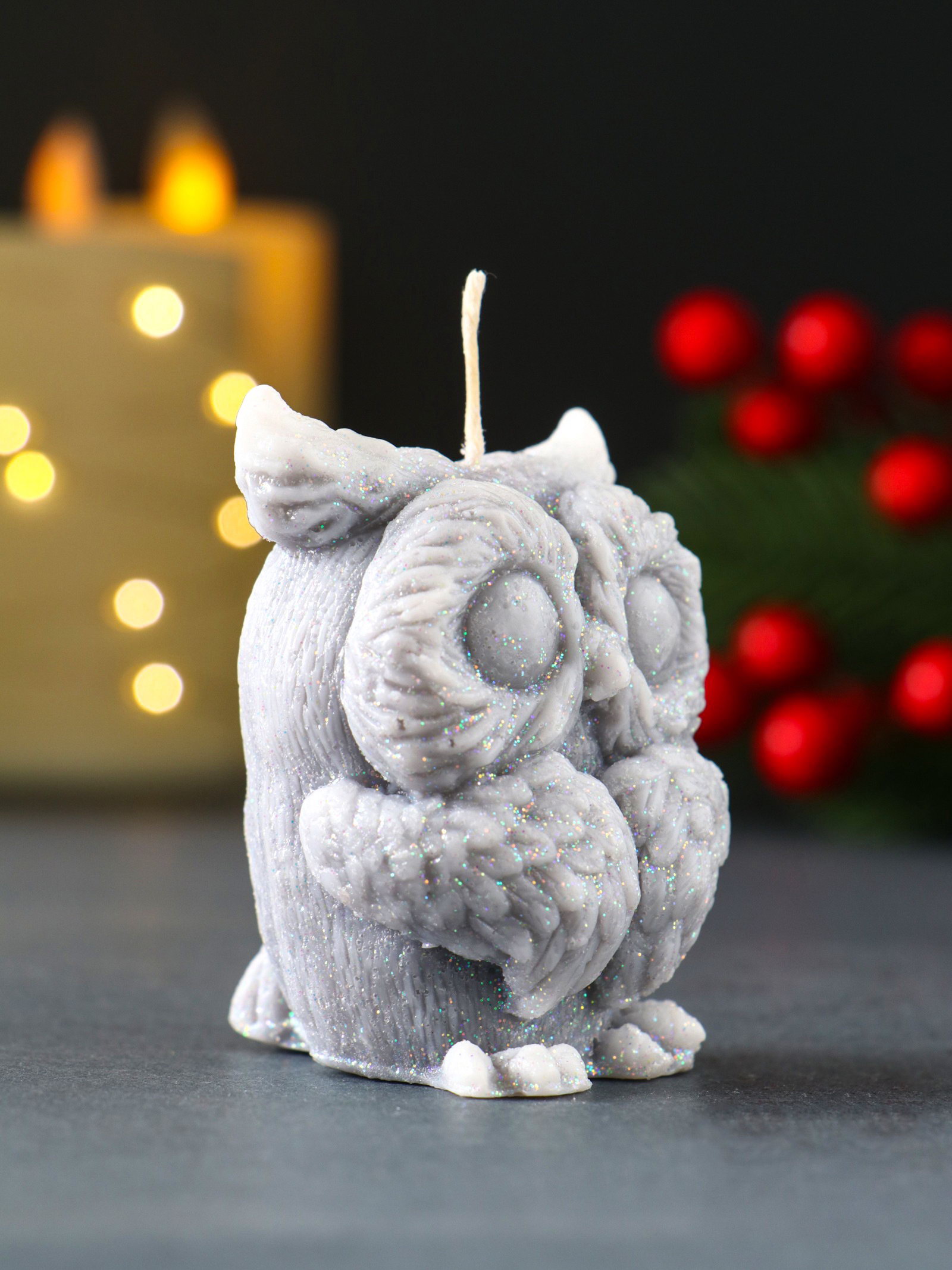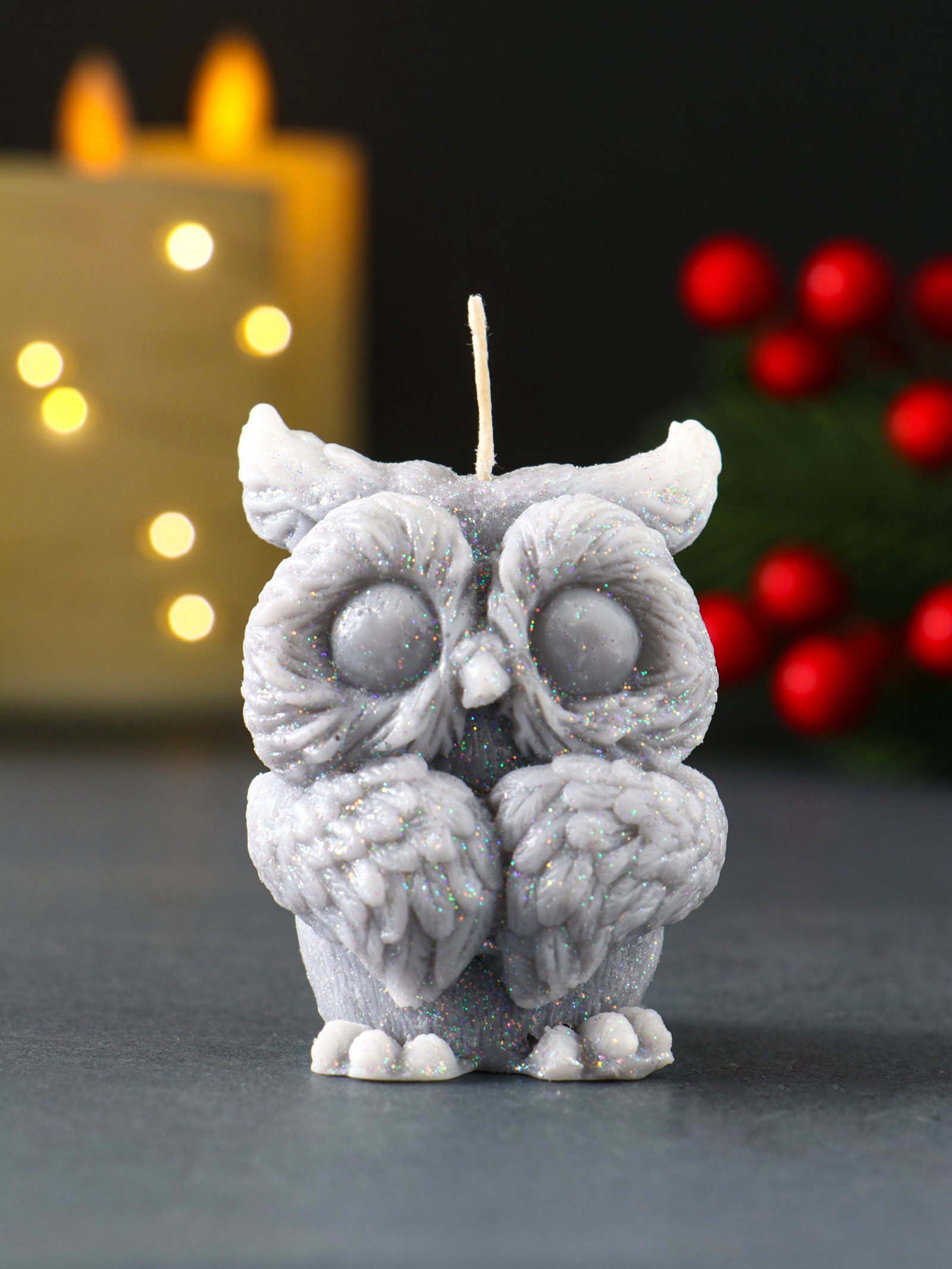 Свеча декоративная "Филюшка новогодняя", 50x65 мм, серый, Россия