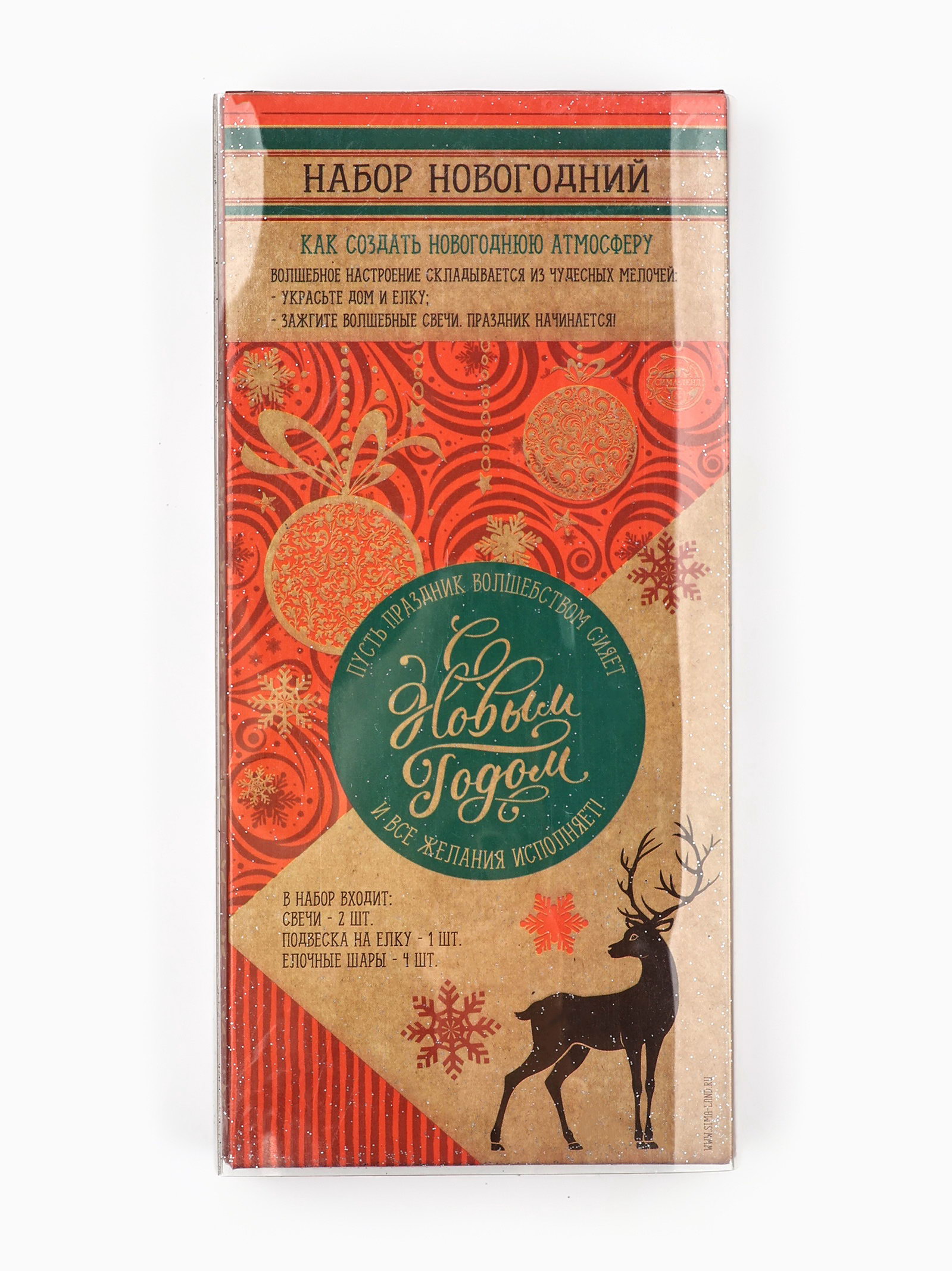Подарочный набор "Удачного Нового года!": свечи восковые, украшение на ёлку, 3x10x20.5 см., Сима-ленд, Китай