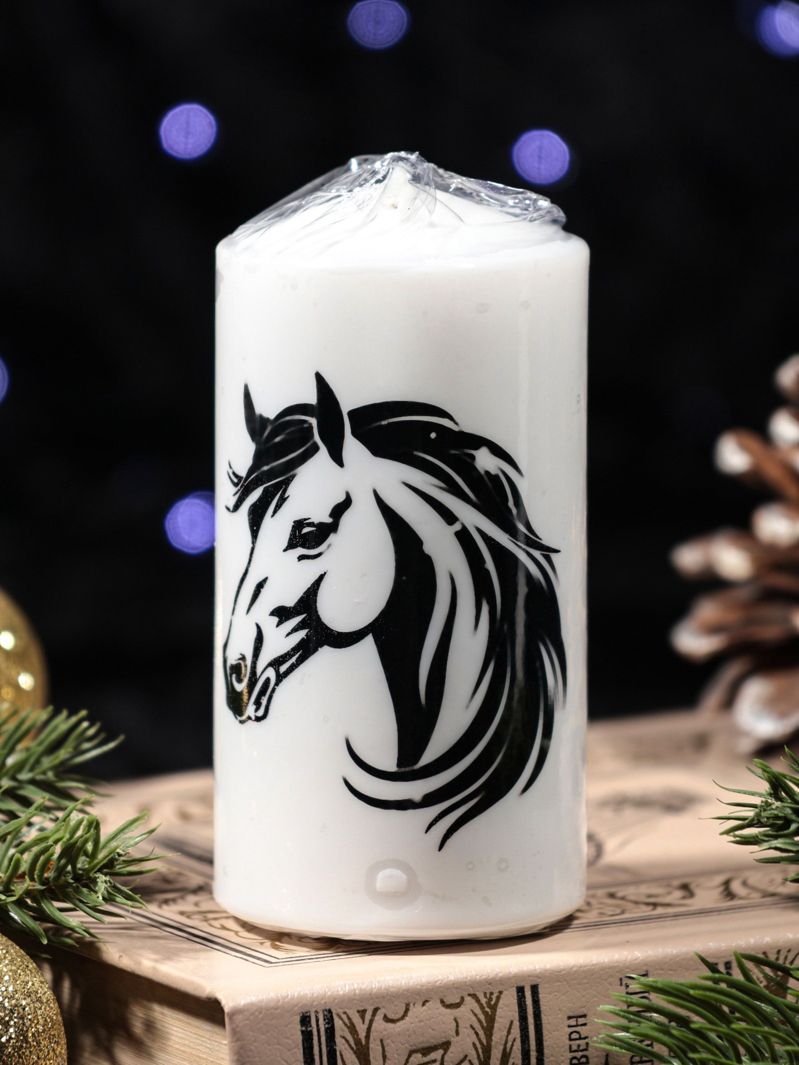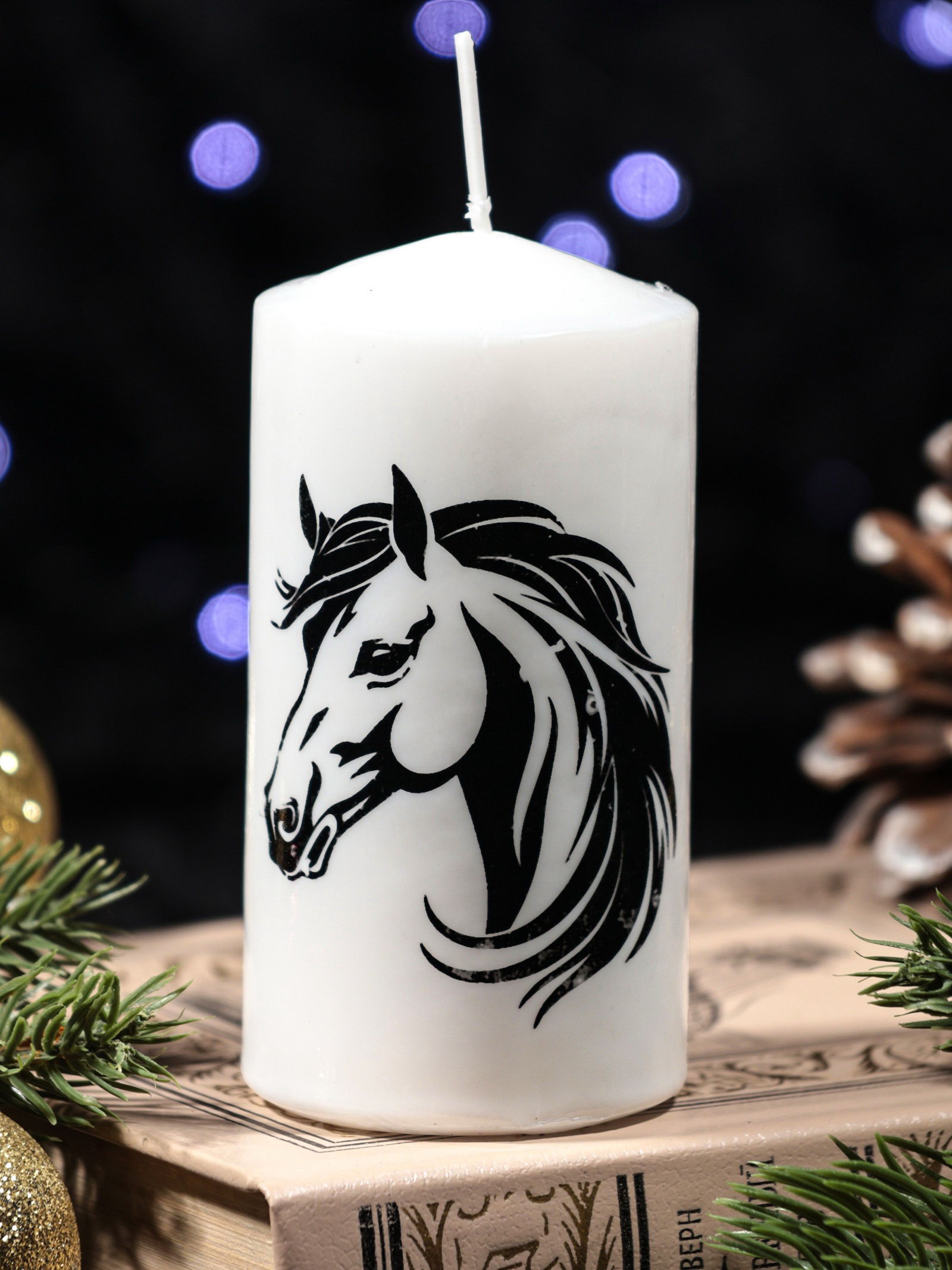 Свеча-цилиндр с накаткой "Лошадь в профиль", 50x100 мм, белая, Россия