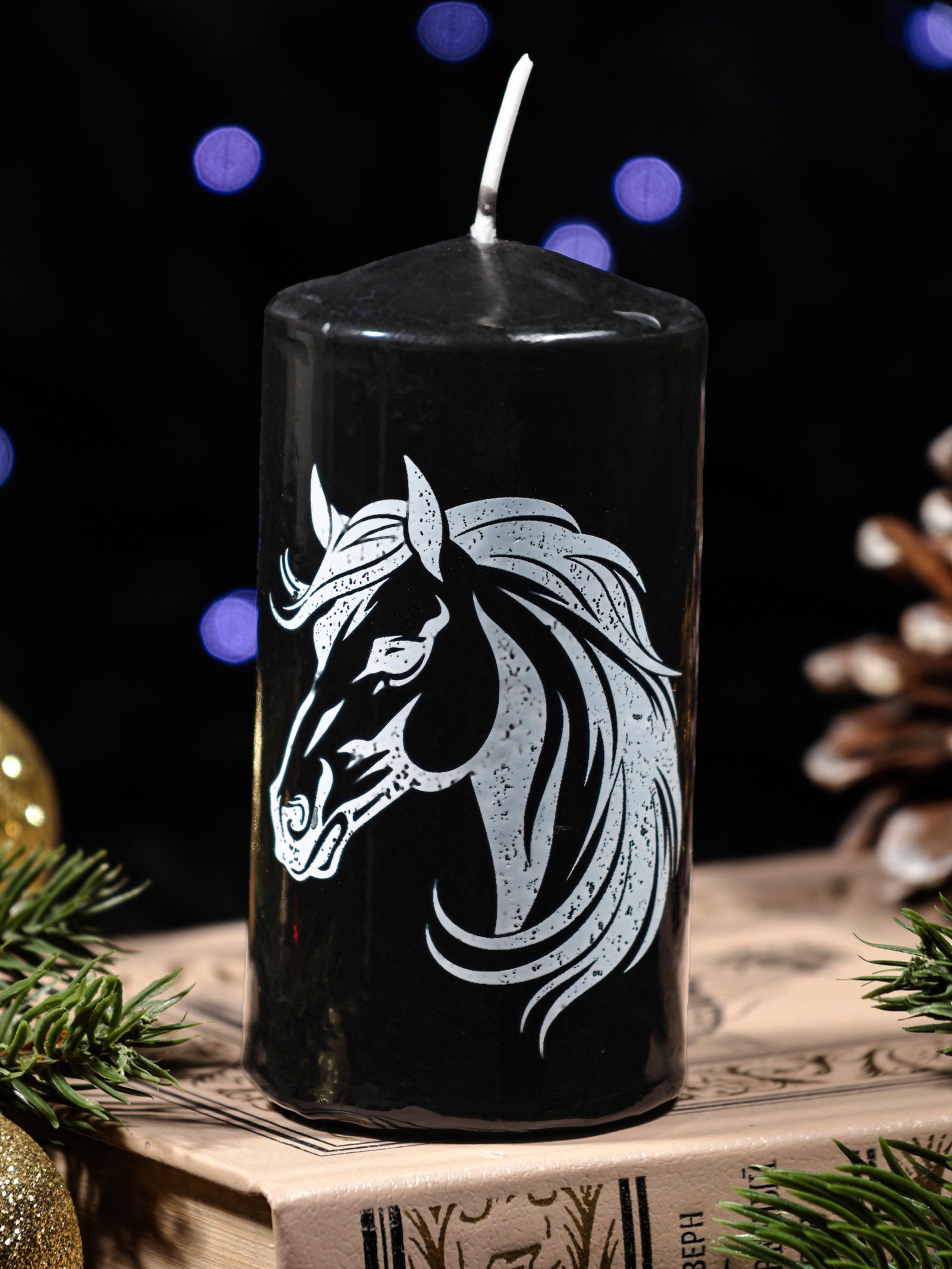Свеча-цилиндр с накаткой "Лошадь в профиль", 50x100 мм, чёрная, Россия