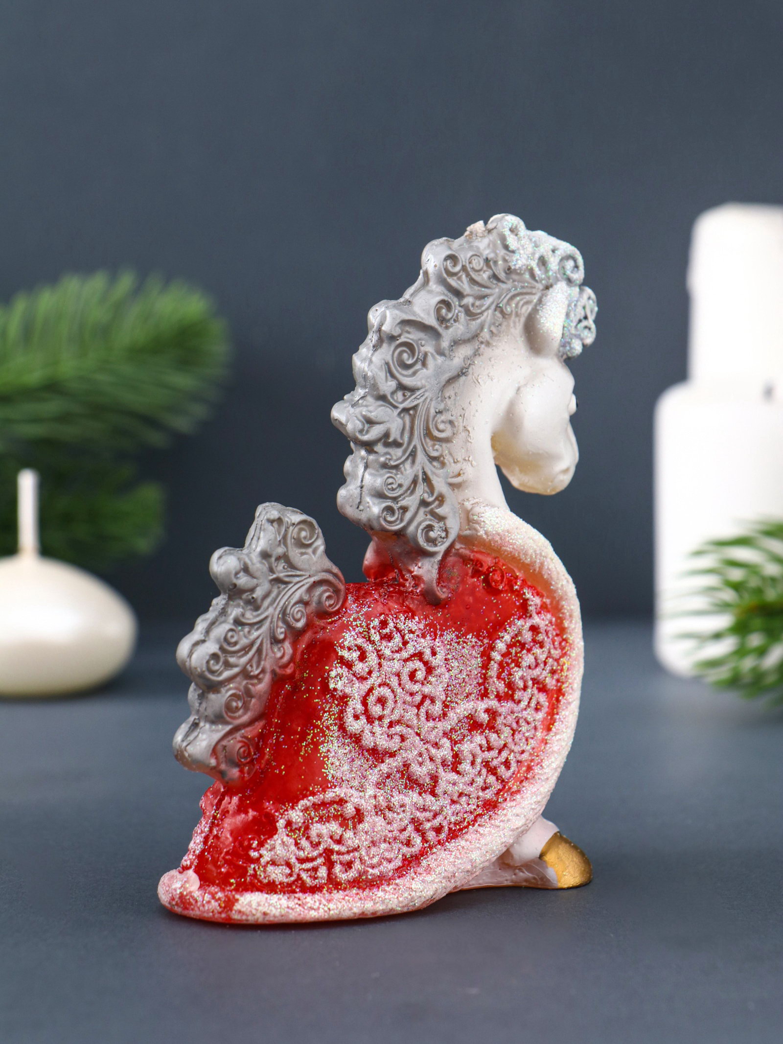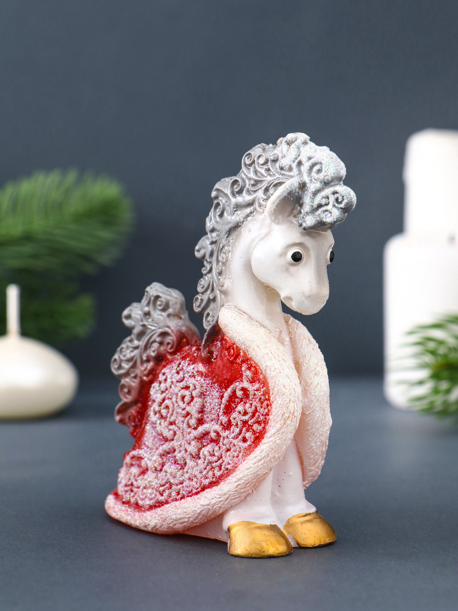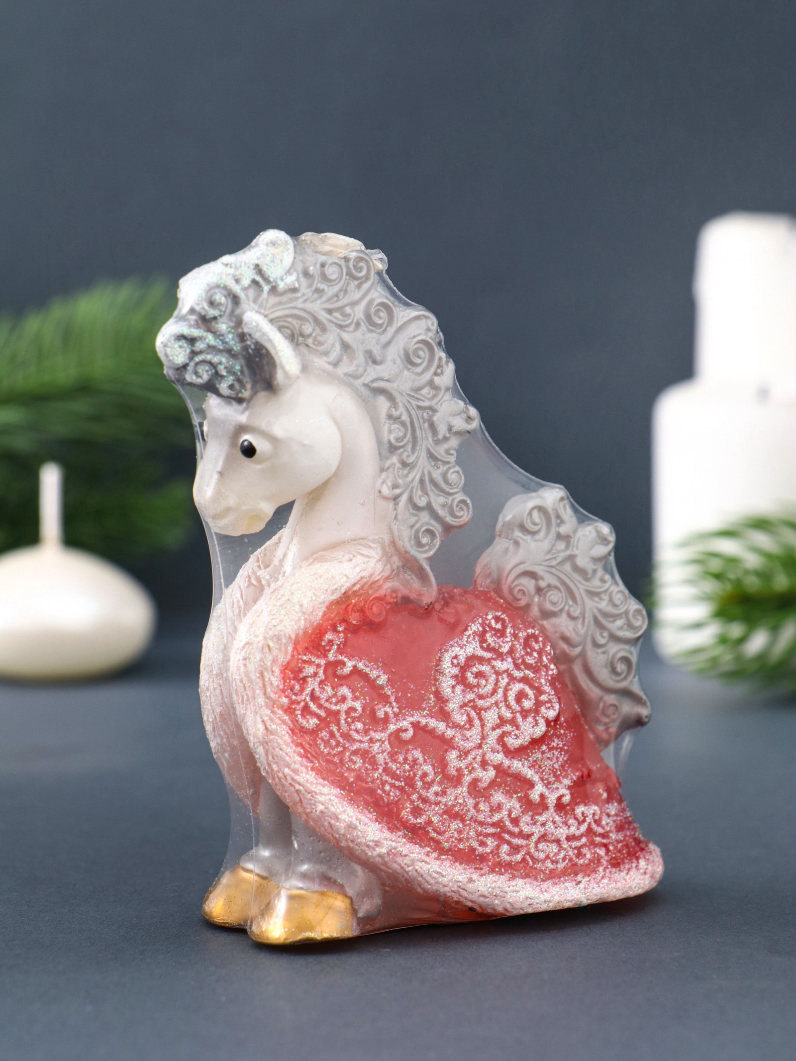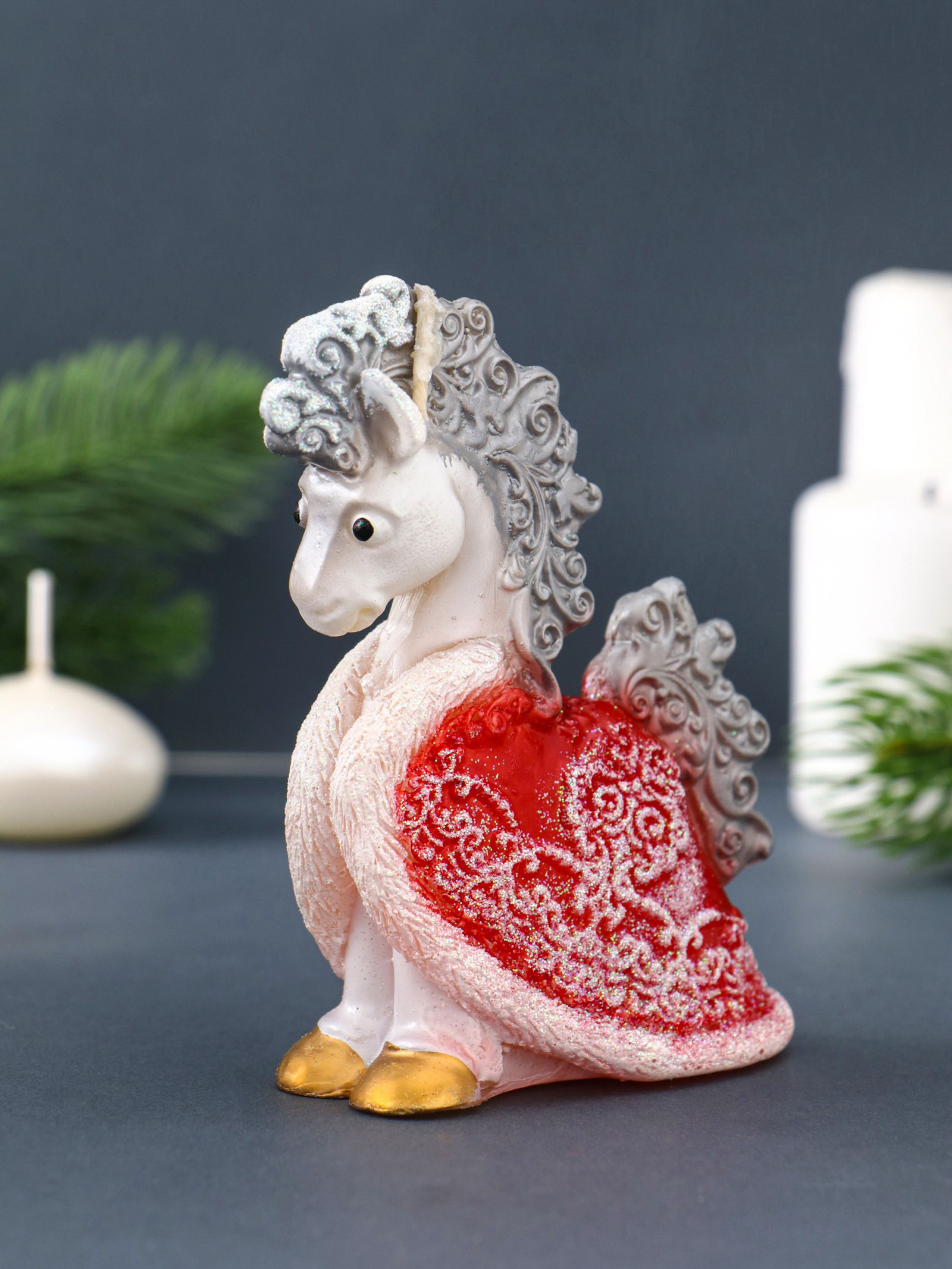 Свеча декоративная "Лошадка с попоной" 8.5x4x11 см, серебро, Россия