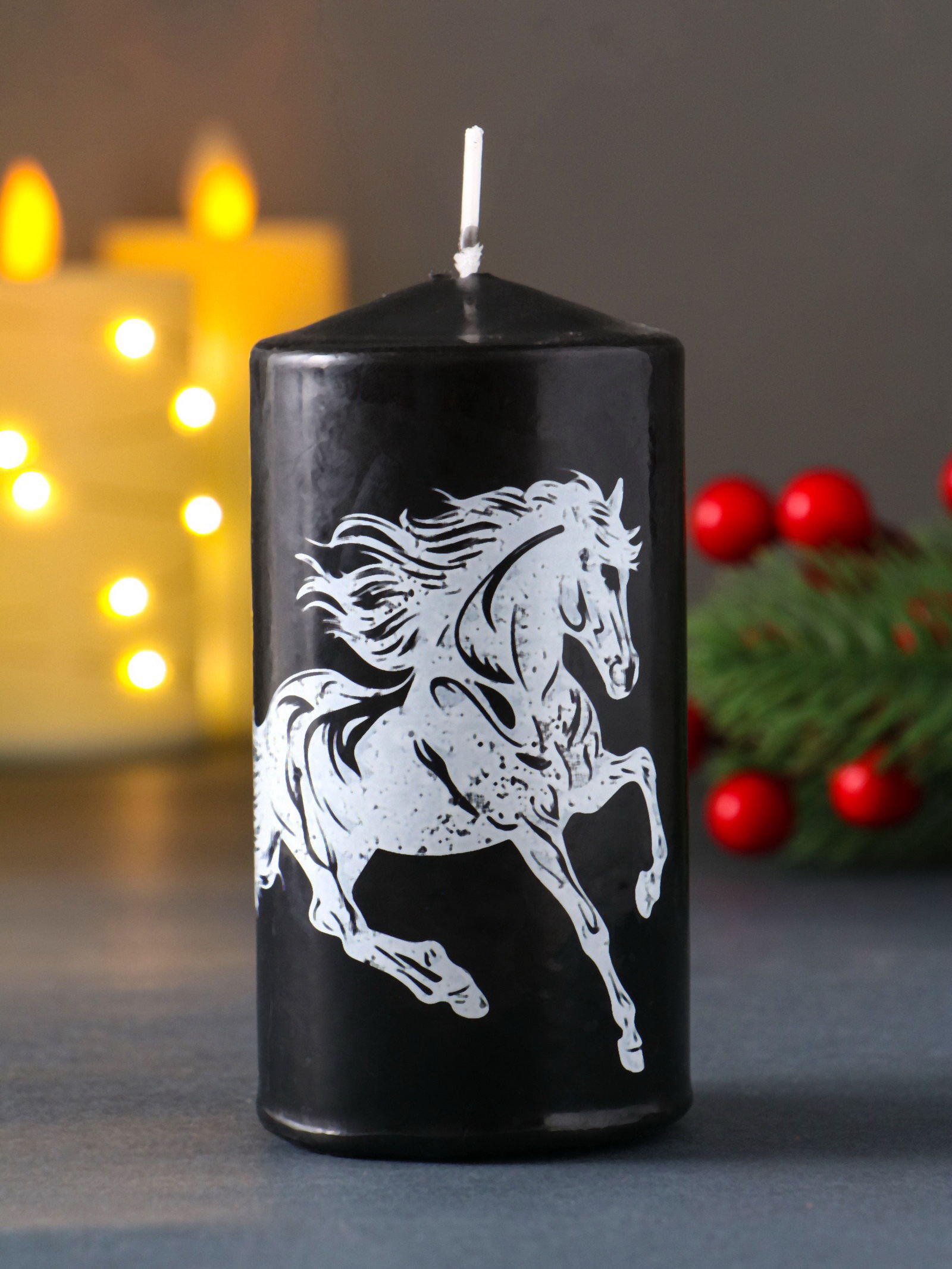 Свеча цилиенд "Символ года: Конь", 50x100 мм, с накаткой, чёрная, Россия