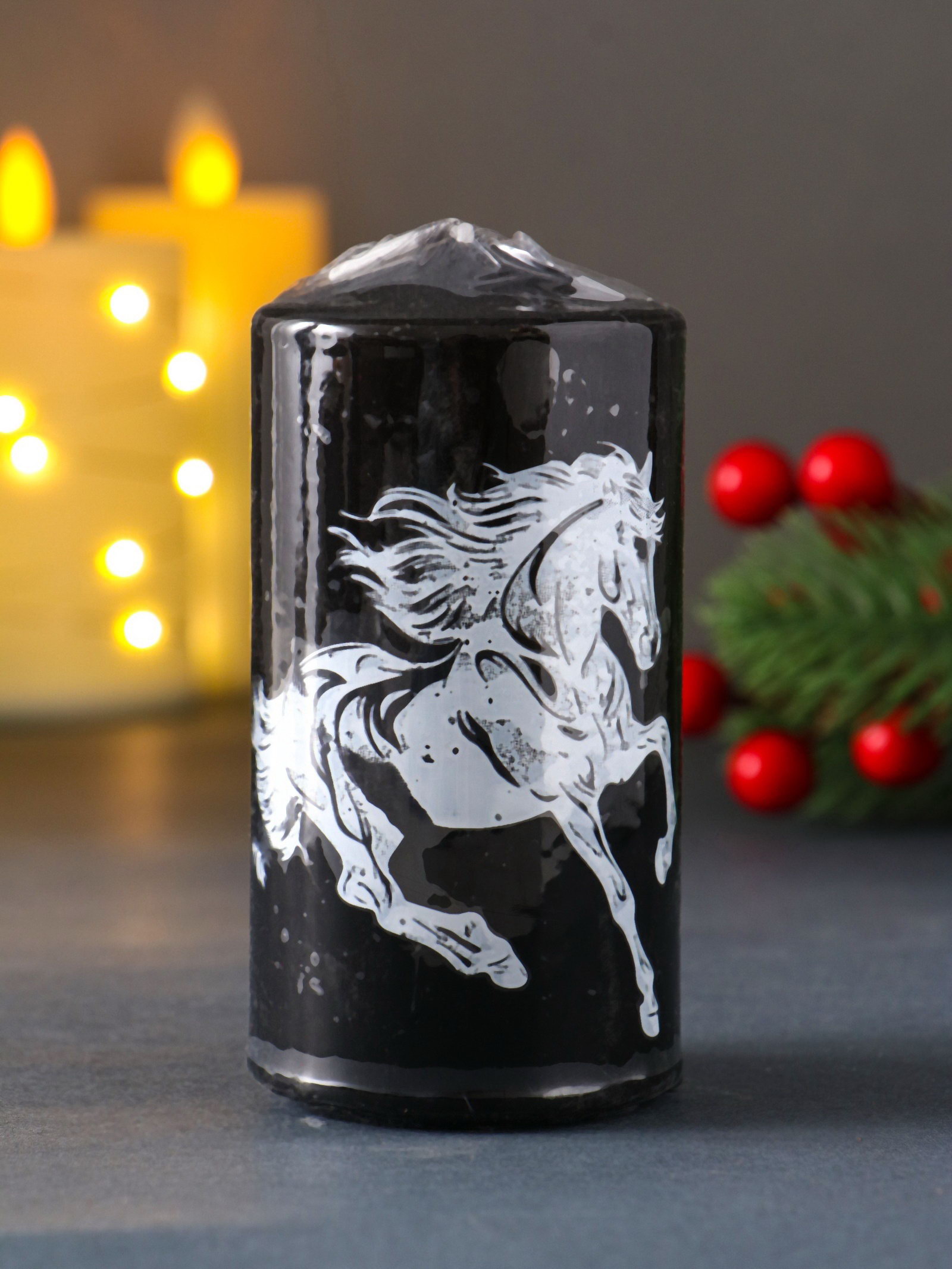 Свеча цилиндр "Символ года: Конь", 50x100 мм, с накаткой, чёрная, Россия