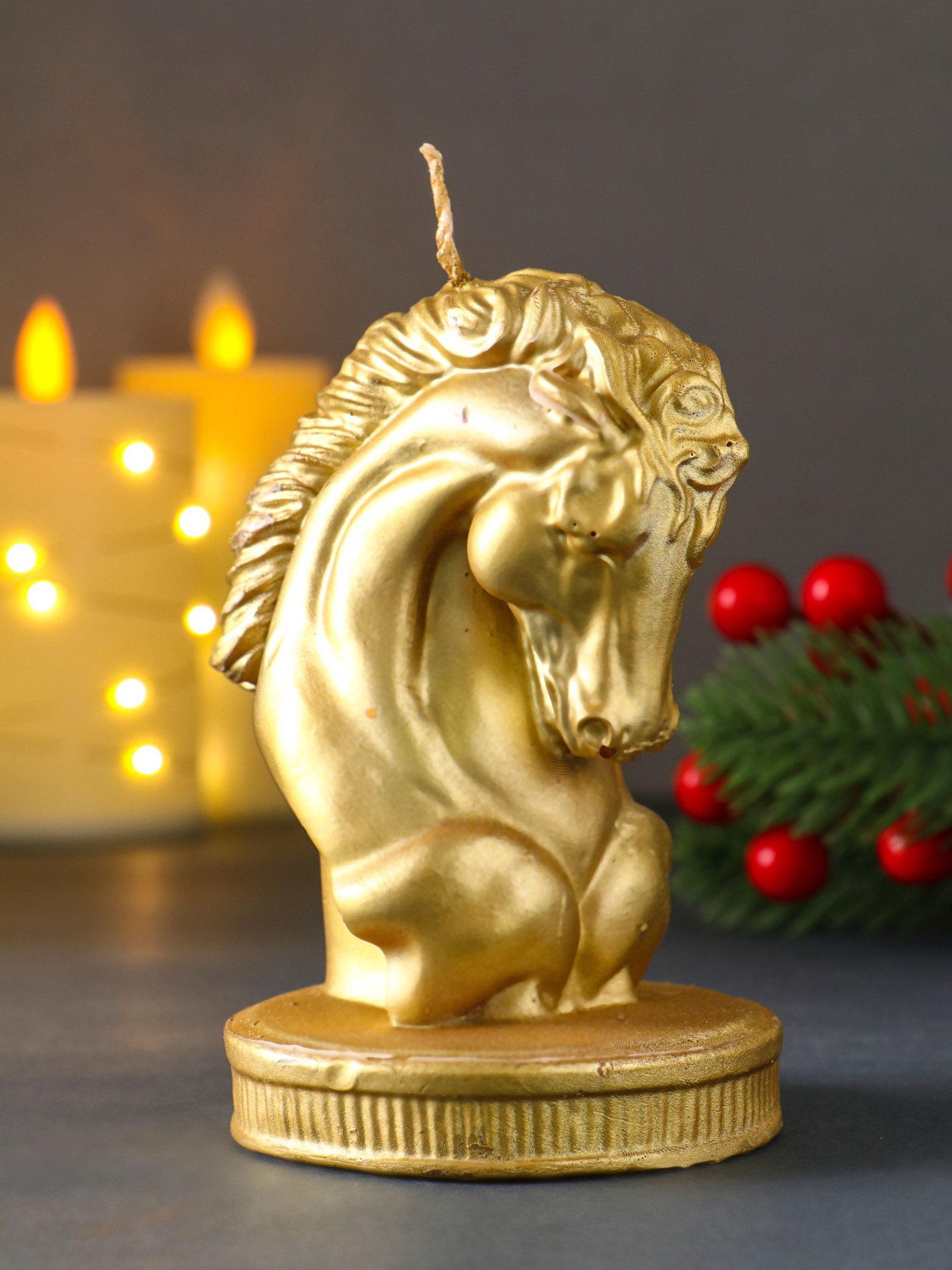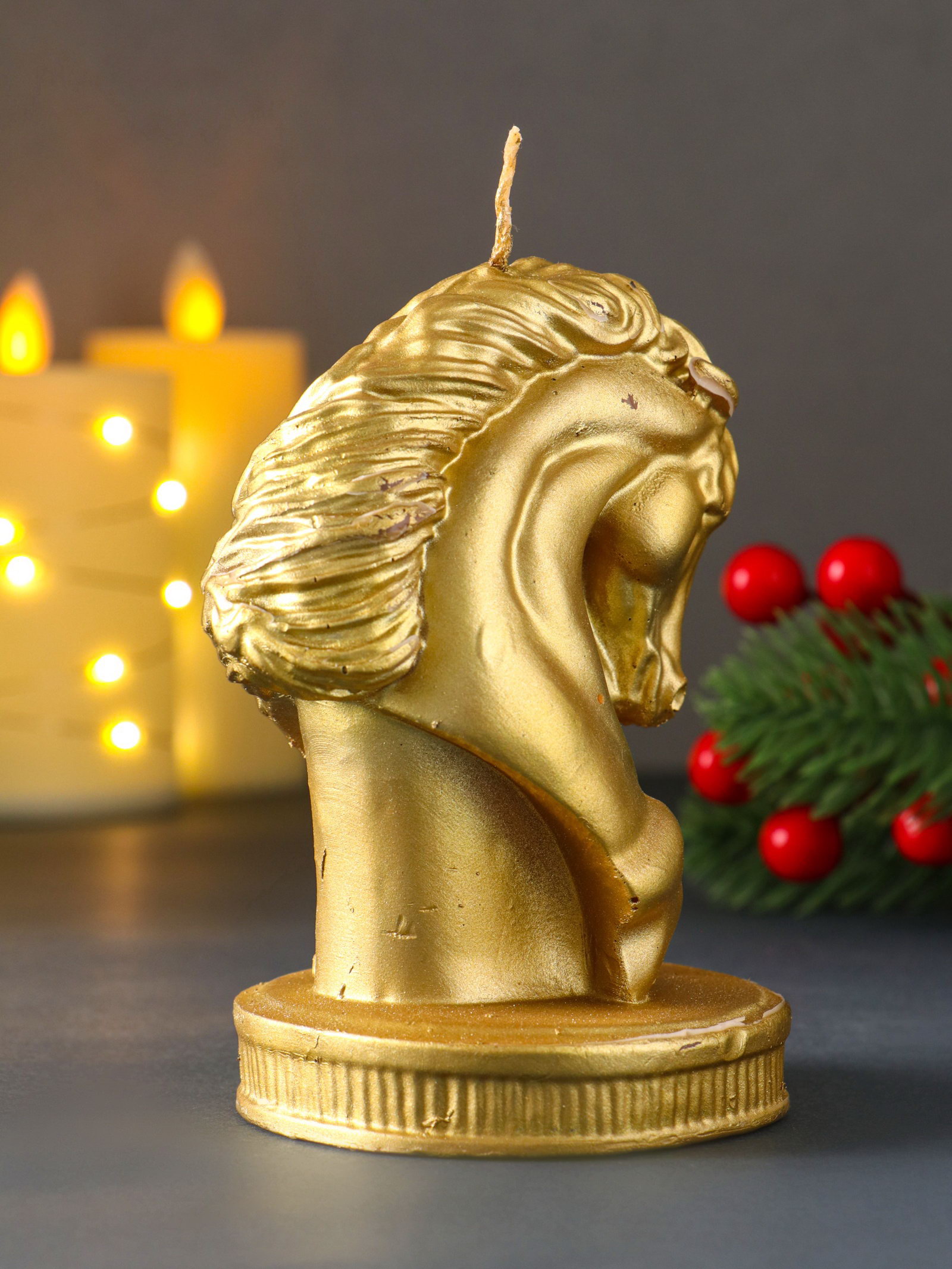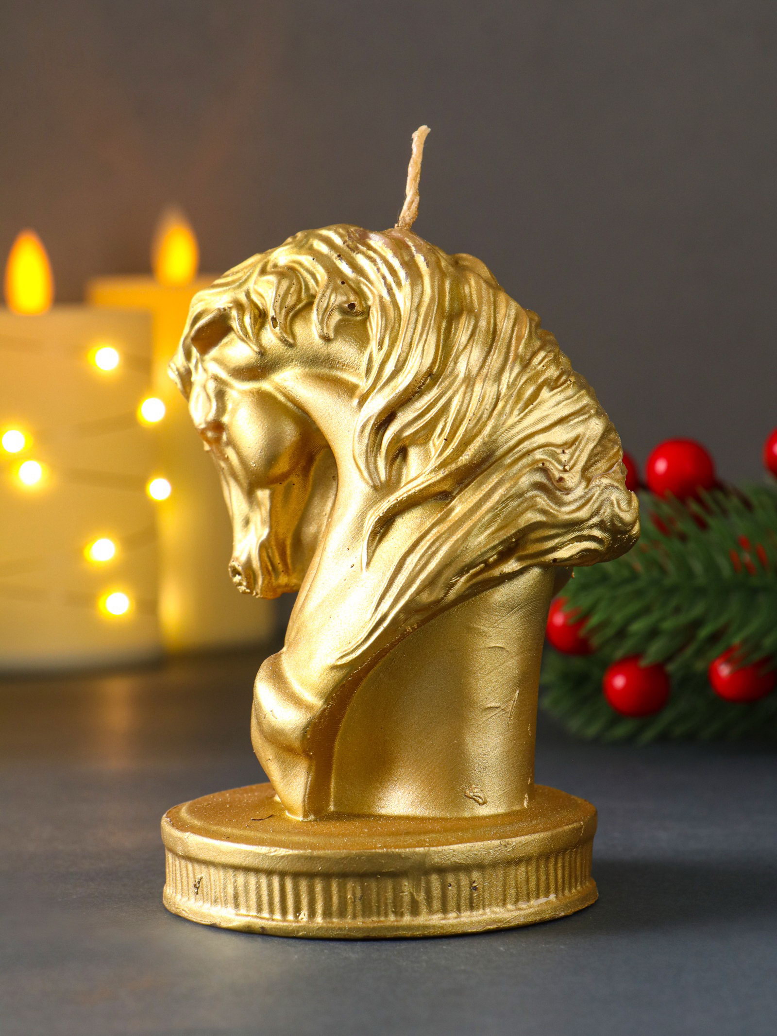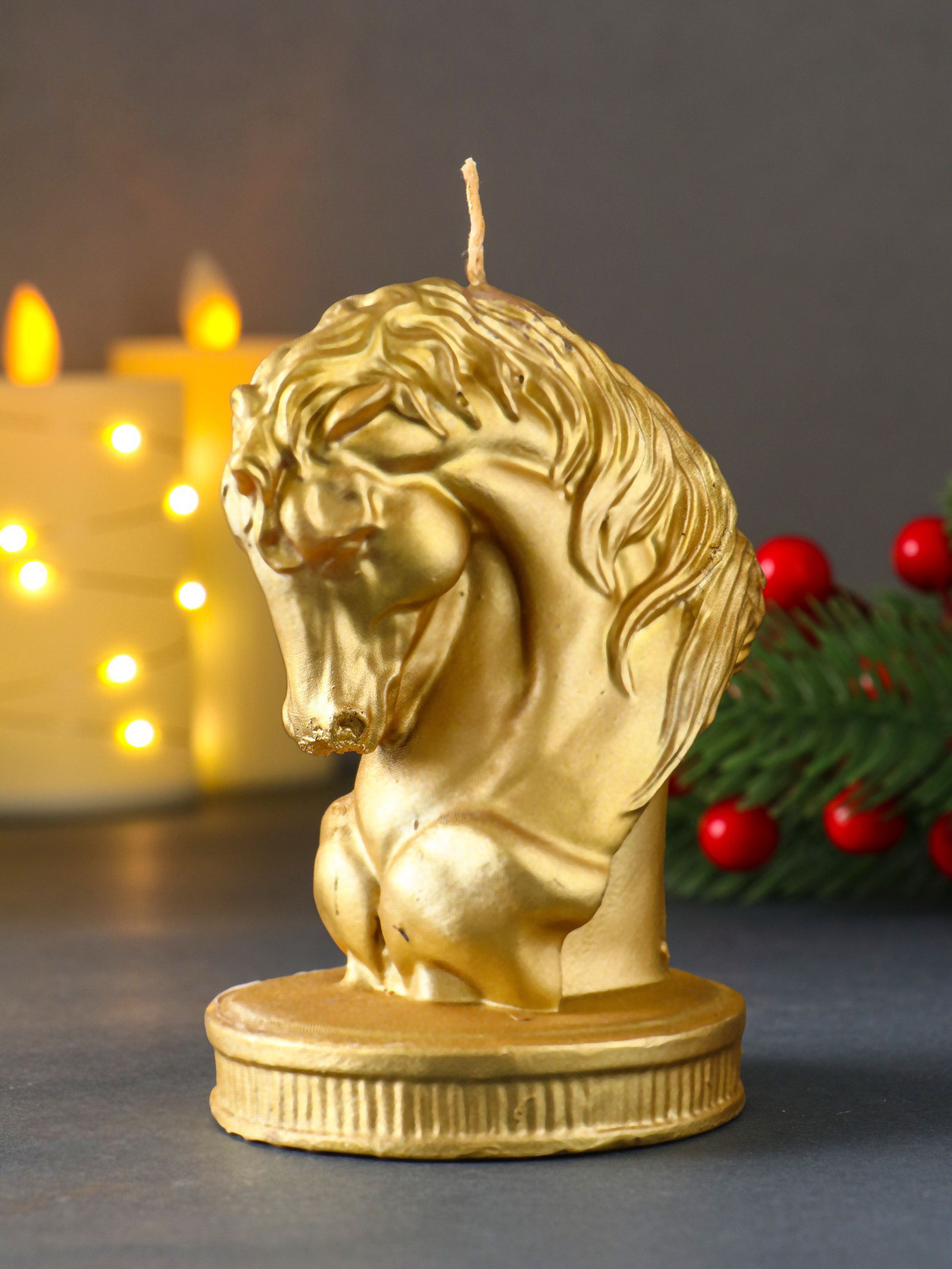 Свеча декоративная "Символ Года: Бюст коня Буцефала", лак, 11.3x7.5x8.5, золото, Россия