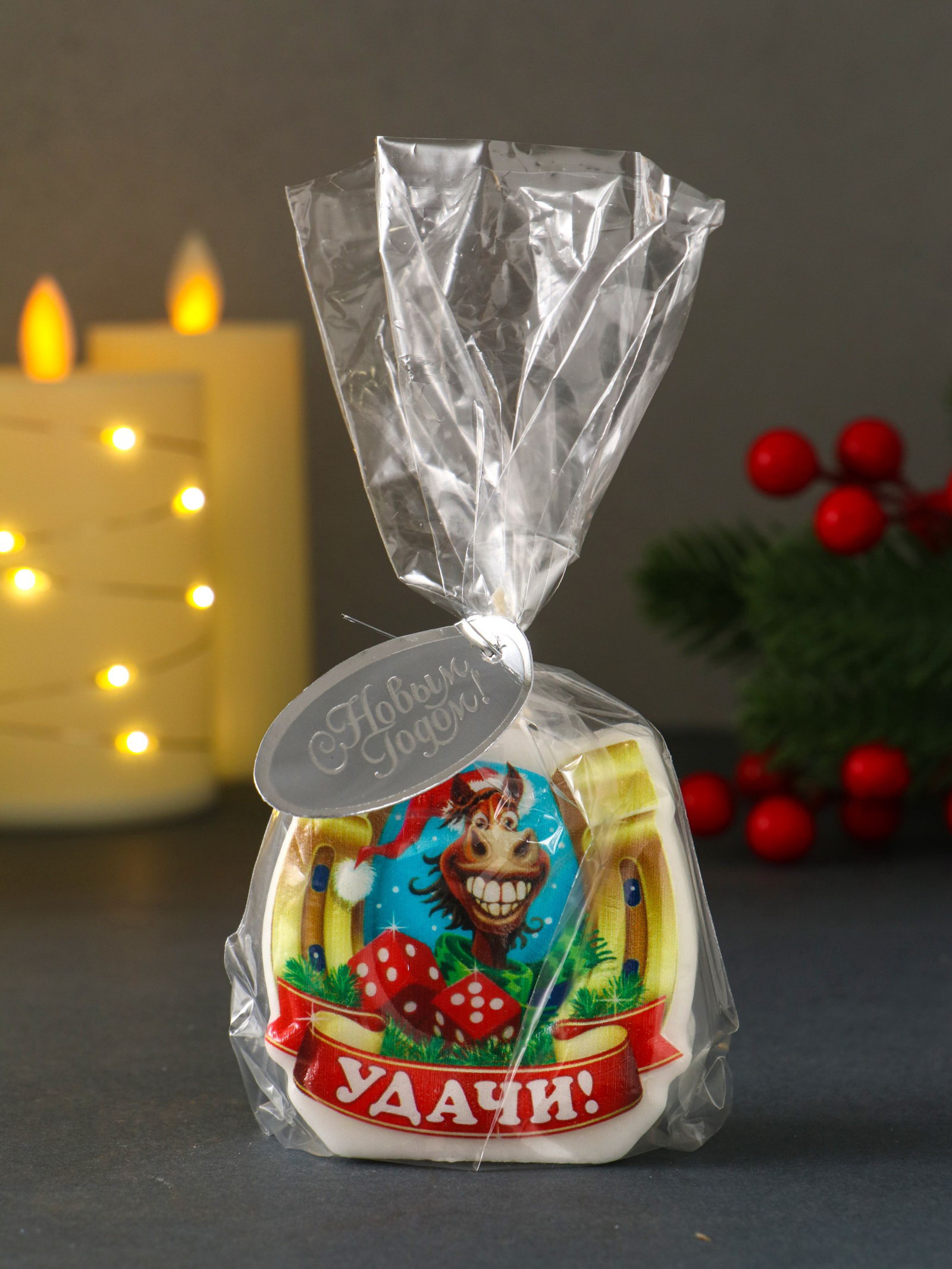 Свеча новогодняя "Лошадь. Подкова. Удачи", 6x2.8x6 см, Омский свечной завод, Россия