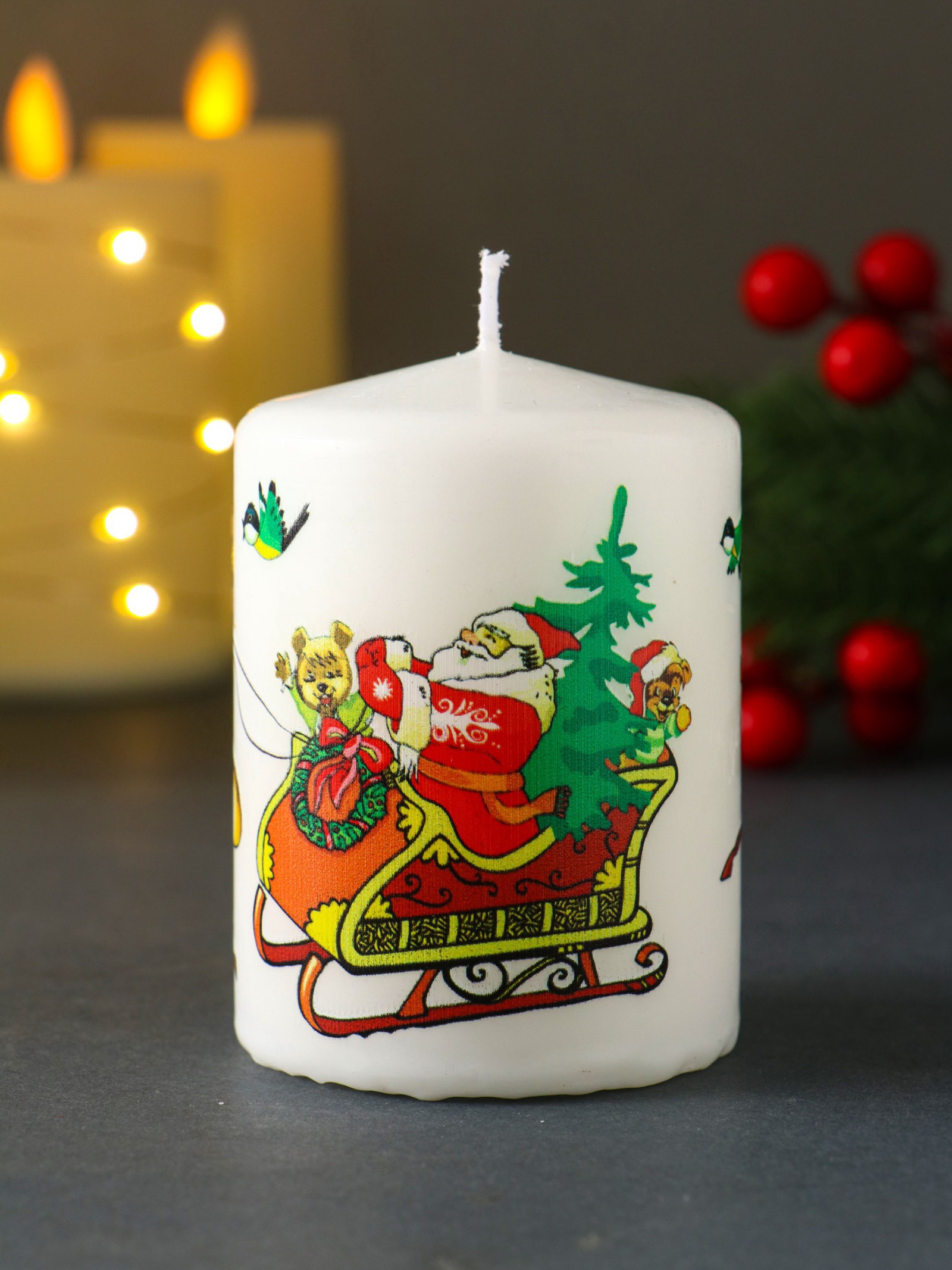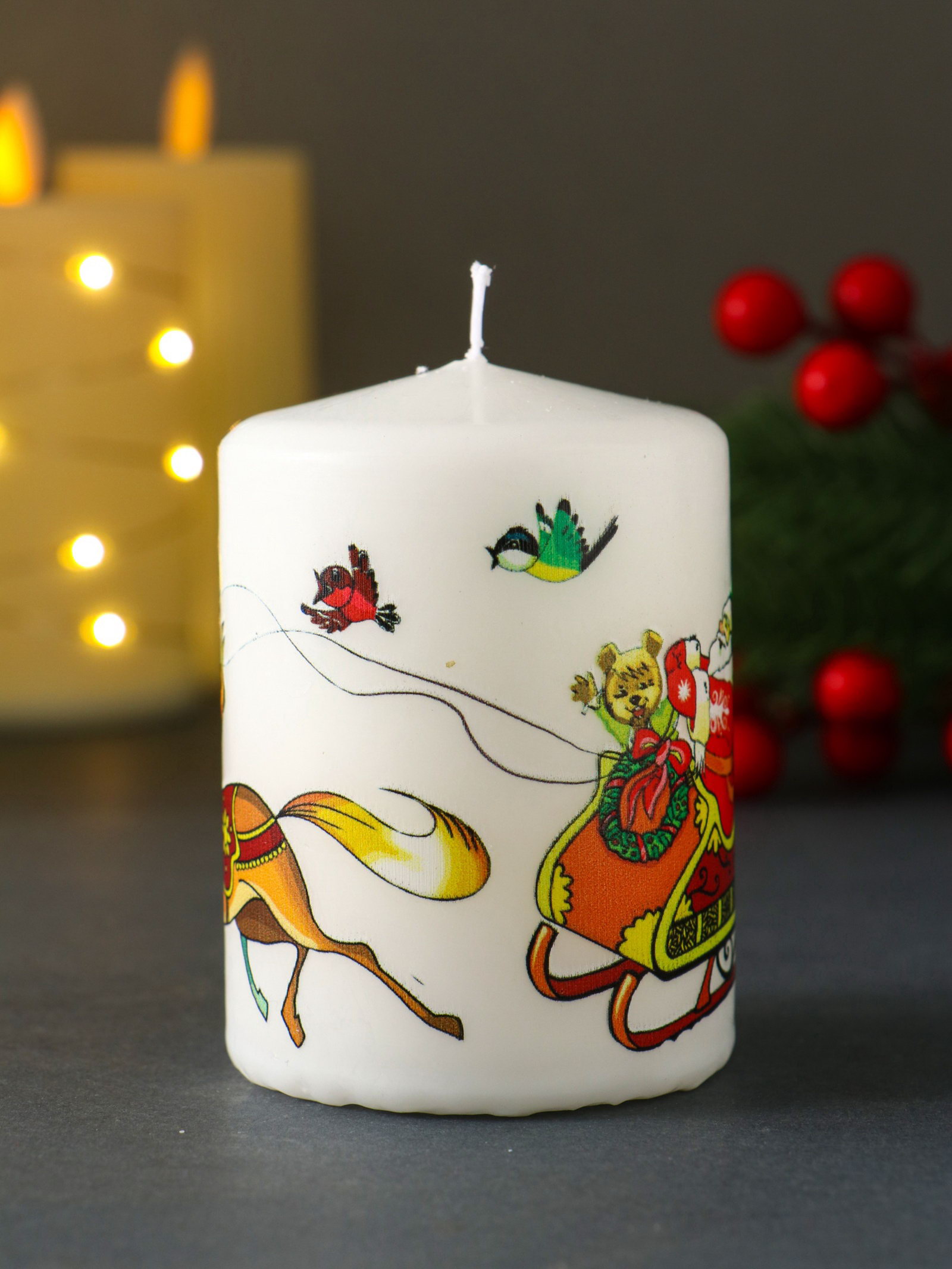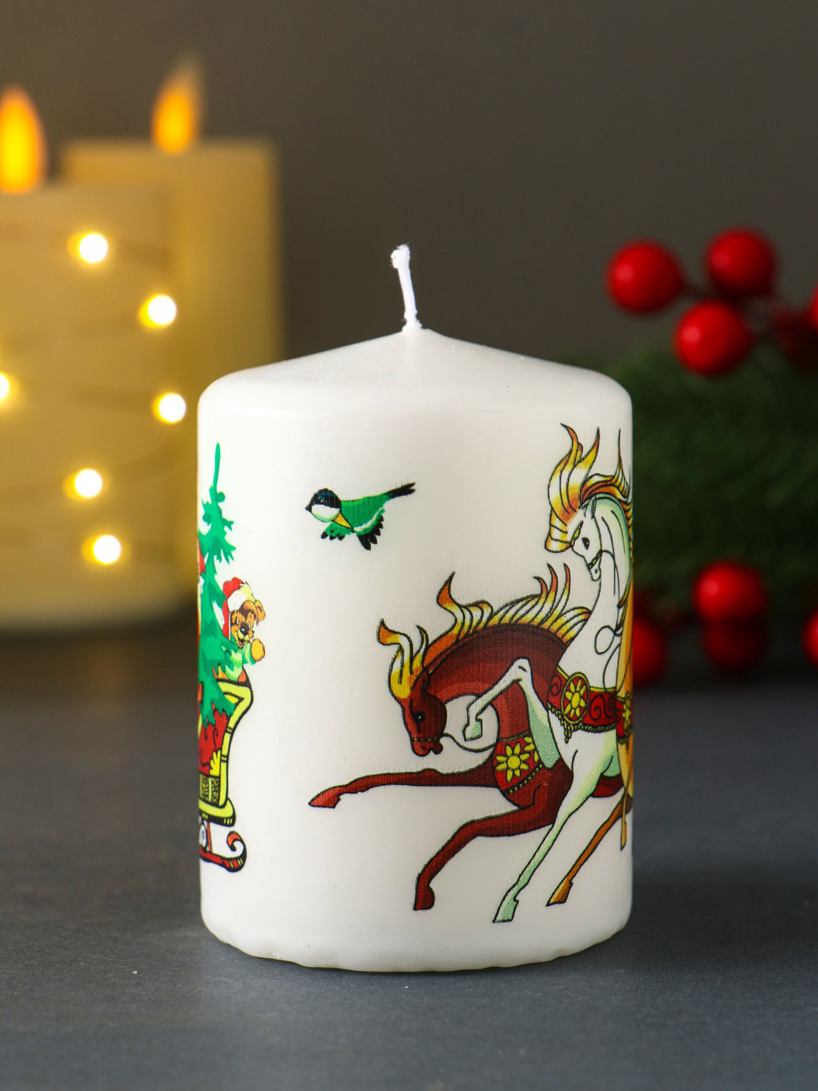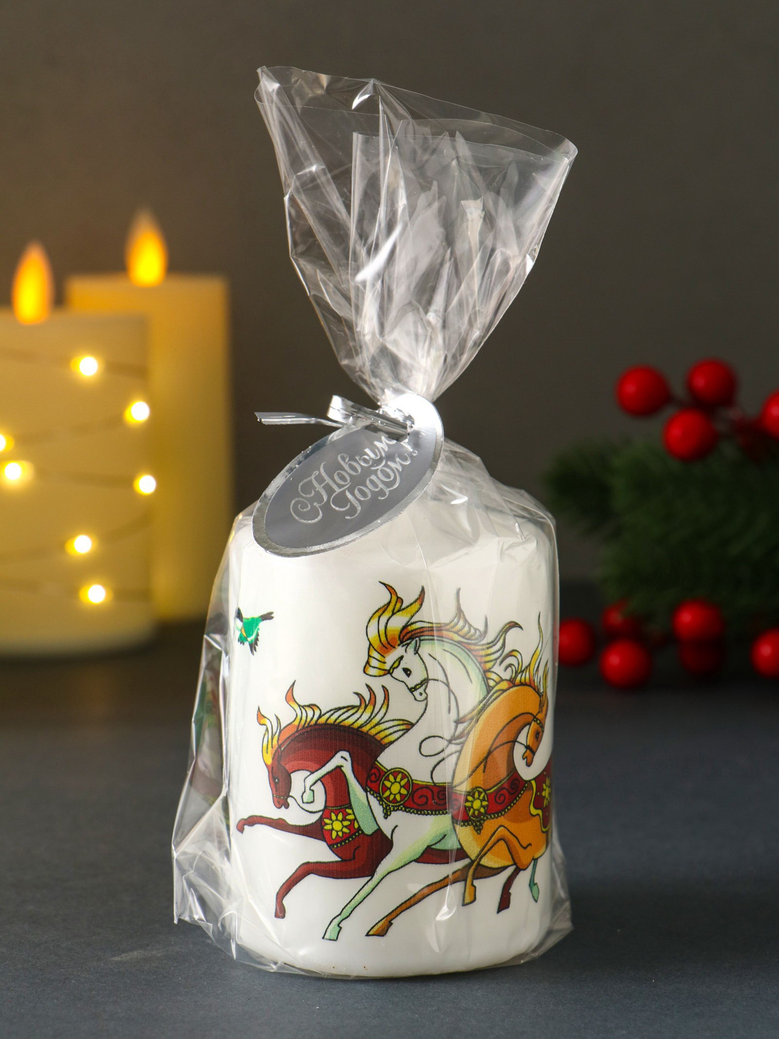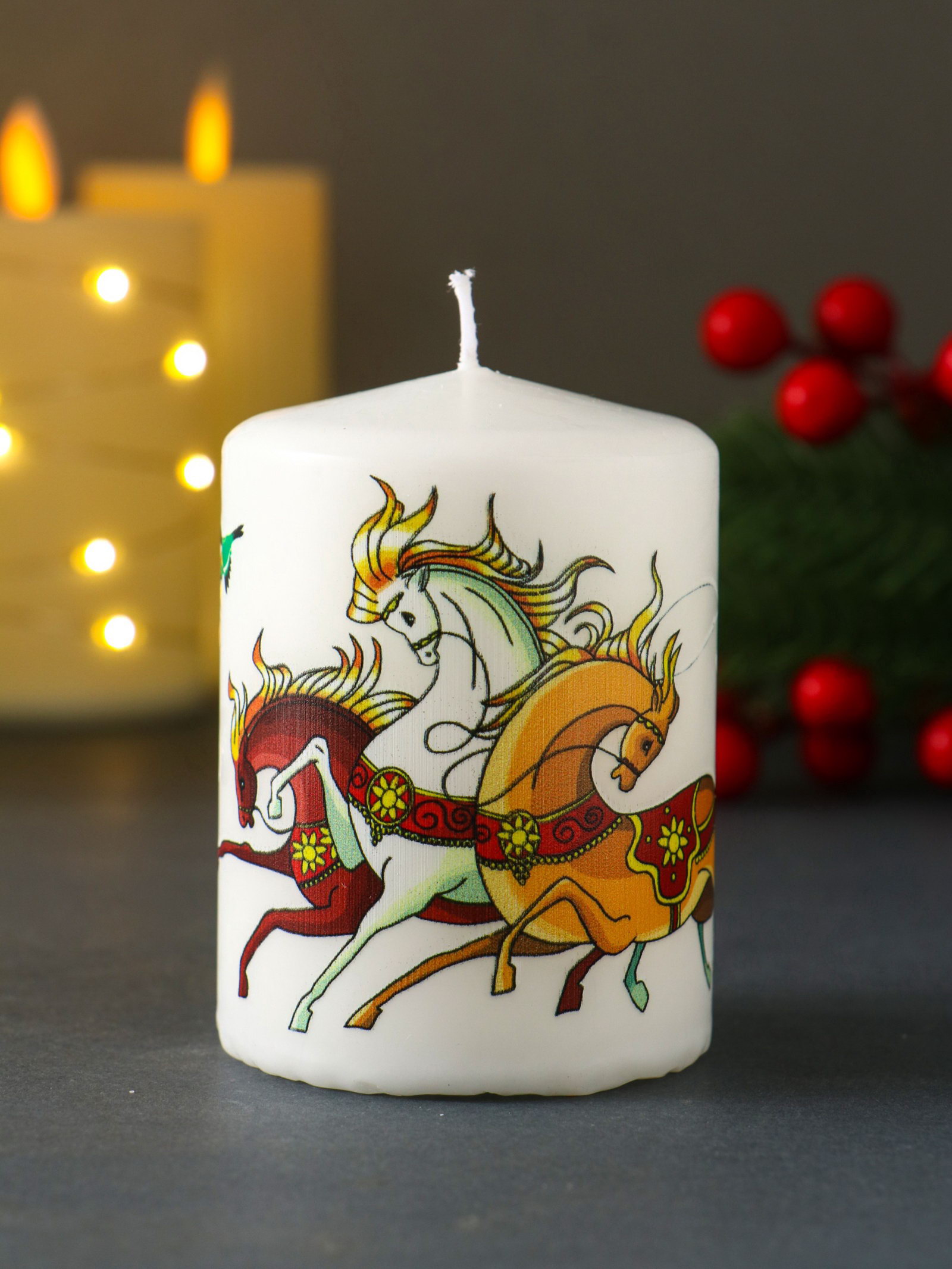 Свеча новогодняя пеньковая "Три коня", 6x6x8 см, Омский свечной завод, Россия