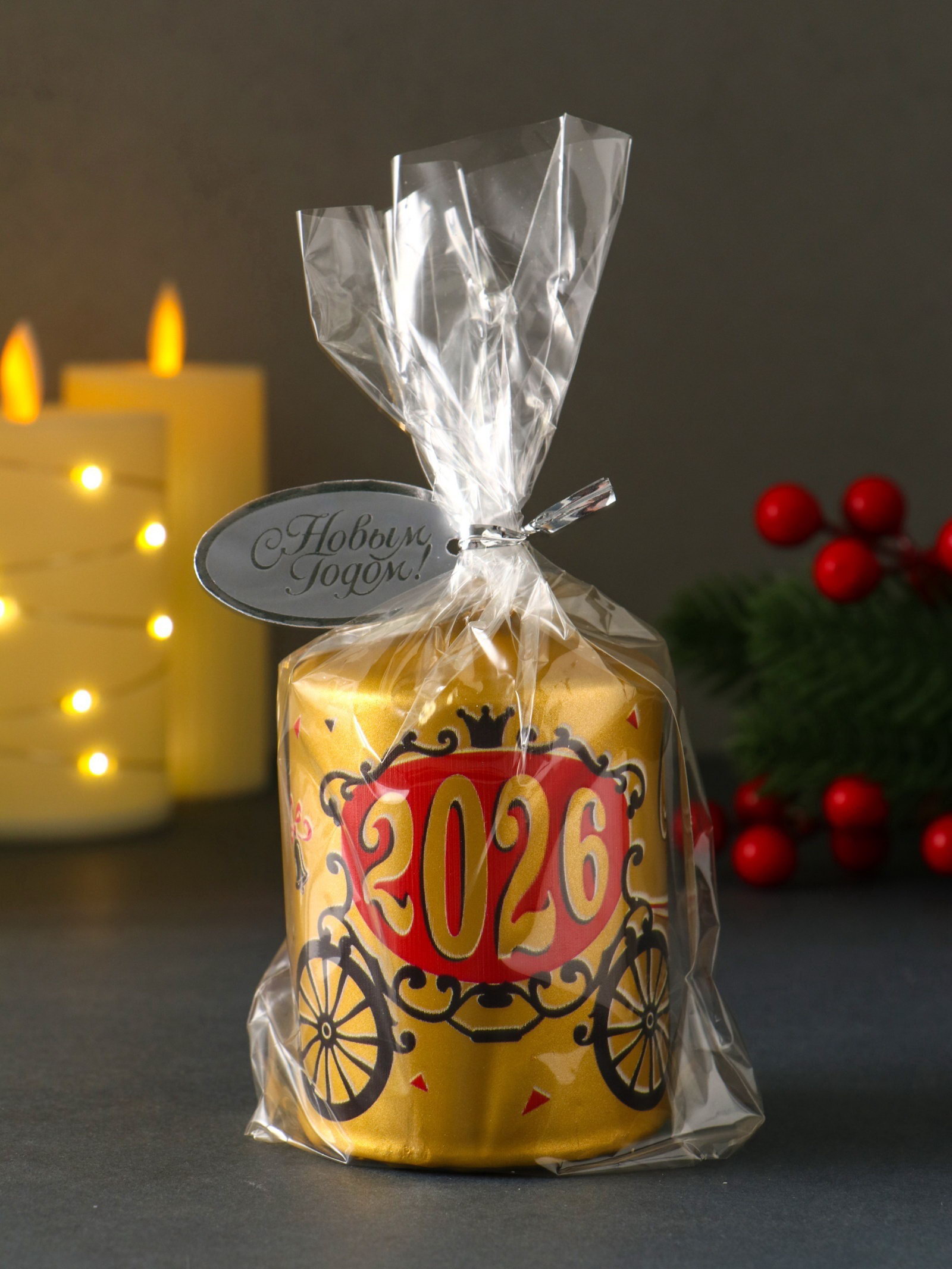 Создайте новогоднее настроение Мягкое пламя этой свечи наполнит вечер особым ожиданием чуда. Она станет центральным элементом декора или тёплым подарком, который напомнит о самом волшебном времени года. Встречайте Новый 2026 год с его символом это начало счастливого цикла. | ||