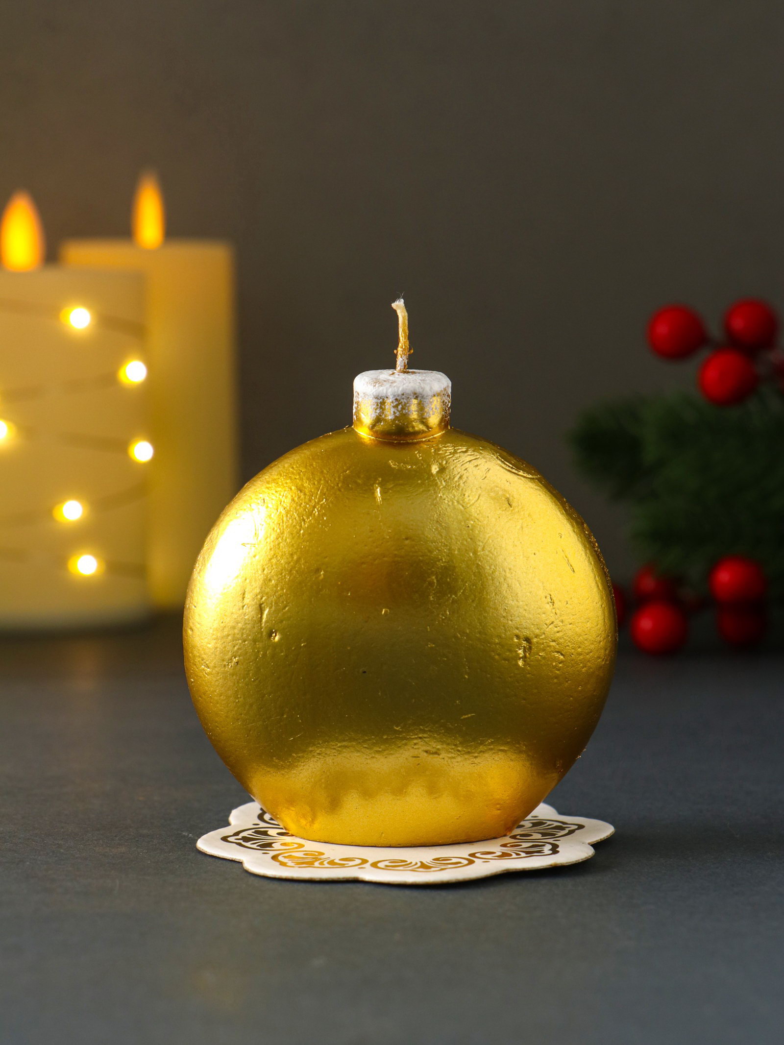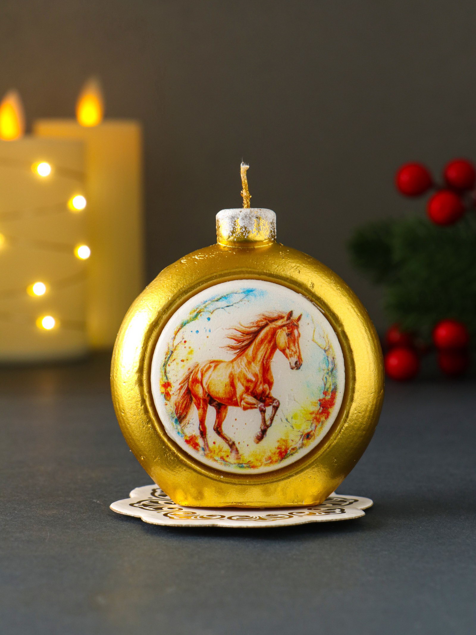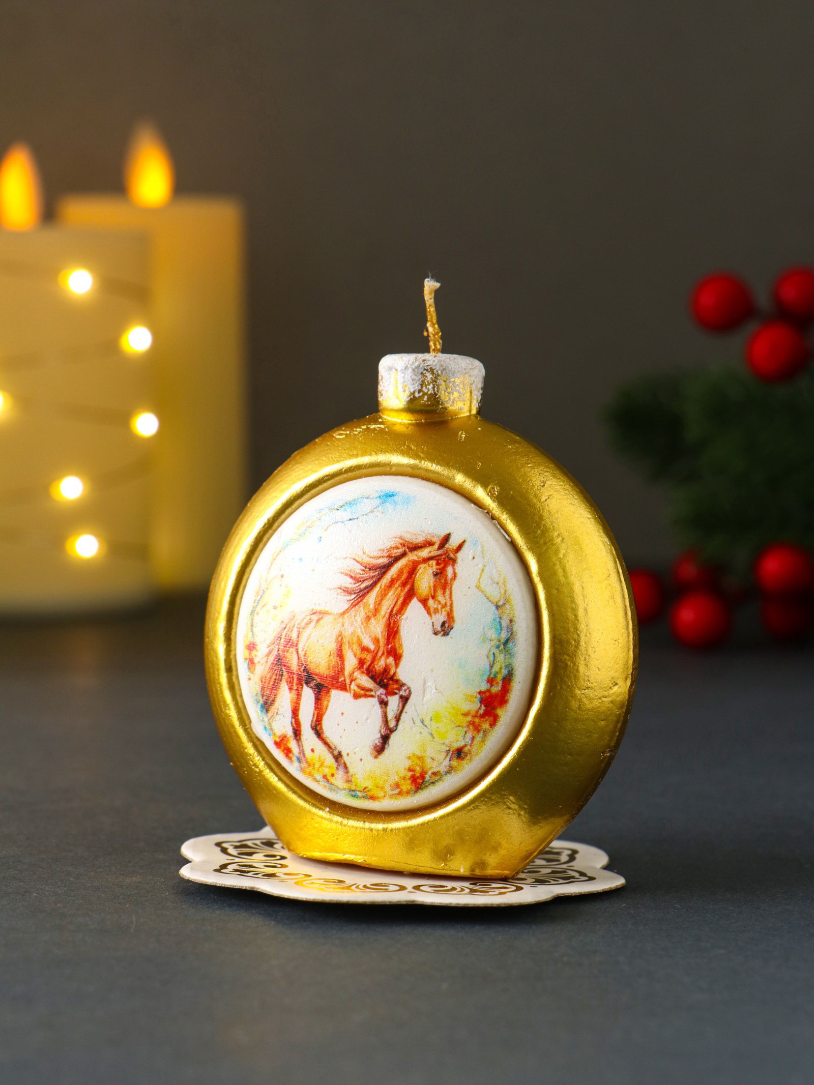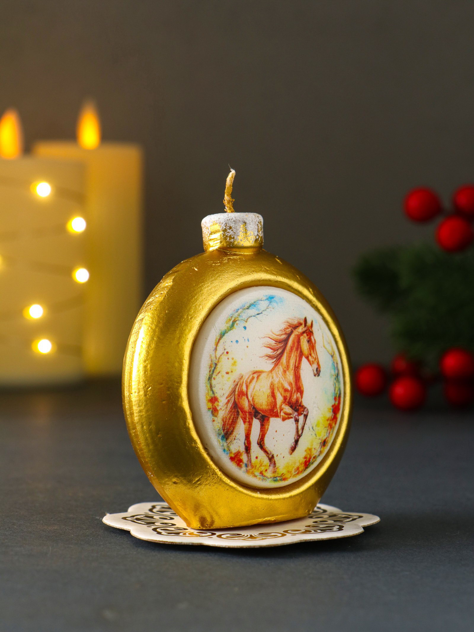 Свеча новогодняя "Шар. Конь", золотой, 6.8x3.5x7.5 см, Омский свечной завод, Россия